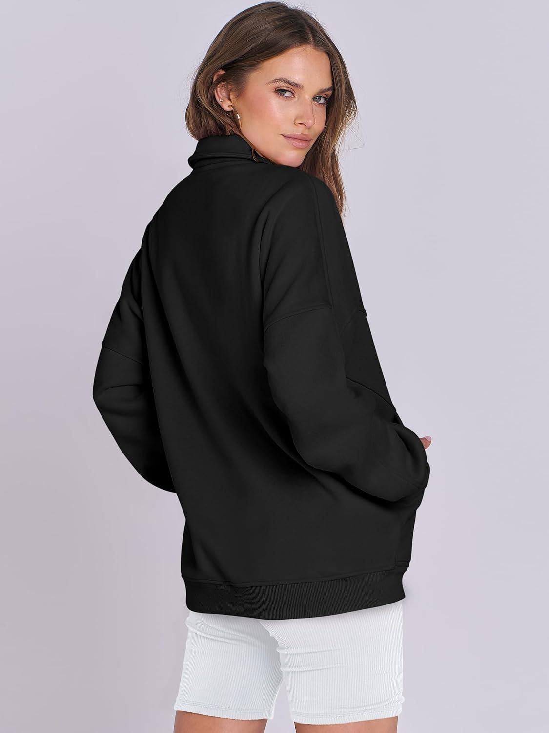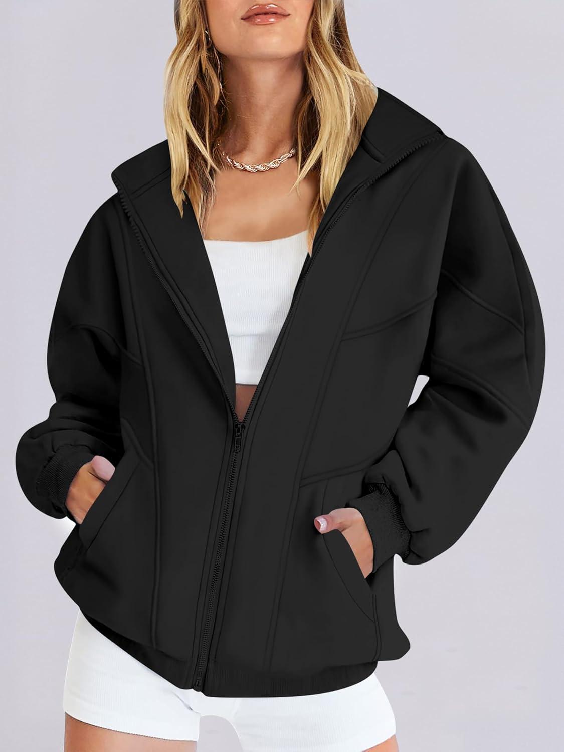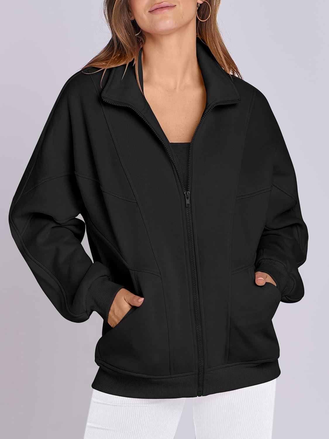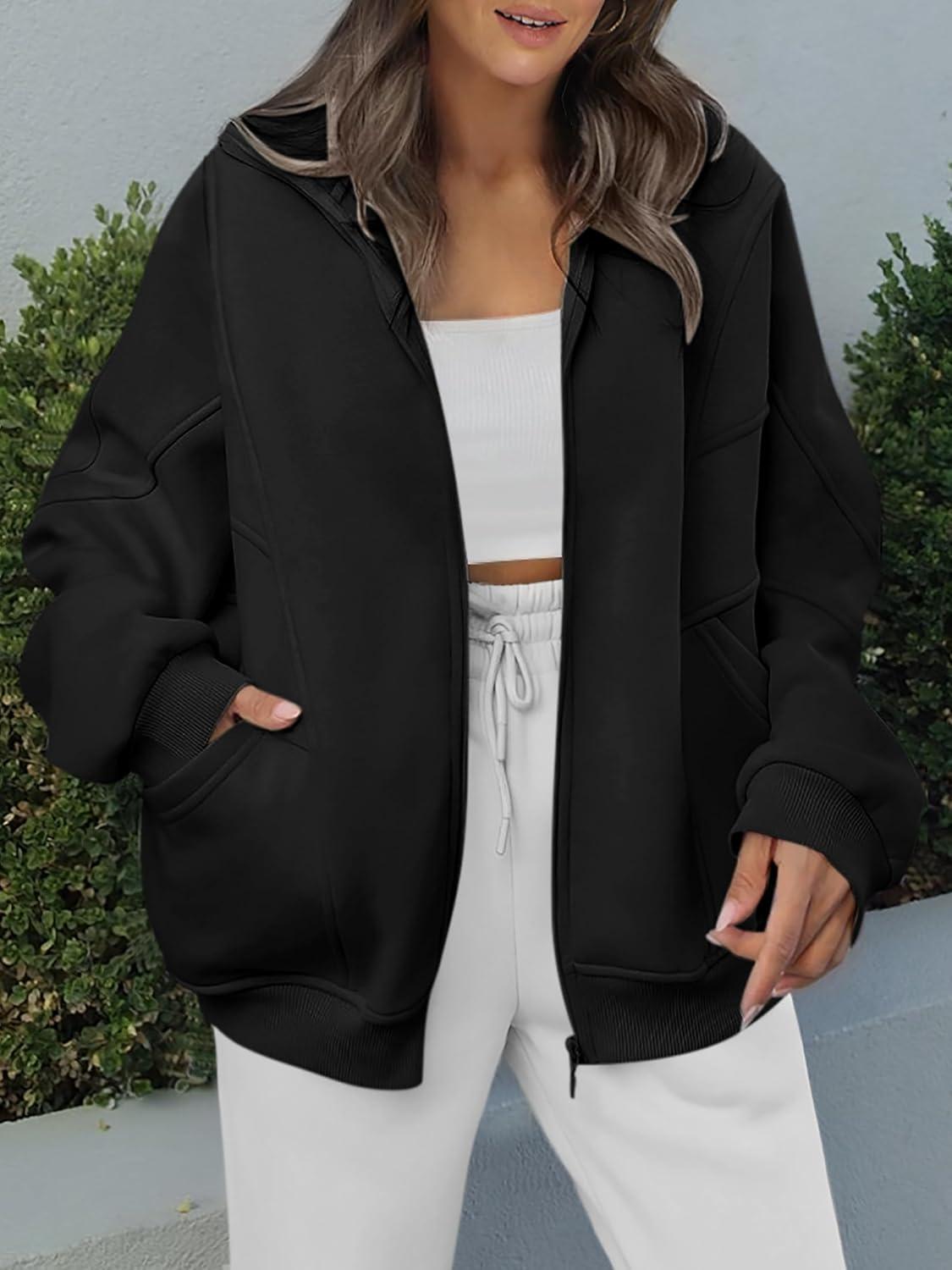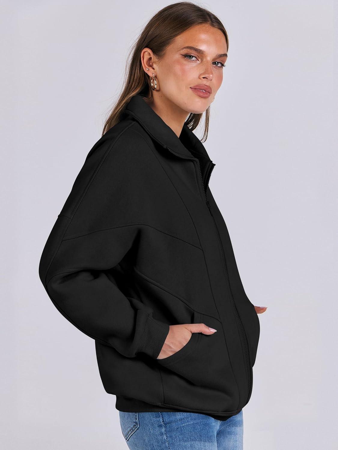 ANRABESS Women’s Oversized Full Zip Up Sweatshirts Jacket 2025 Fall Fleece Long Sleeve Hoodies Outfits(Black)