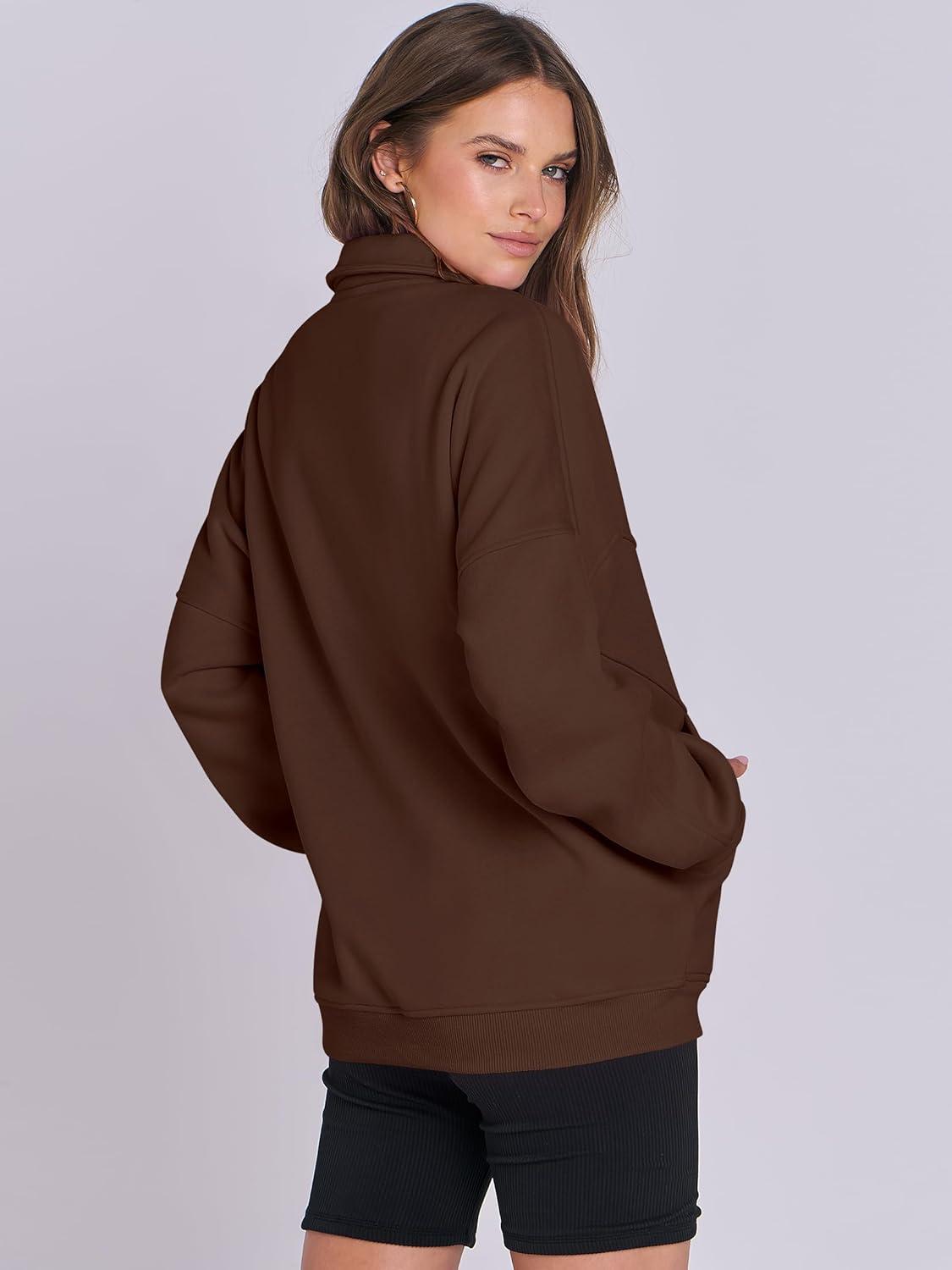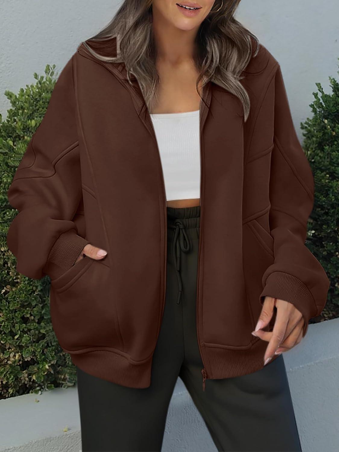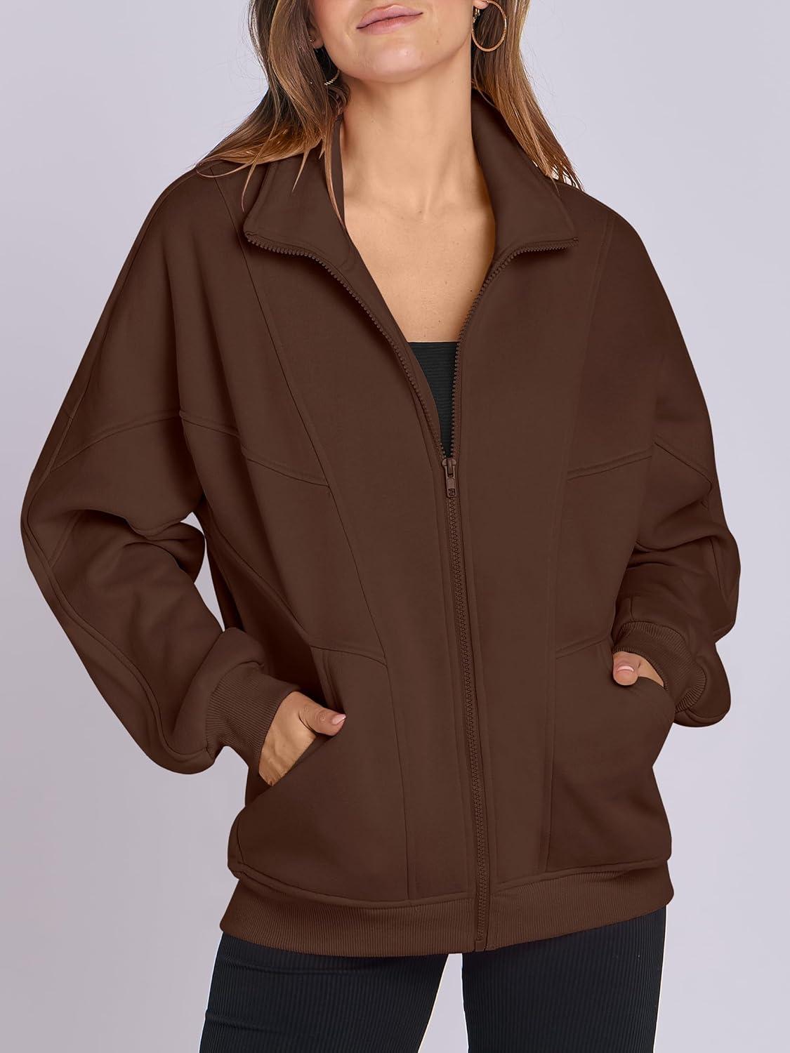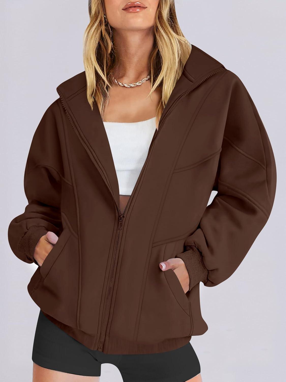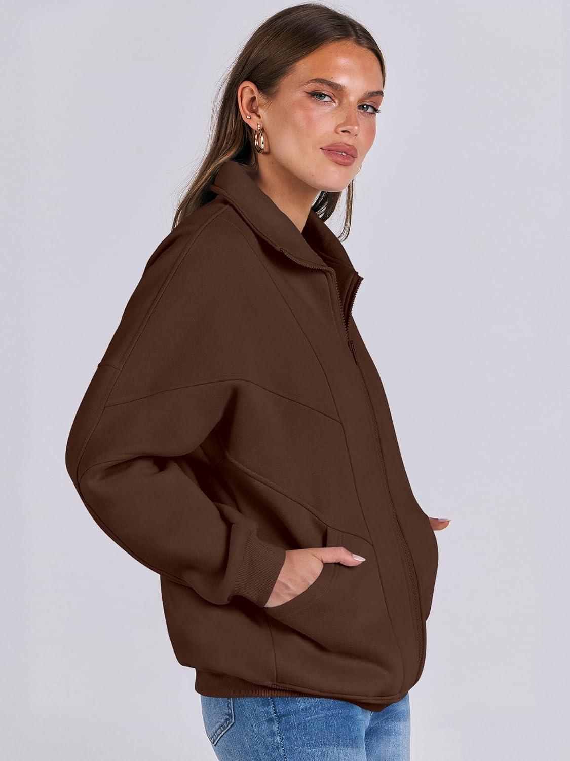 ANRABESS Women’s Oversized Full Zip Up Sweatshirts Jacket 2025 Fall Fleece Long Sleeve Hoodies Outfits(Brown)