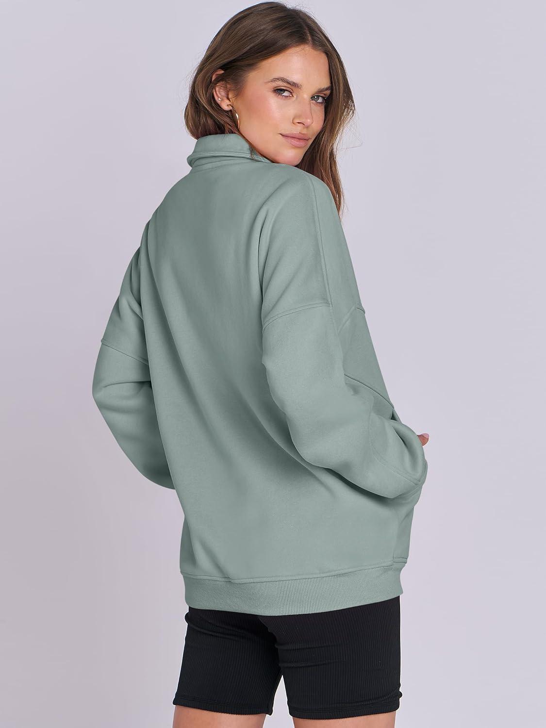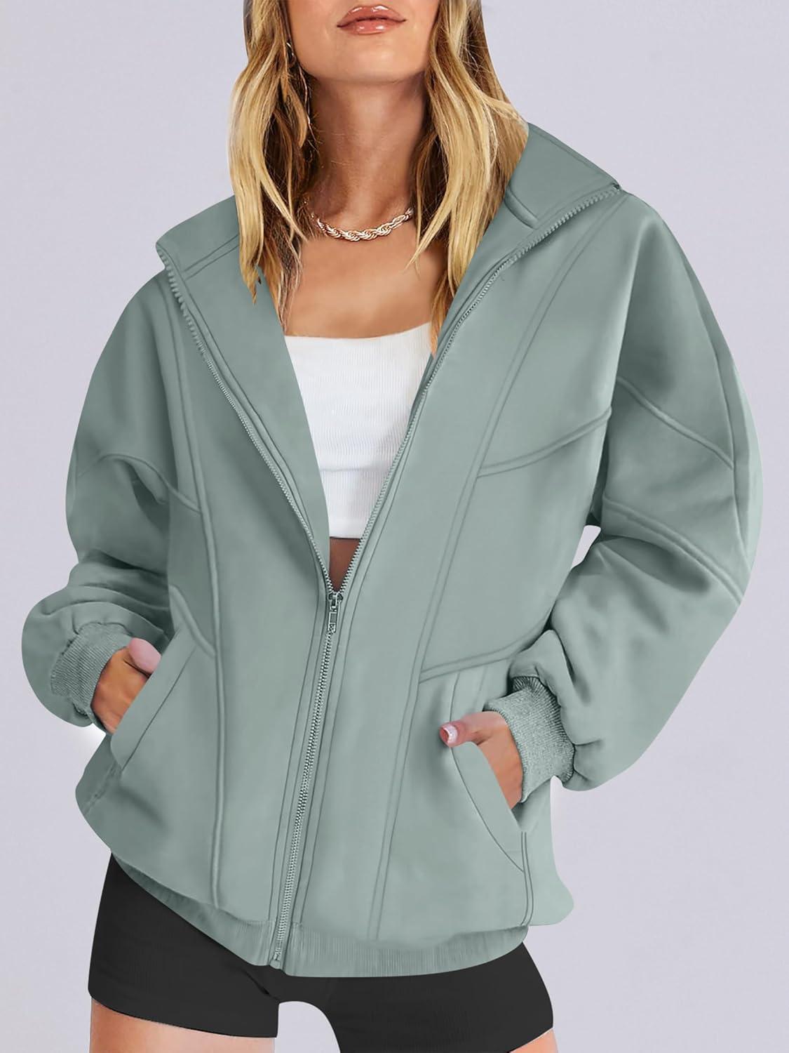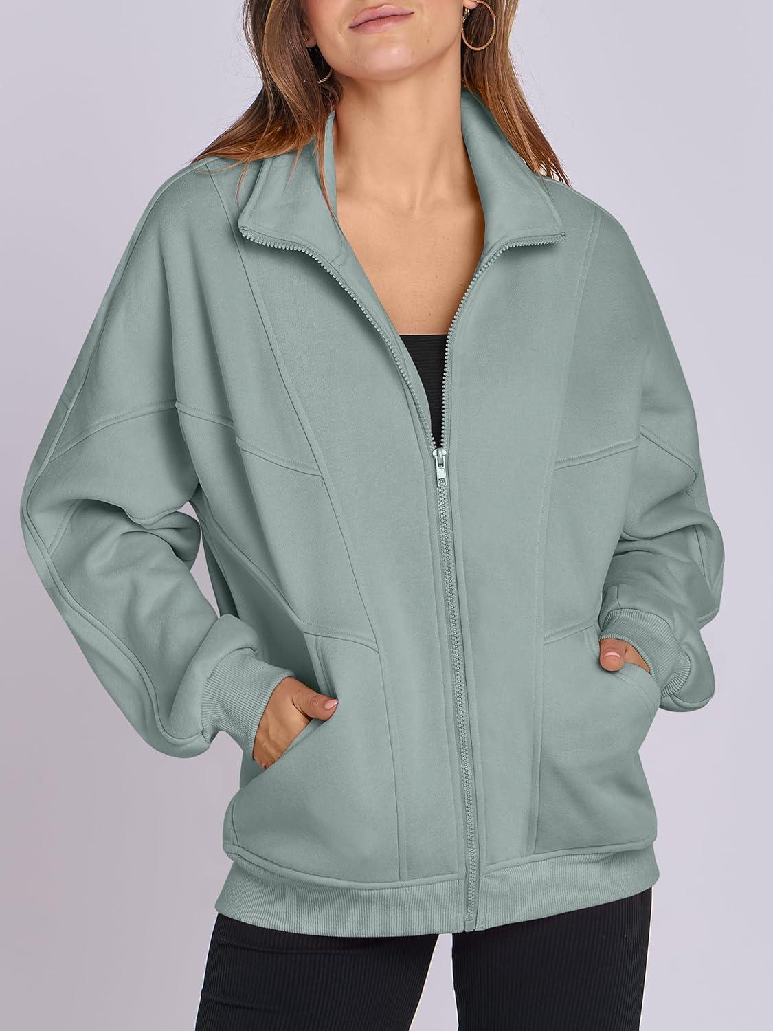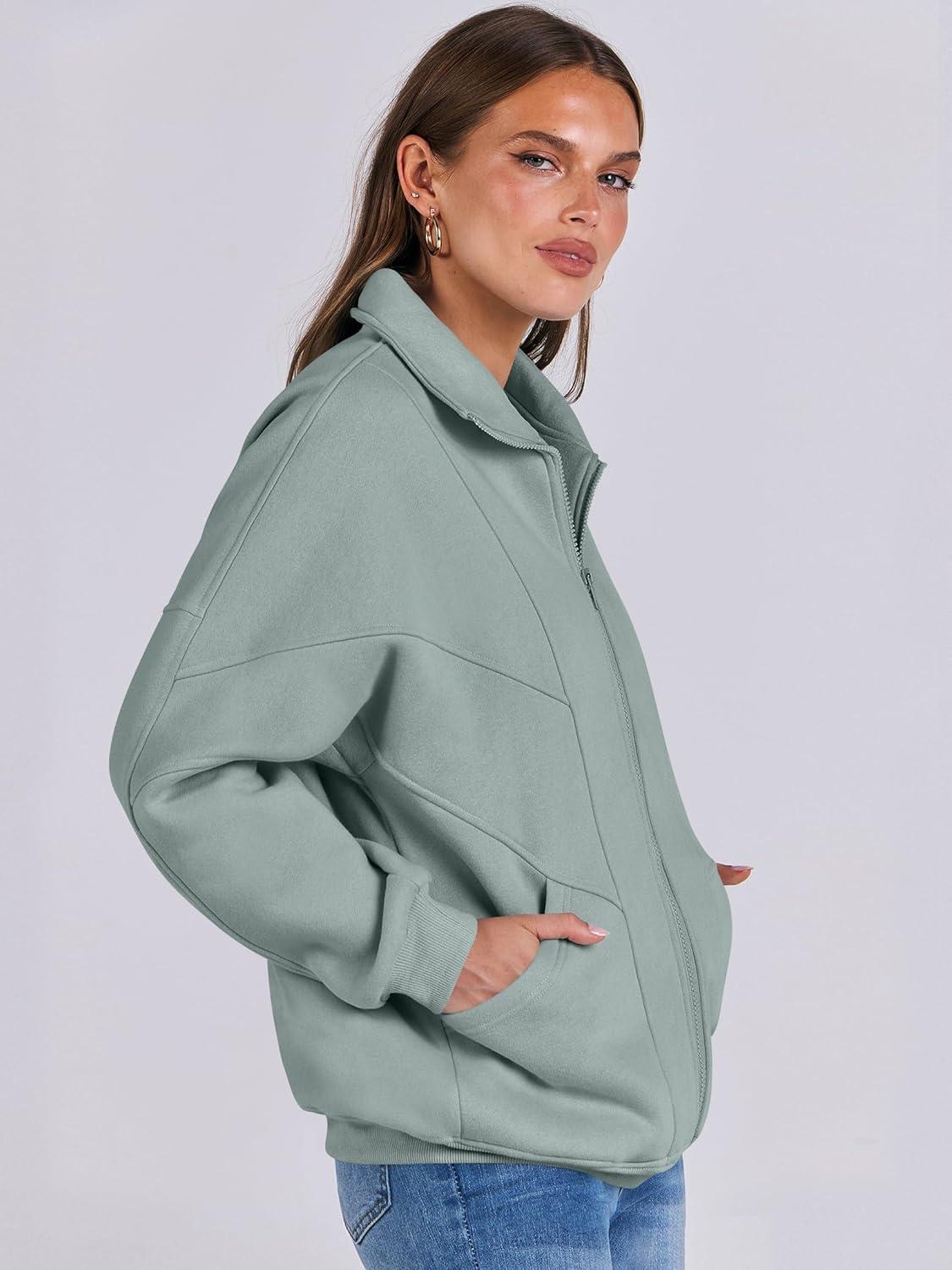 ANRABESS Women’s Oversized Full Zip Up Sweatshirts Jacket 2025 Fall Fleece Long Sleeve Hoodies Outfits(Grey Green)