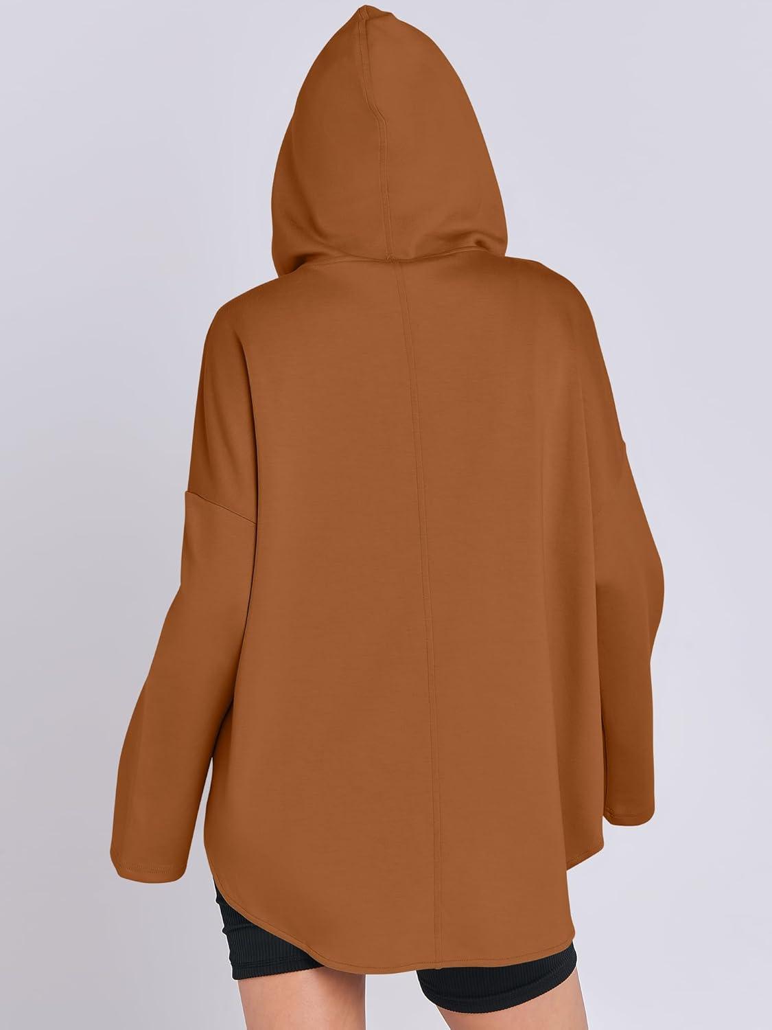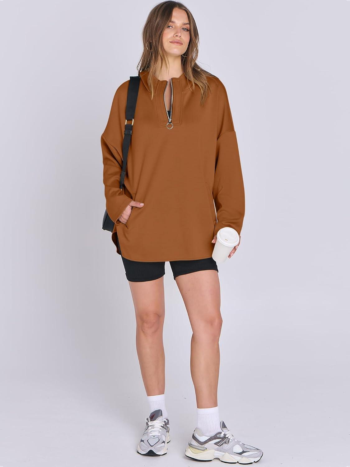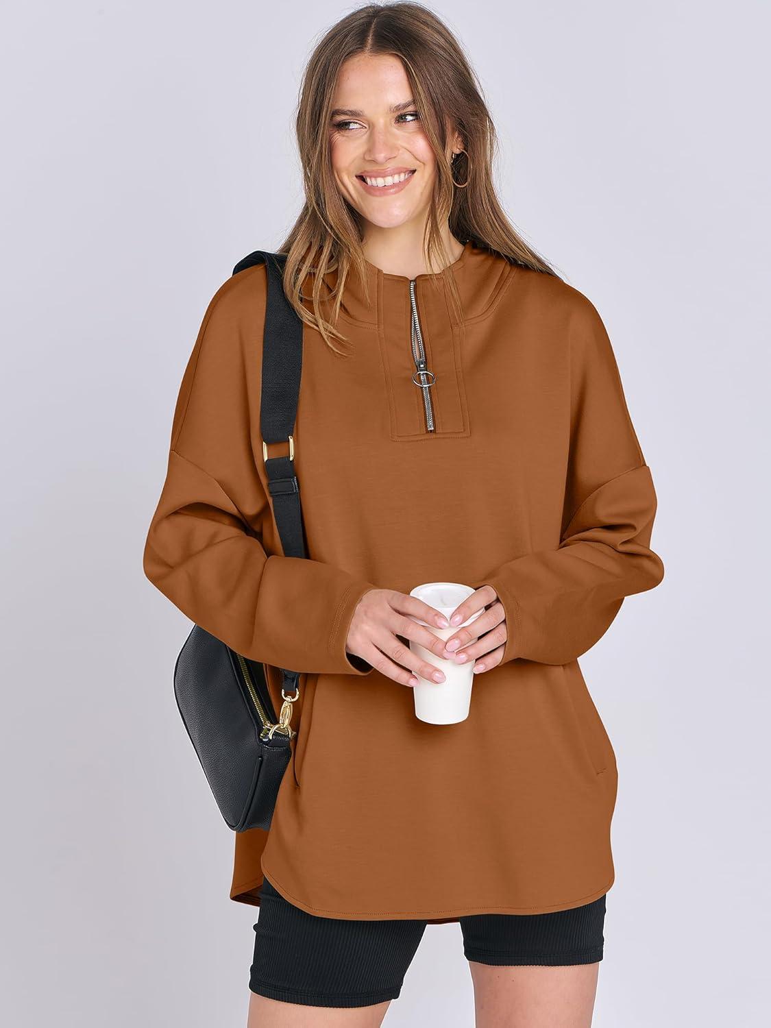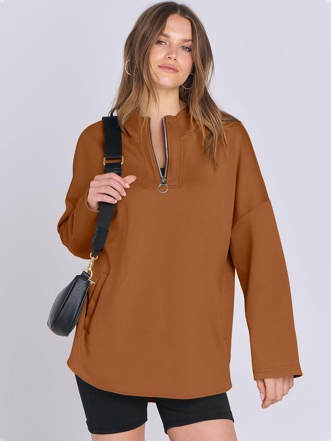ANRABESS Womens Oversized Hoodie Quarter Zip Sweatshirts 2025 Fall Winter Tunic Pullover Top Trendy Teen Girls Preppy Clothes(Caramel)