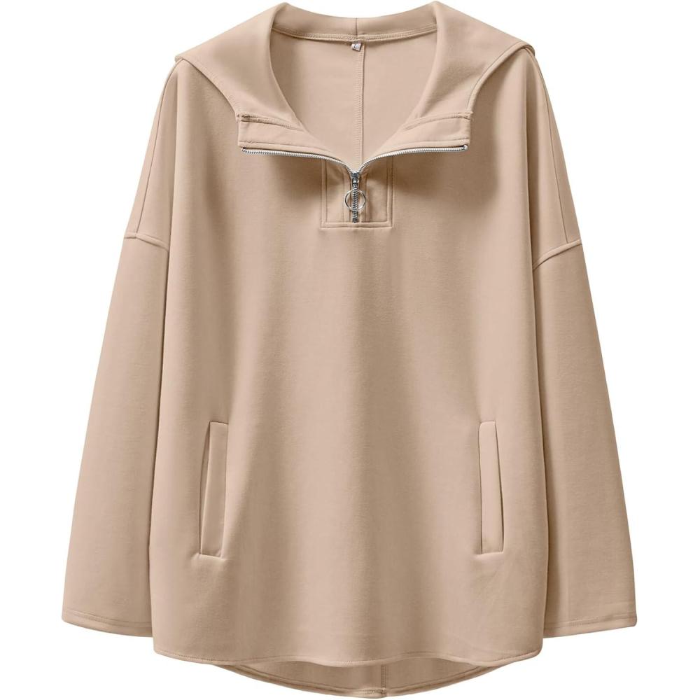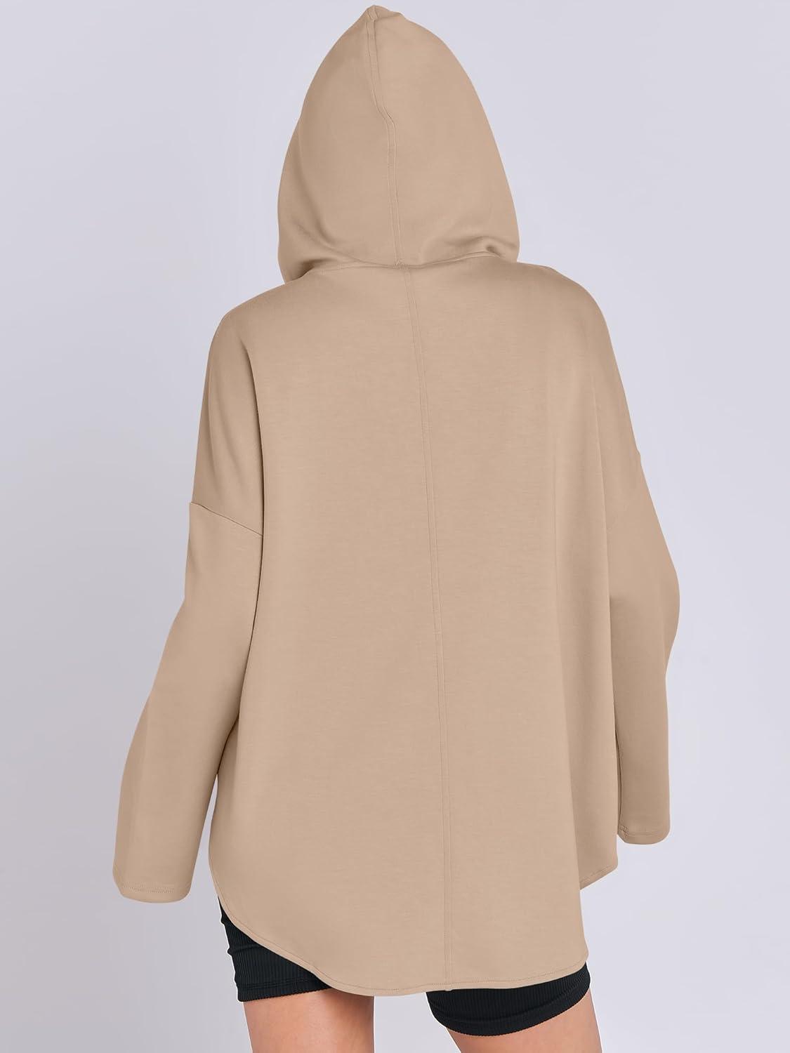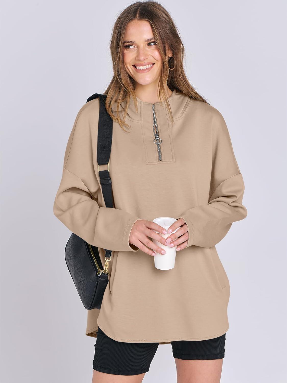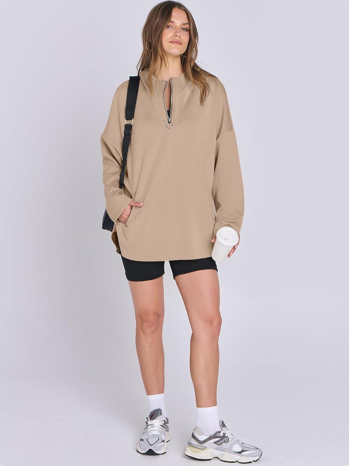 ANRABESS Womens Oversized Hoodie Quarter Zip Sweatshirts 2025 Fall Winter Tunic Pullover Top Trendy Teen Girls Preppy Clothes(Khaki)