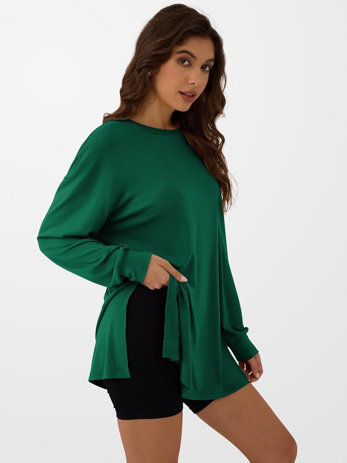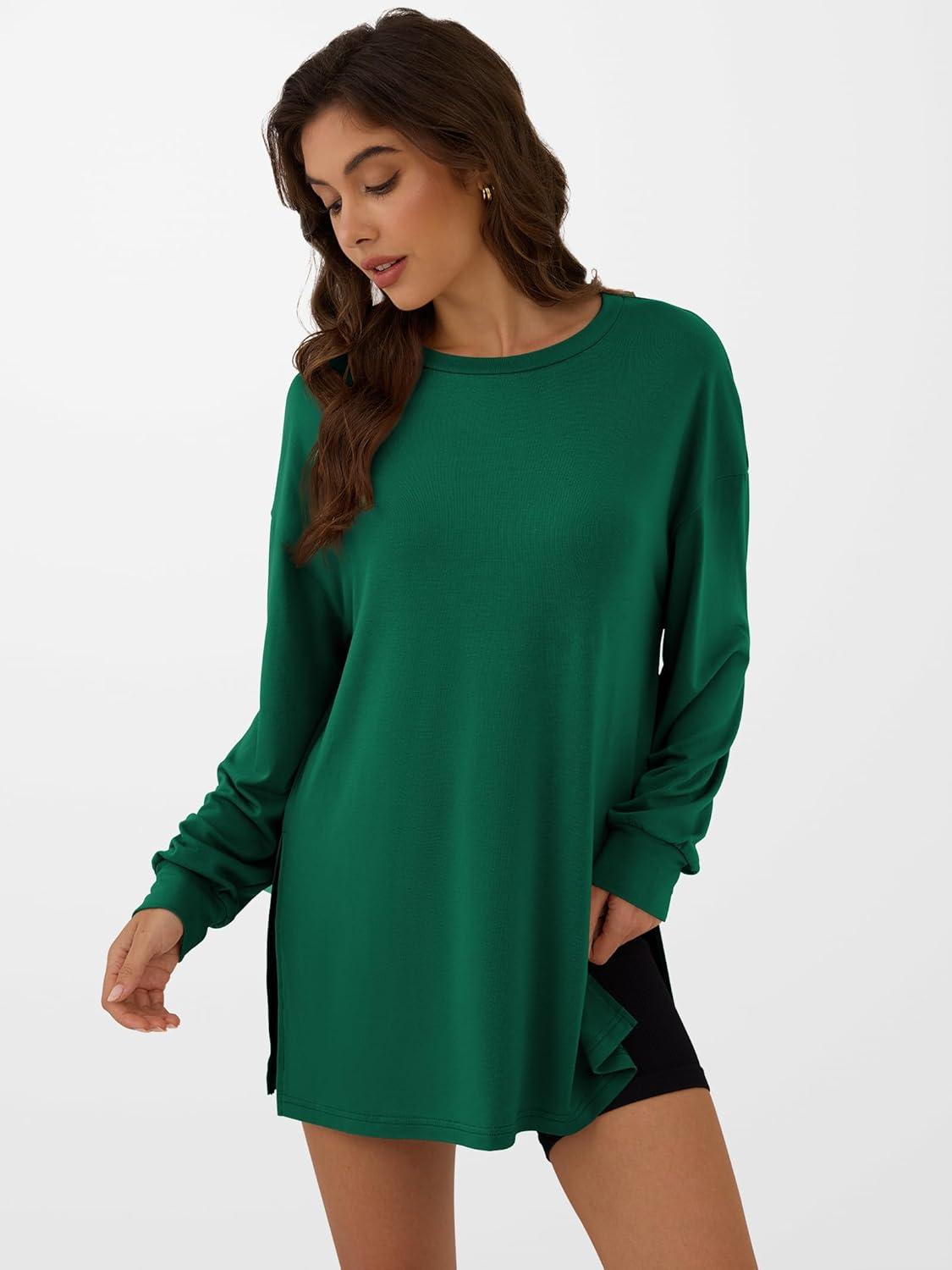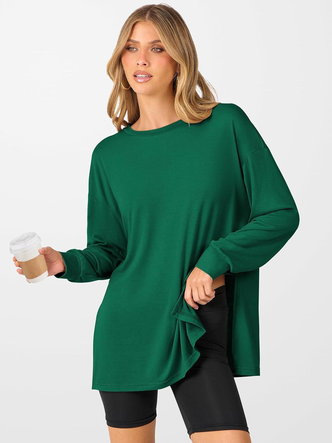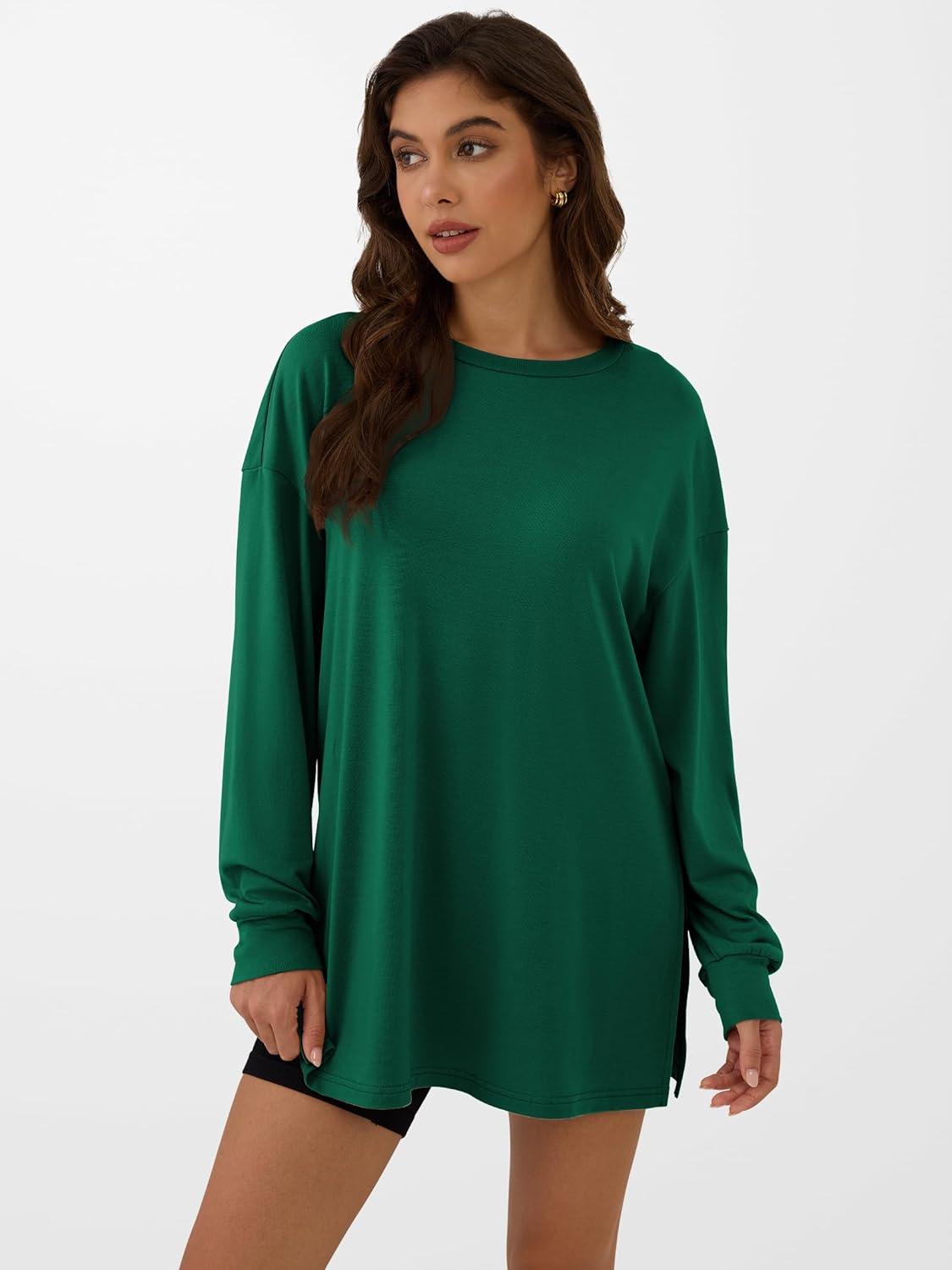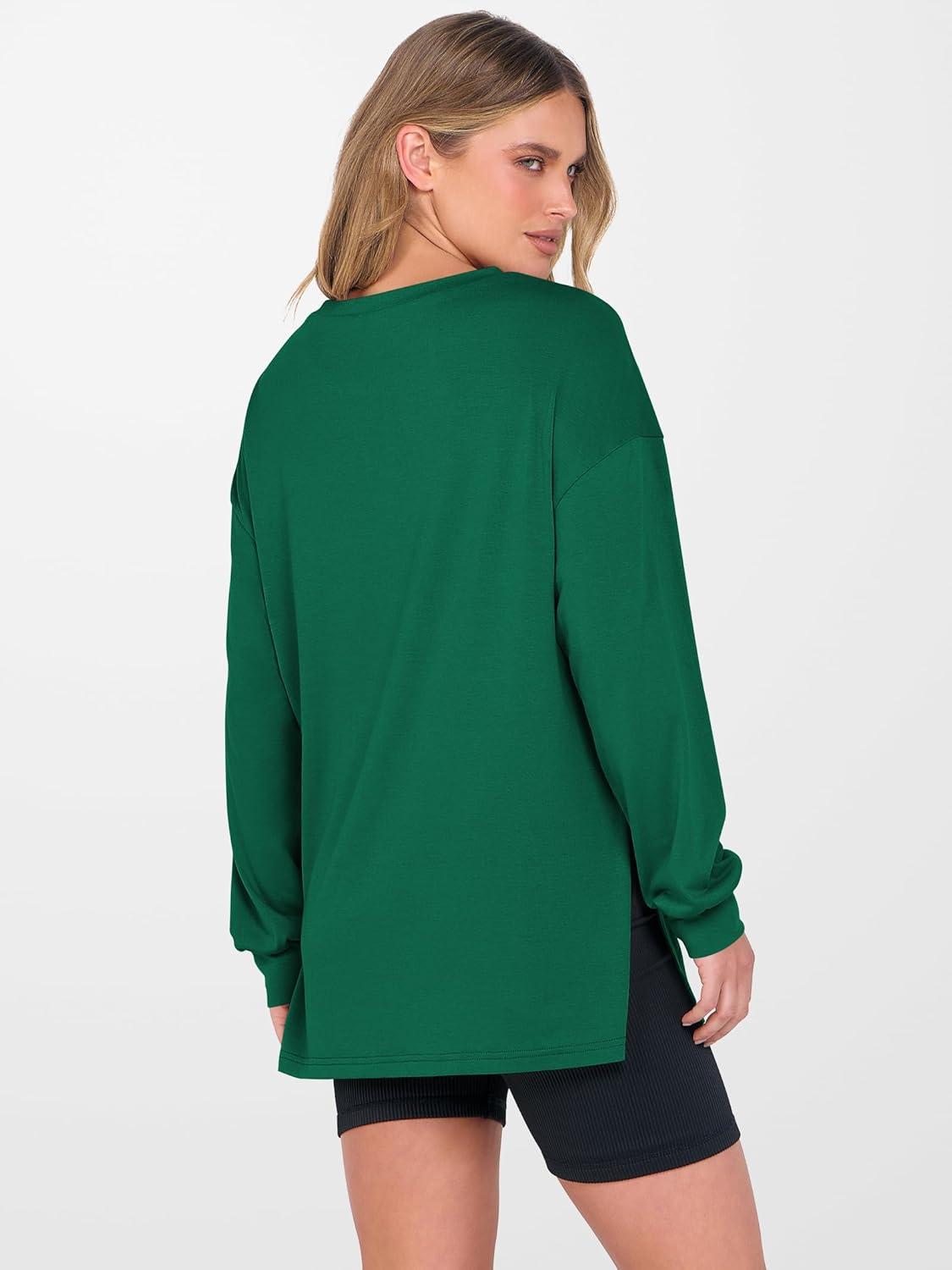 ANRABESS Women’s Oversized Long Sleeve shirts Fall Workout Tunic Tops Athletic Gym Tshirts Soft Basic Tees 2025 Outfits(Green)