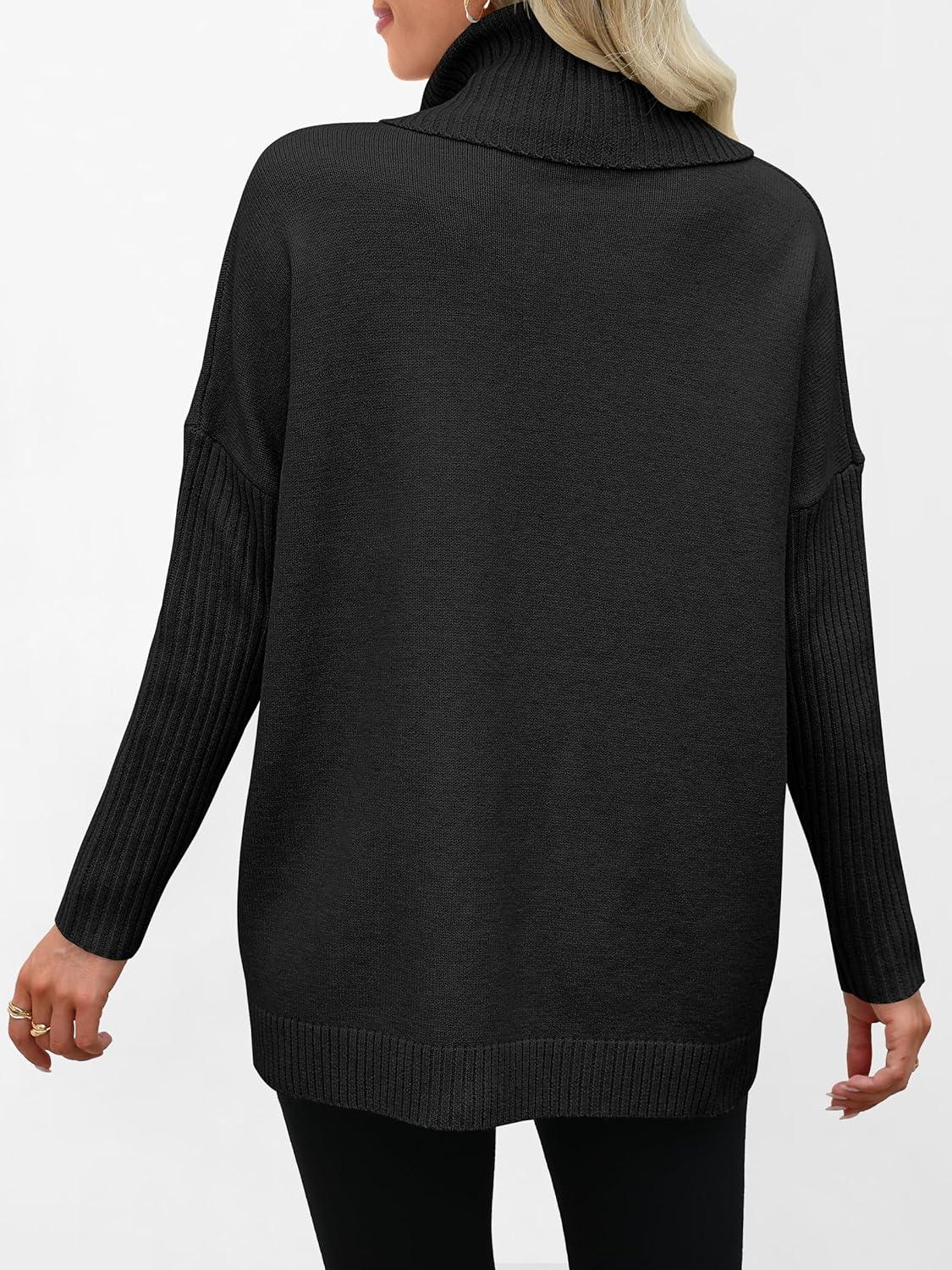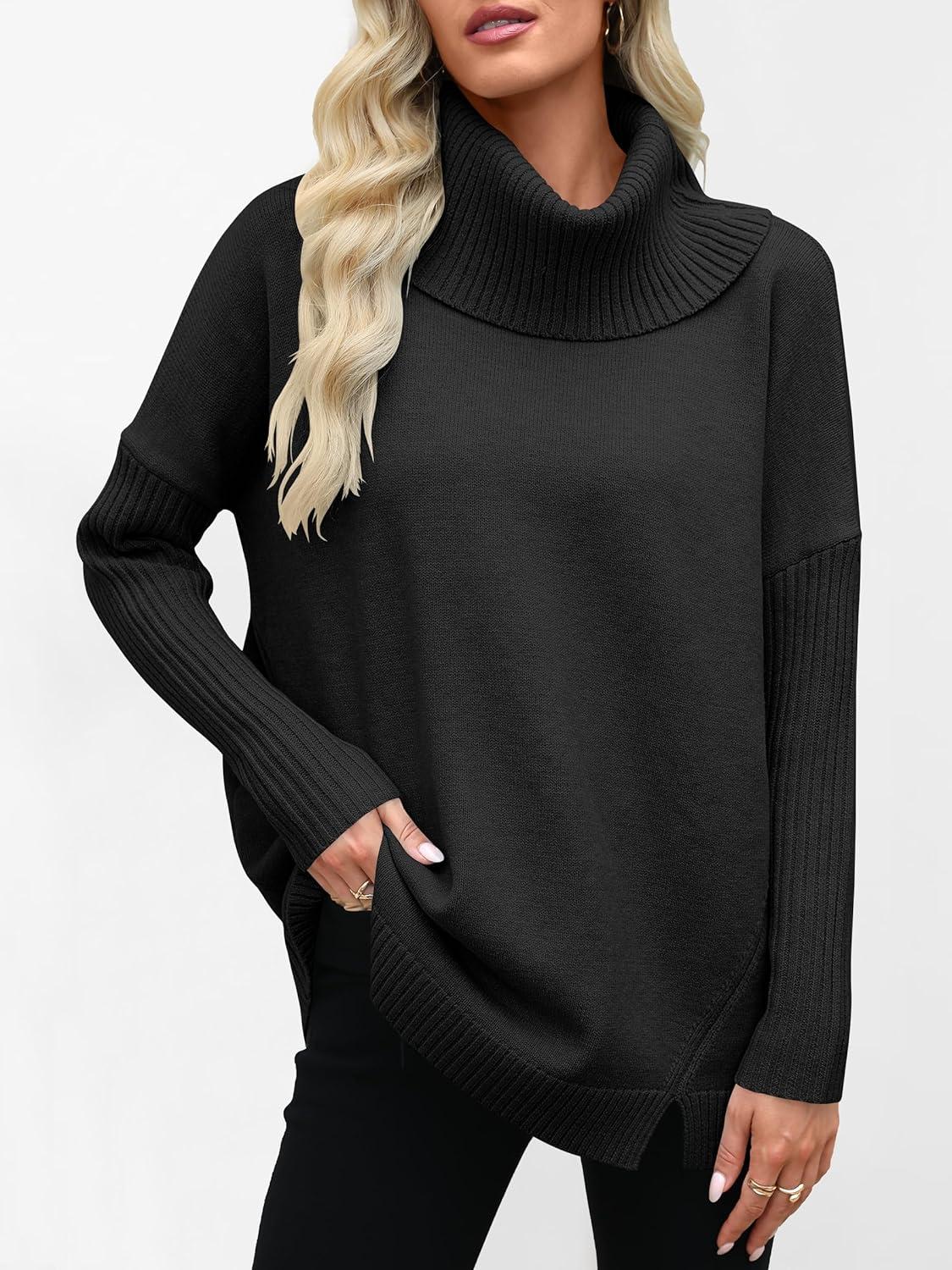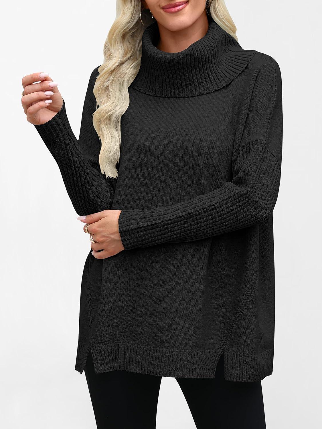 ANRABESS Women’s Oversized Sweater Turtleneck Long Sleeve Casual Knit Tunic Pullover Sweaters Tops 2025 Fall Winter Outfits(Black)