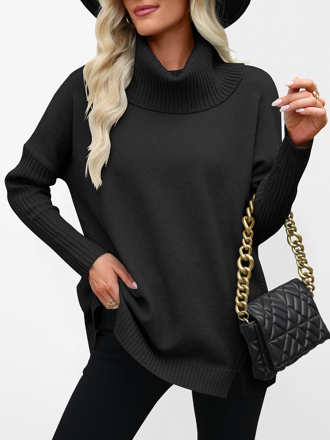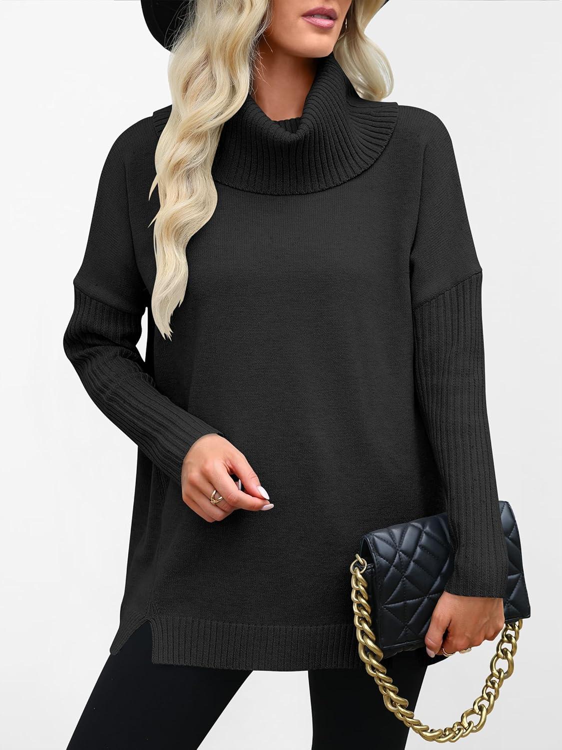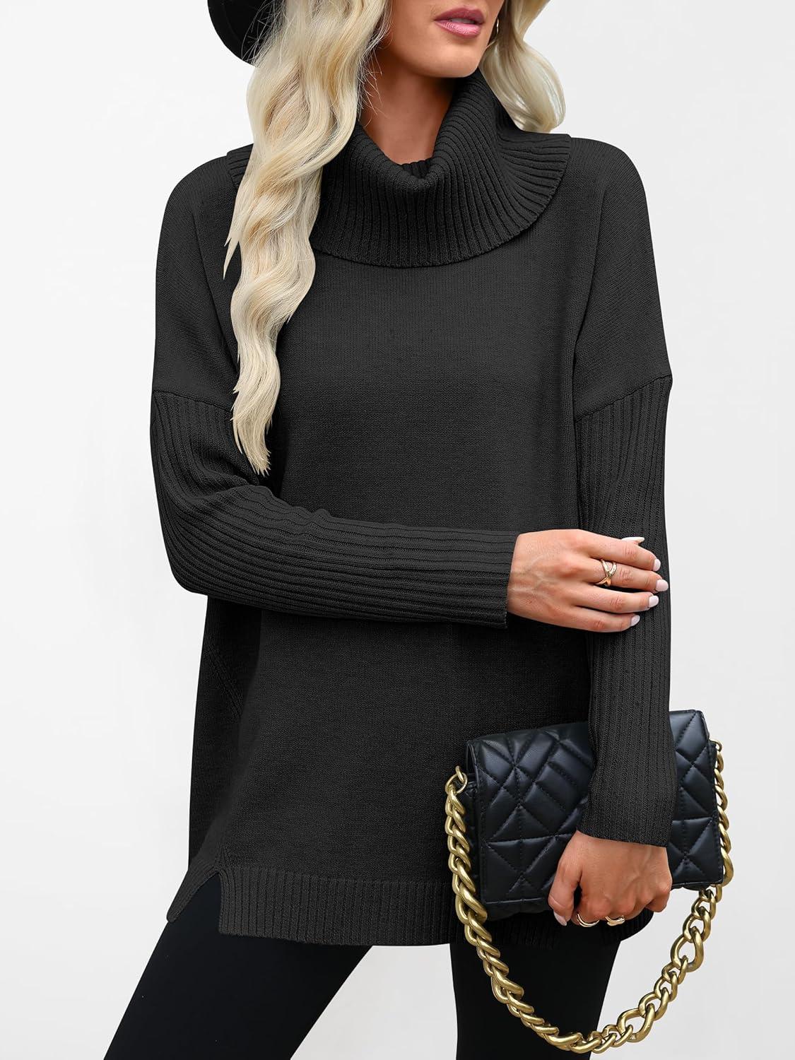 ANRABESS Women’s Oversized Sweater Turtleneck Long Sleeve Casual Knit Tunic Pullover Sweaters Tops 2025 Fall Winter Outfits(Black)