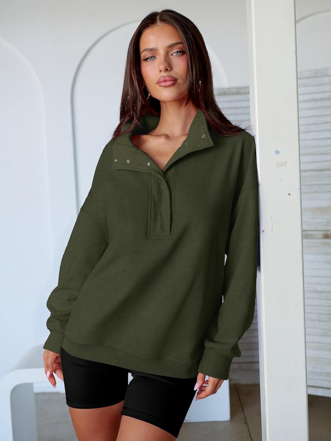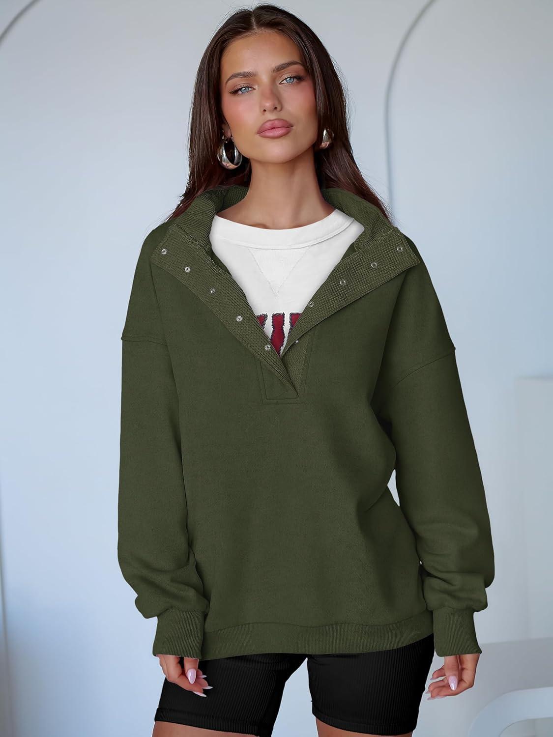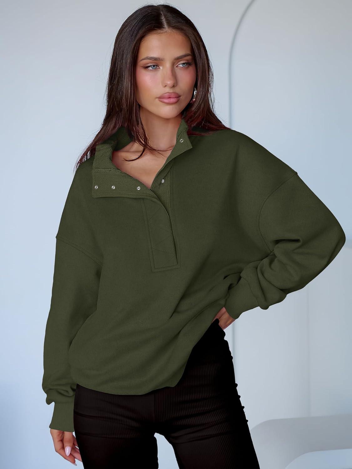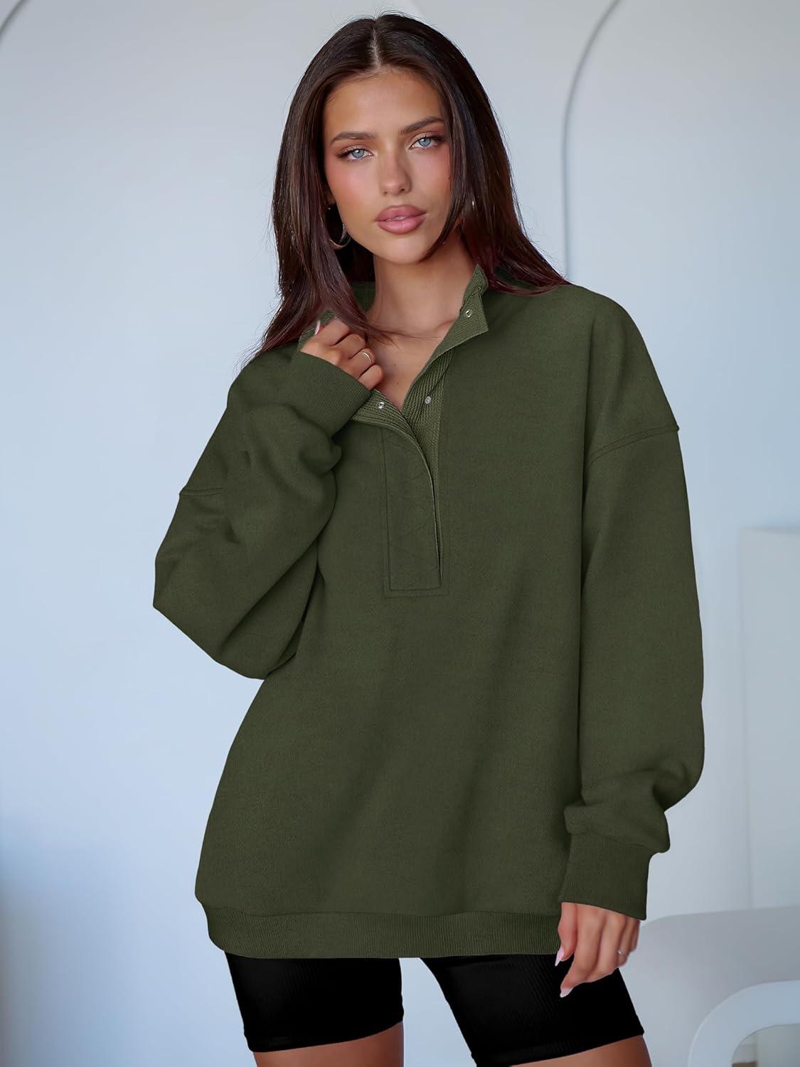 ANRABESS Womens Oversized Sweatshirt Long Sleeve Henley Pullover Tops 2025 Fall Casual Button Loose Fit Teens Fashion Outfits(Army Green)