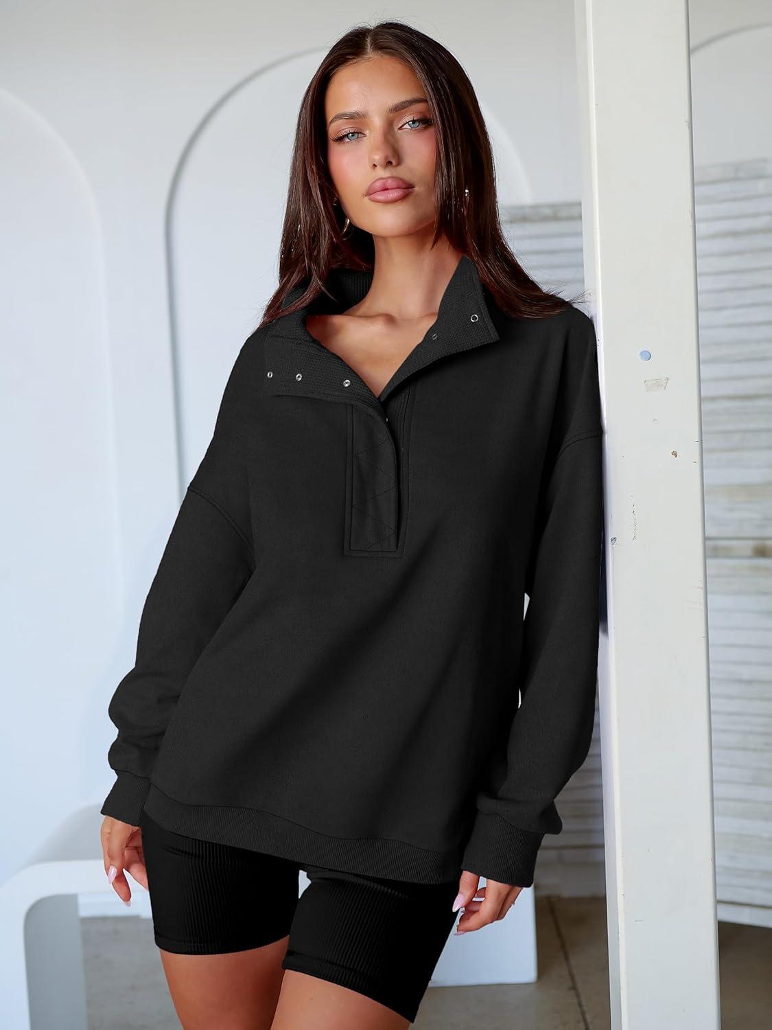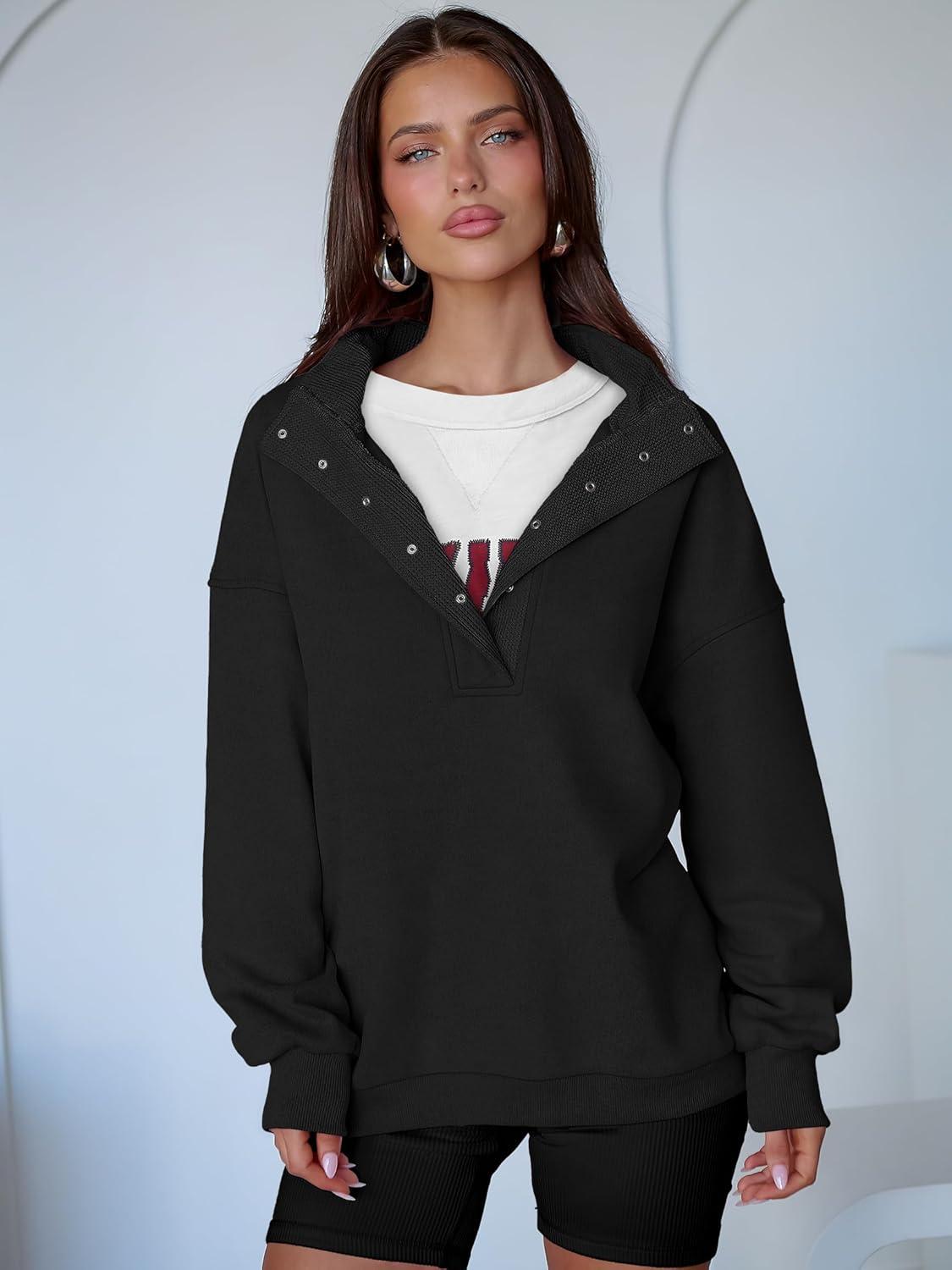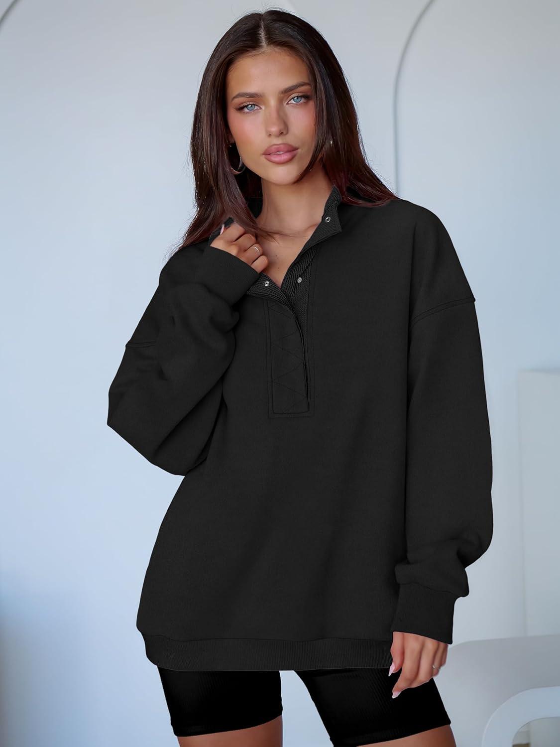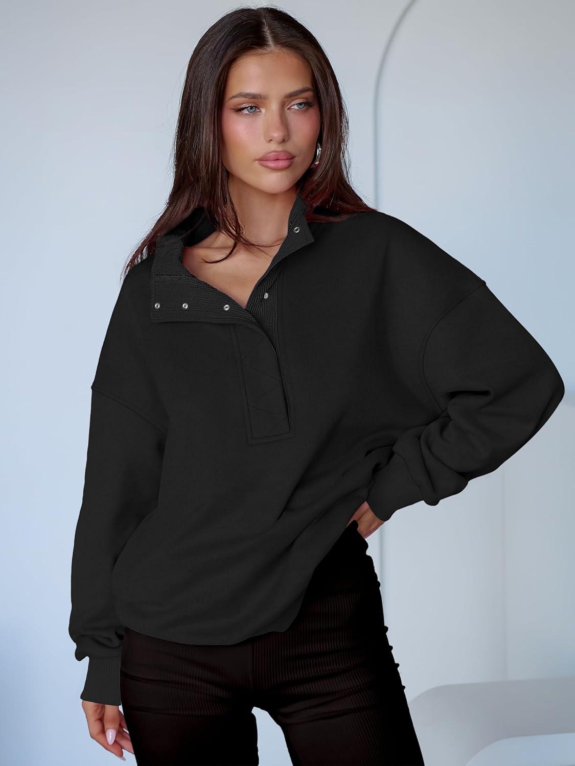 ANRABESS Womens Oversized Sweatshirt Long Sleeve Henley Pullover Tops 2025 Fall Casual Button Loose Fit Teens Fashion Outfits(Black)