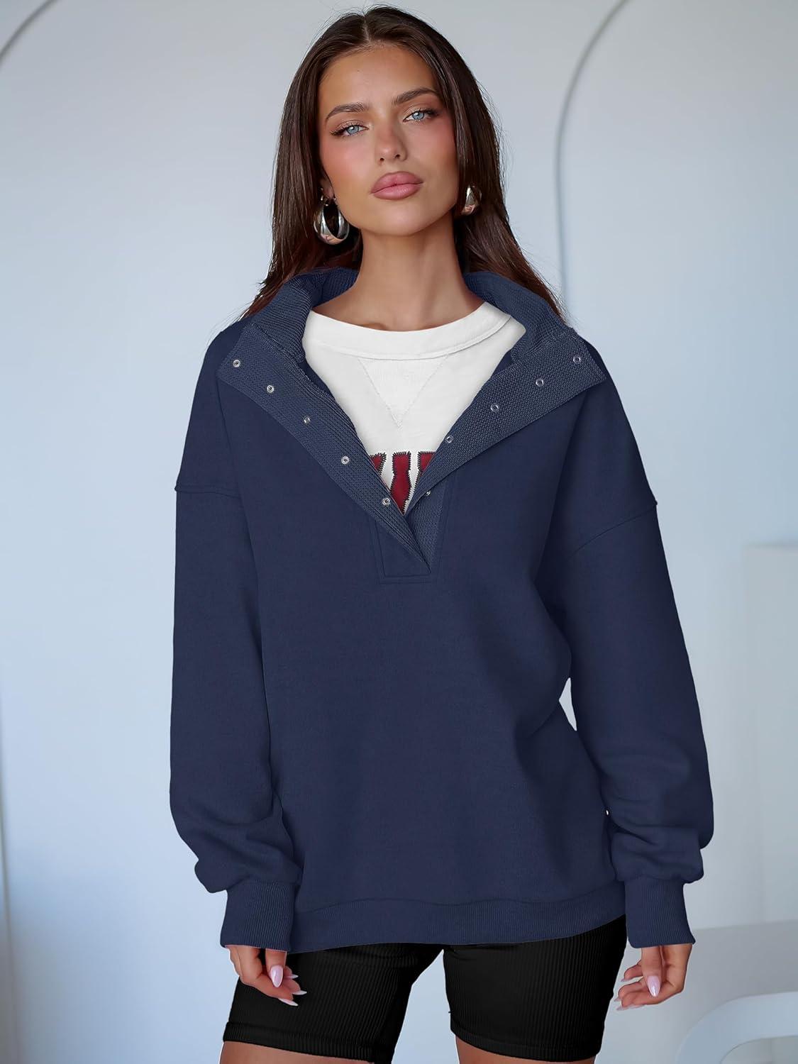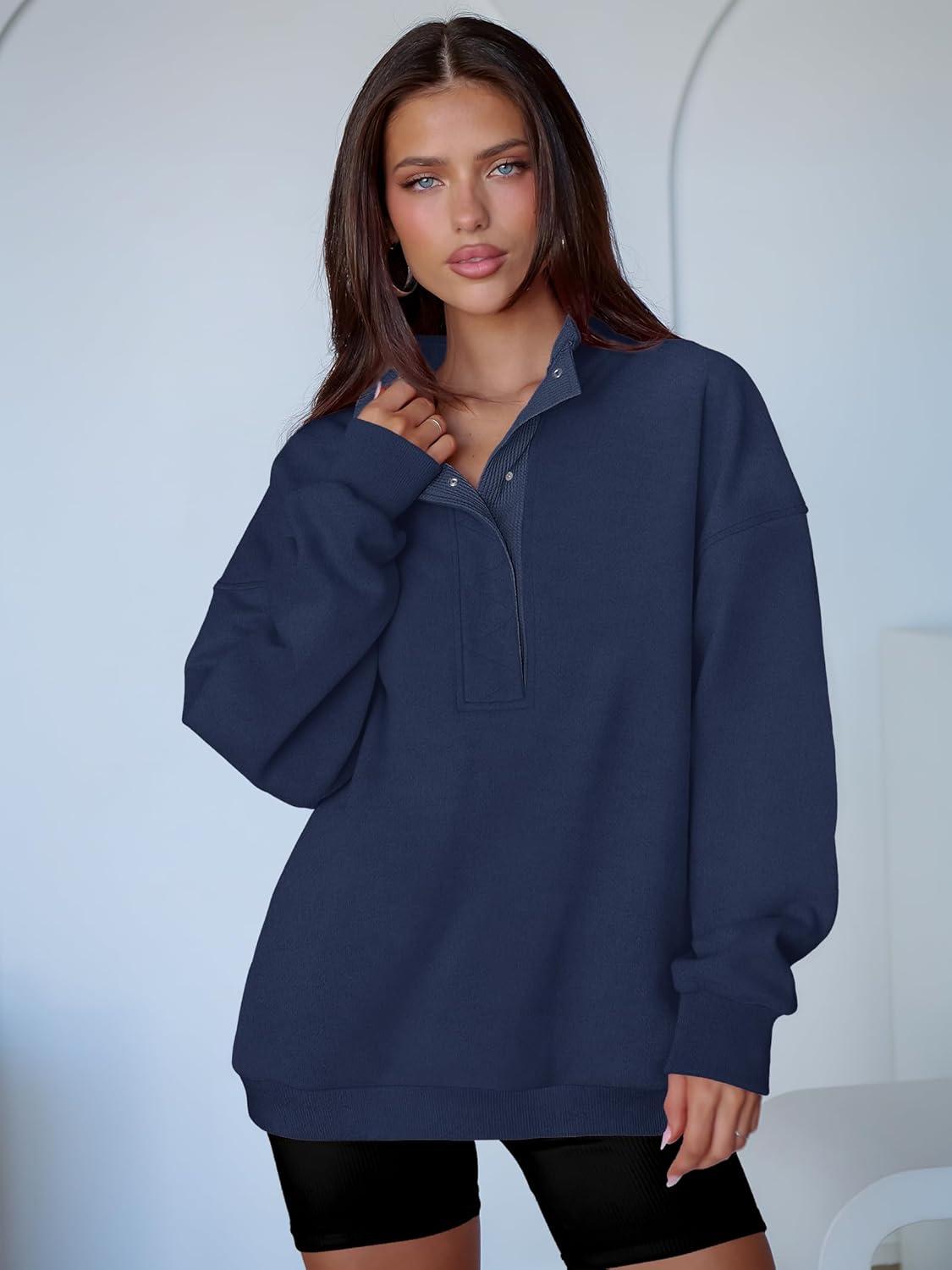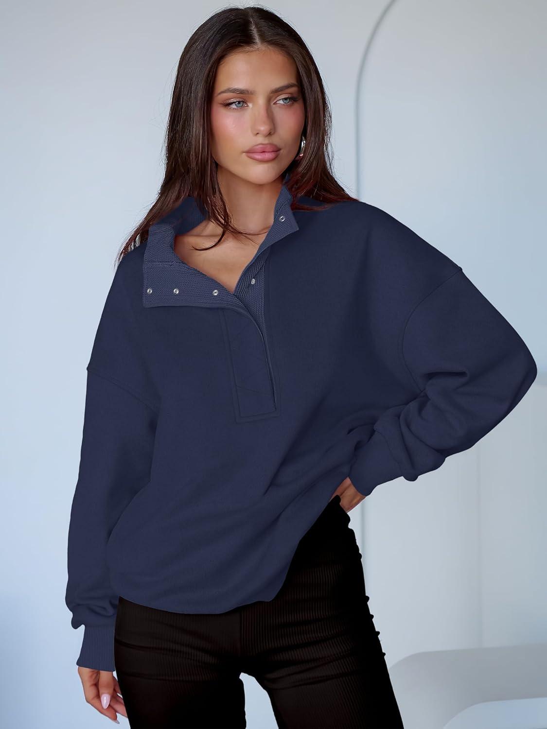 ANRABESS Womens Oversized Sweatshirt Long Sleeve Henley Pullover Tops 2025 Fall Casual Button Loose Fit Teens Fashion Outfits(Dark Blue)