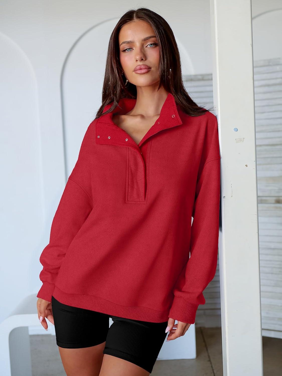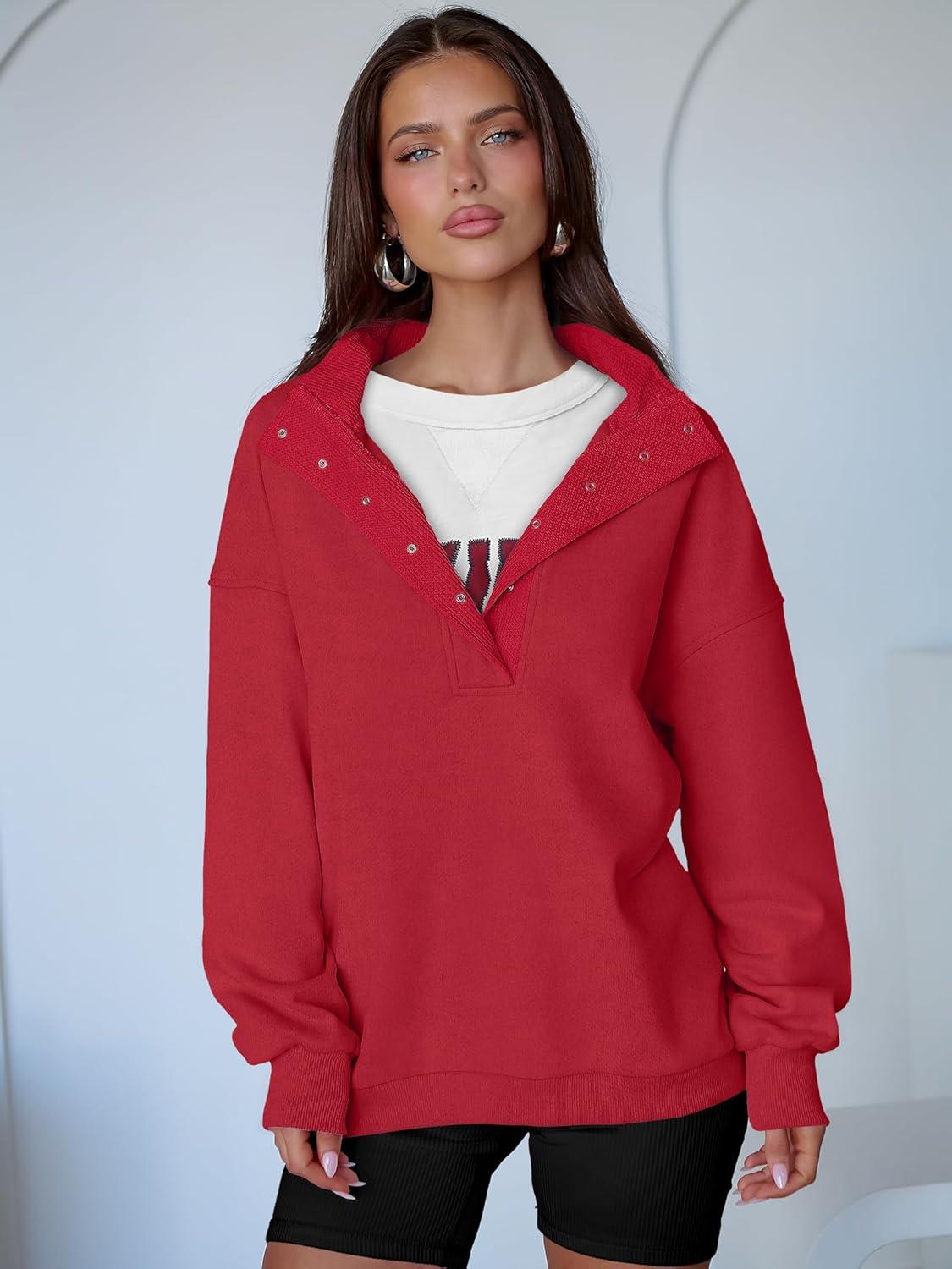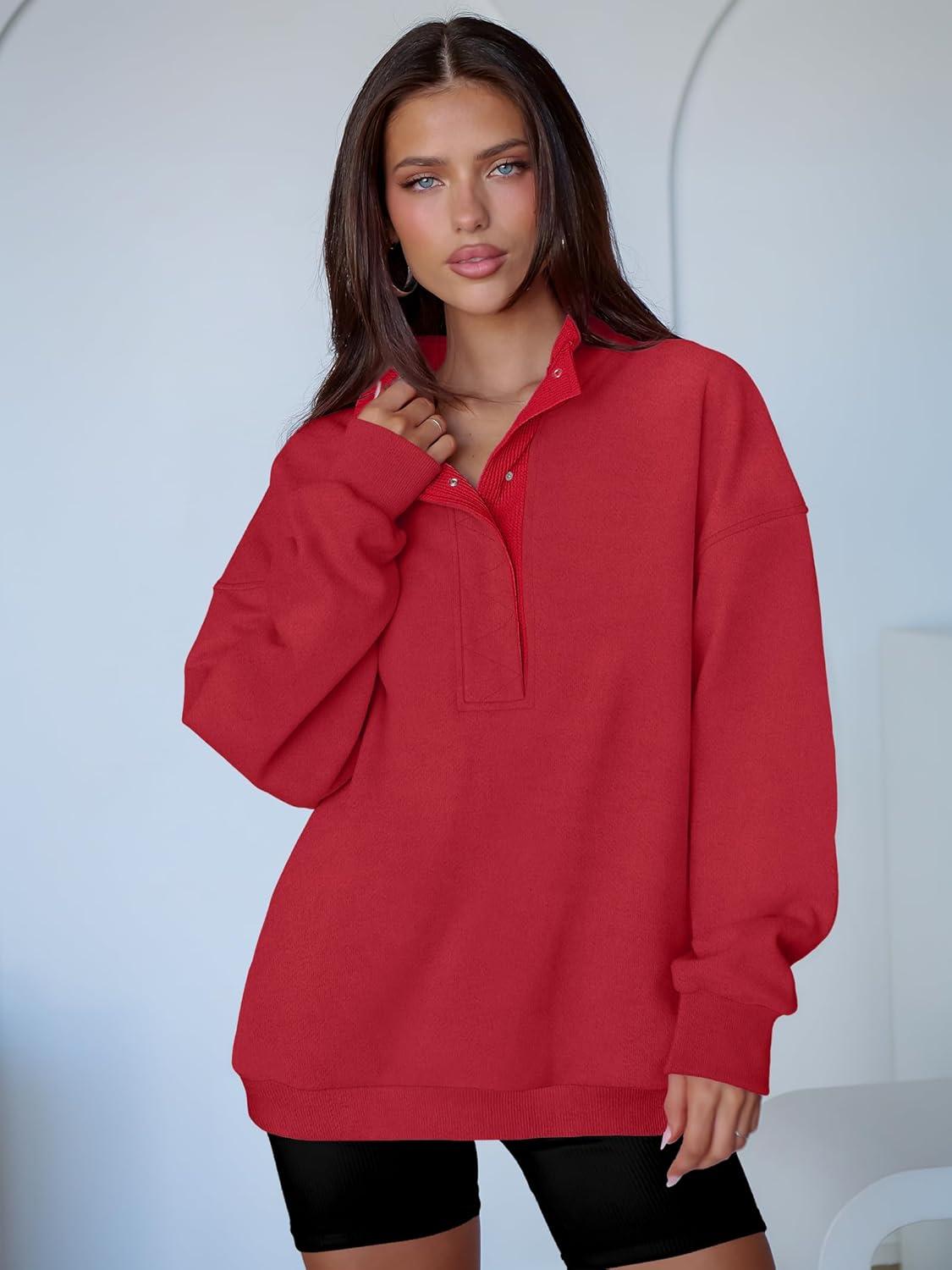 ANRABESS Womens Oversized Sweatshirt Long Sleeve Henley Pullover Tops 2025 Fall Casual Button Loose Fit Teens Fashion Outfits(Red)