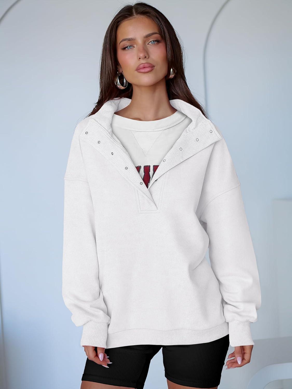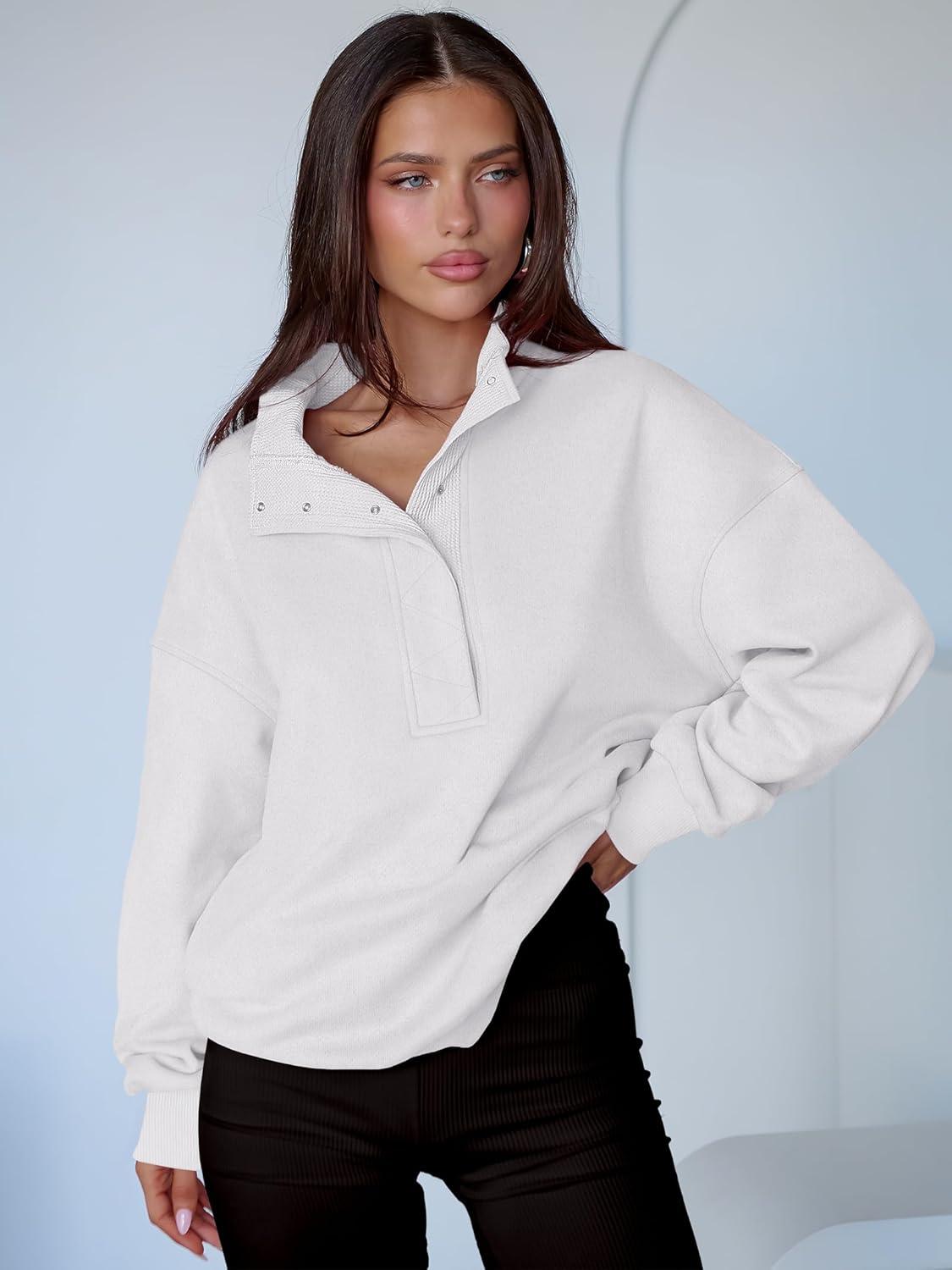 ANRABESS Womens Oversized Sweatshirt Long Sleeve Henley Pullover Tops 2025 Fall Casual Button Loose Fit Teens Fashion Outfits(White)