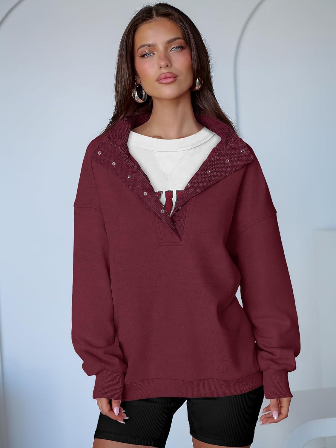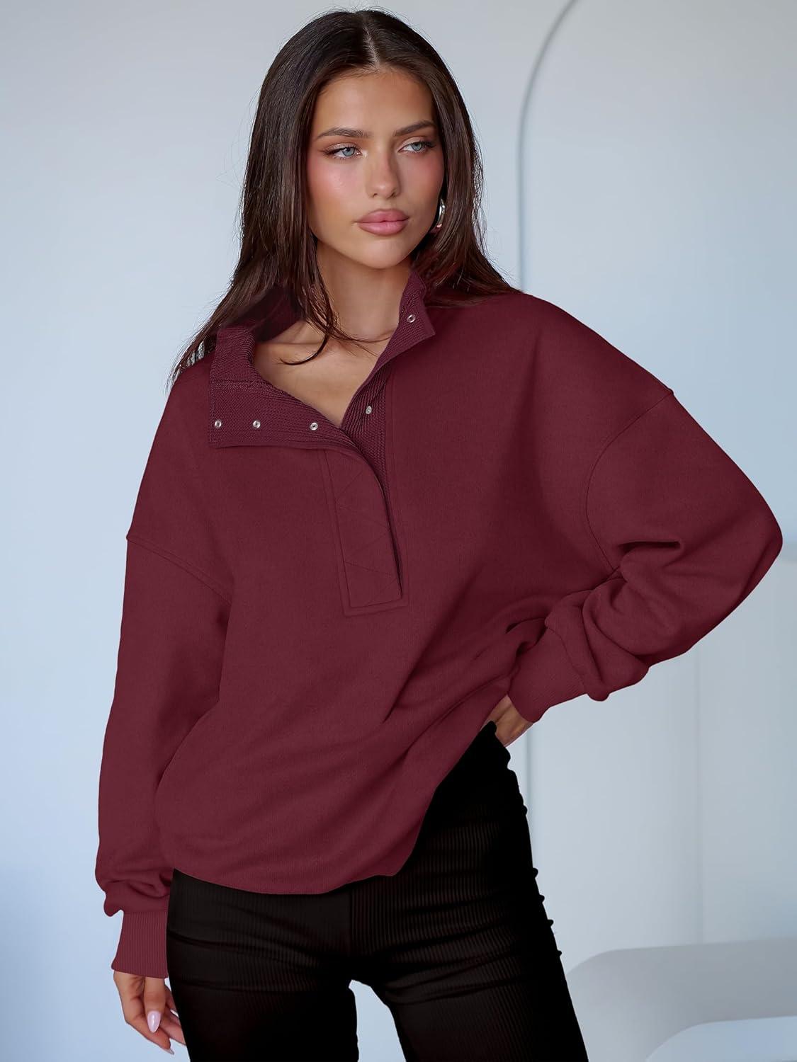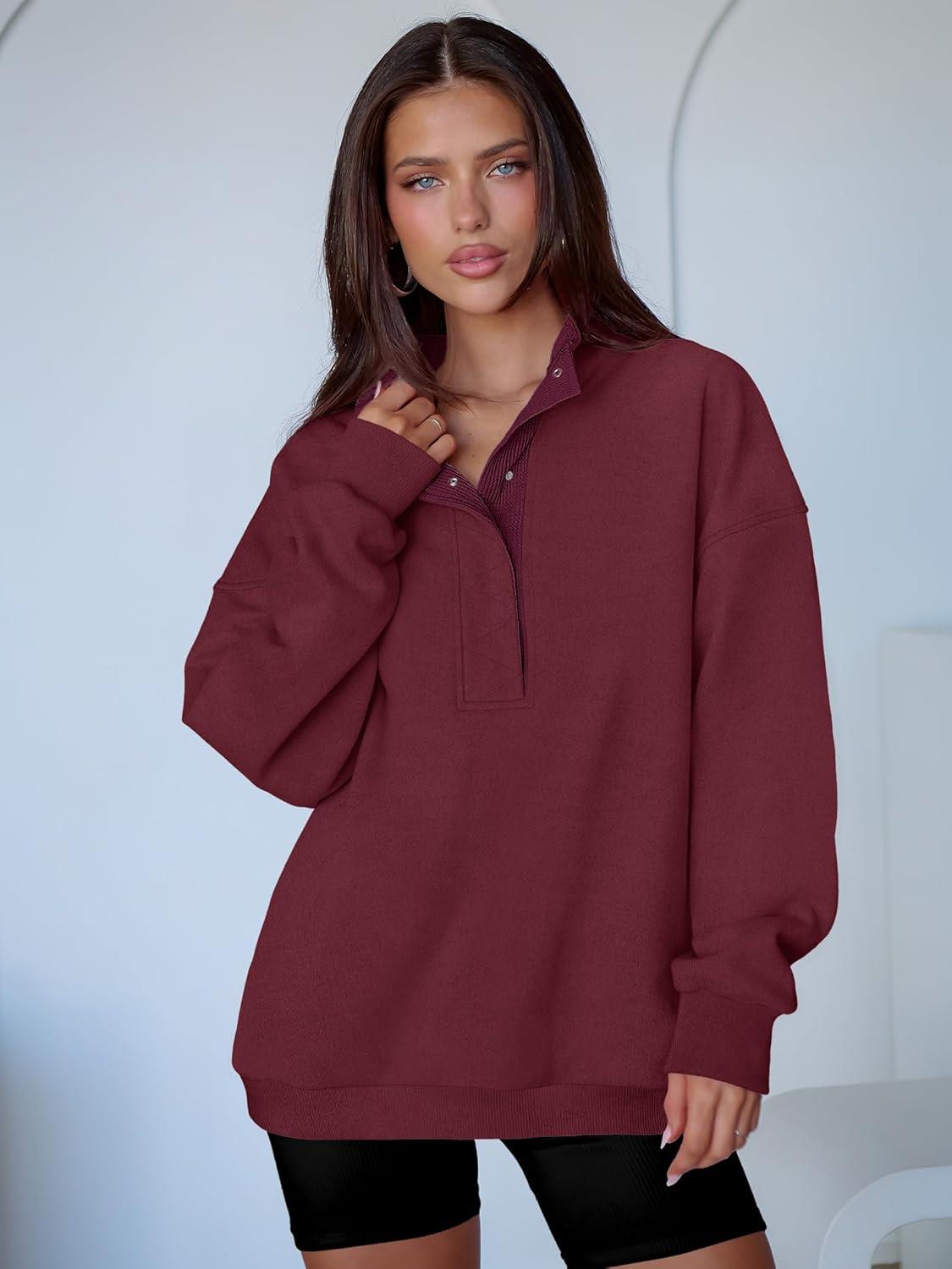 ANRABESS Womens Oversized Sweatshirt Long Sleeve Henley Pullover Tops 2025 Fall Casual Button Loose Fit Teens Fashion Outfits(Wine Red)
