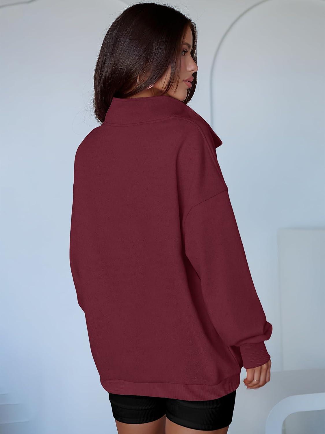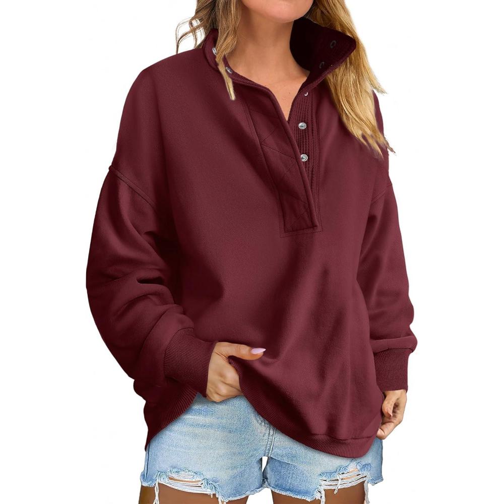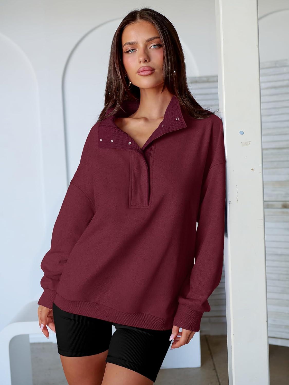 ANRABESS Womens Oversized Sweatshirt Long Sleeve Henley Pullover Tops 2025 Fall Casual Button Loose Fit Teens Fashion Outfits(Wine Red)