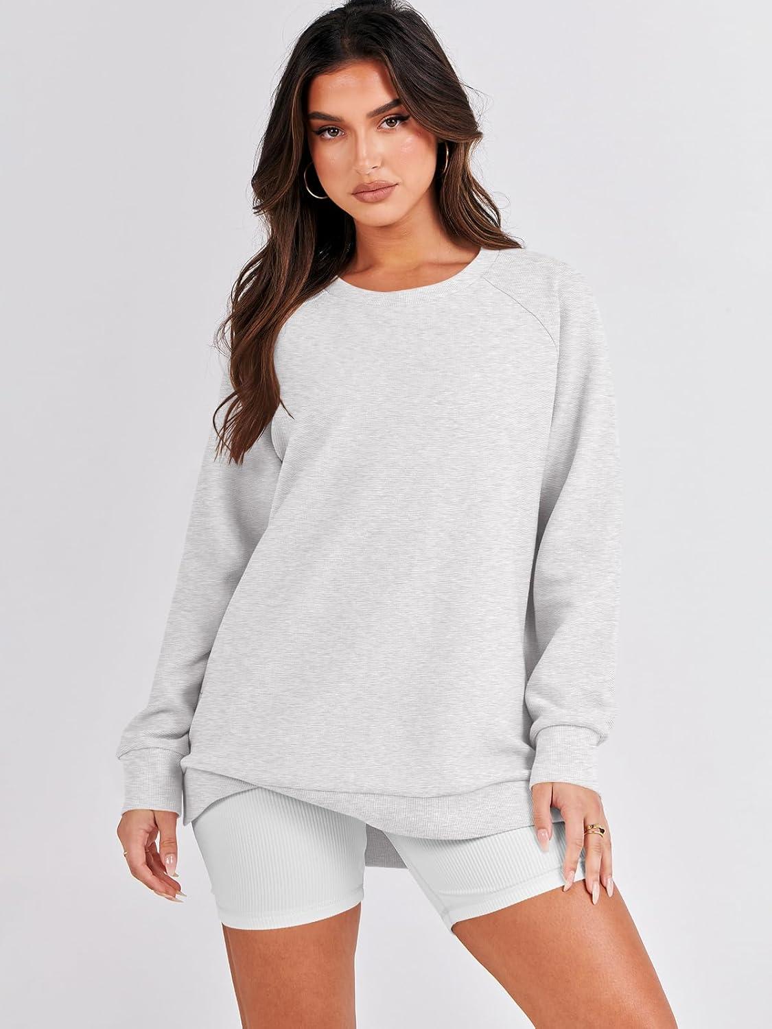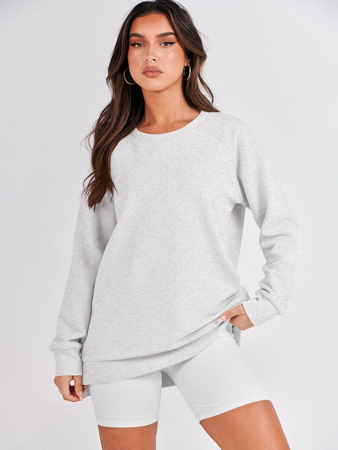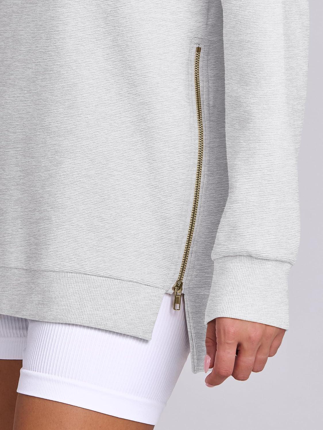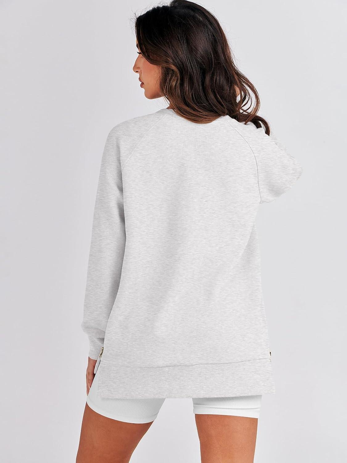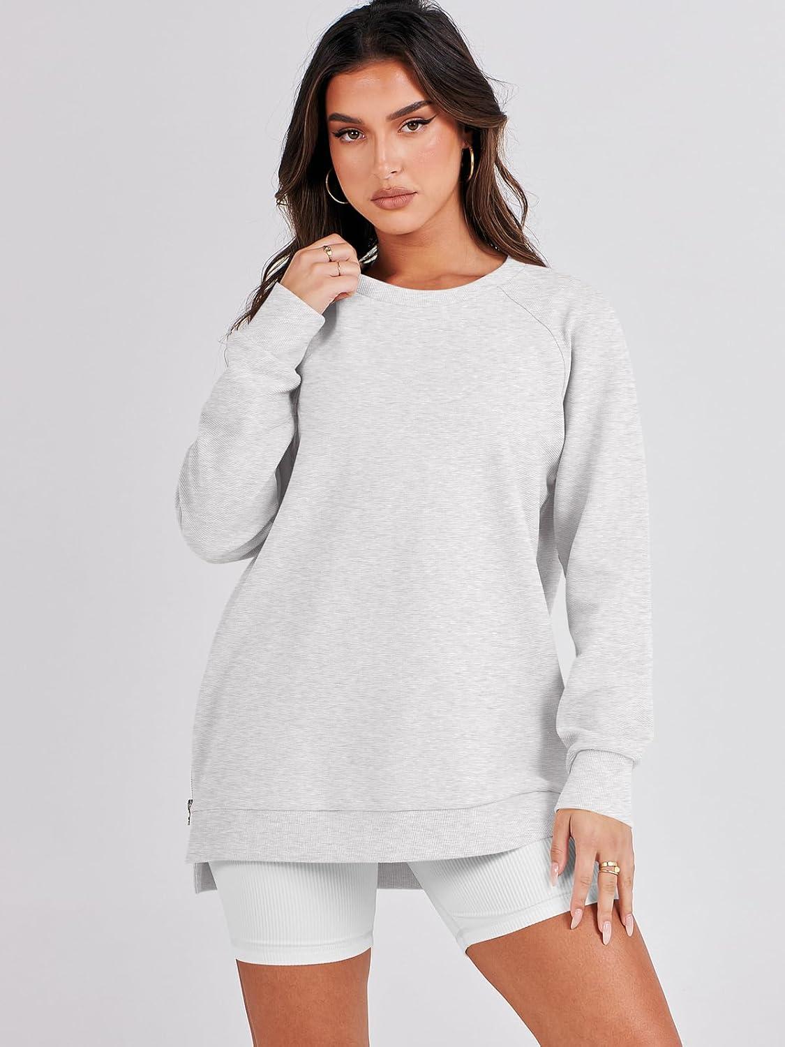 ANRABESS Women’s Oversized Sweatshirts Crewneck Long Sleeve Tunic Pullover Shirts Side Zipper Hoodies 2025 Fall Clothes(Light Gray)