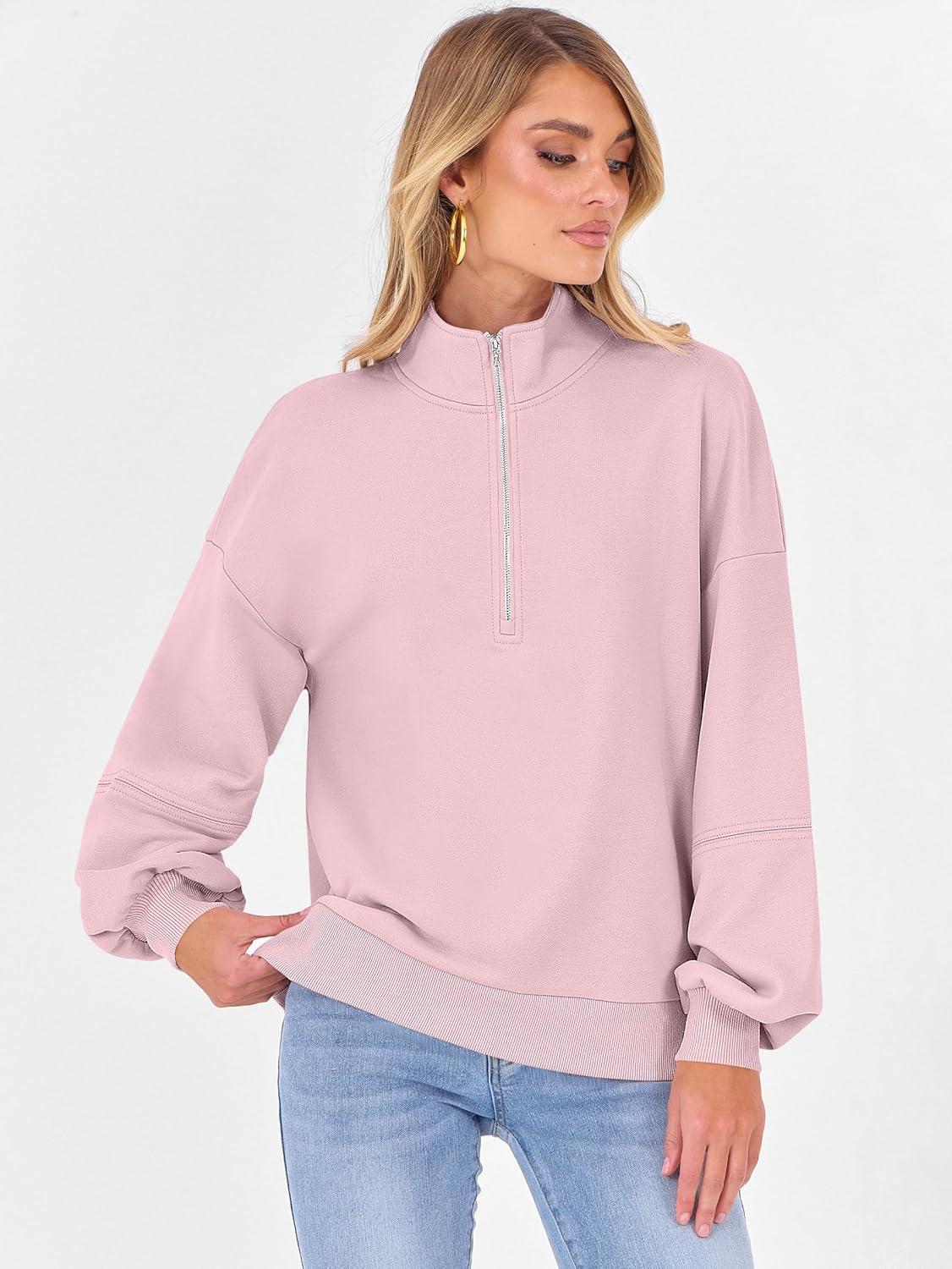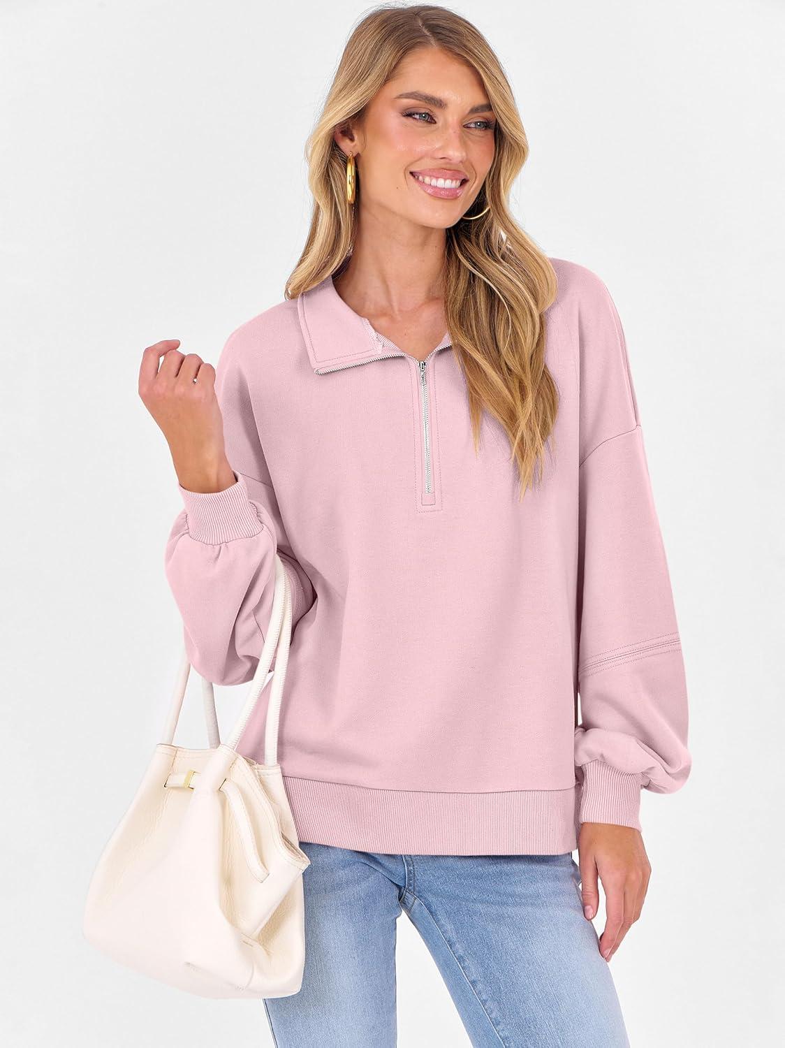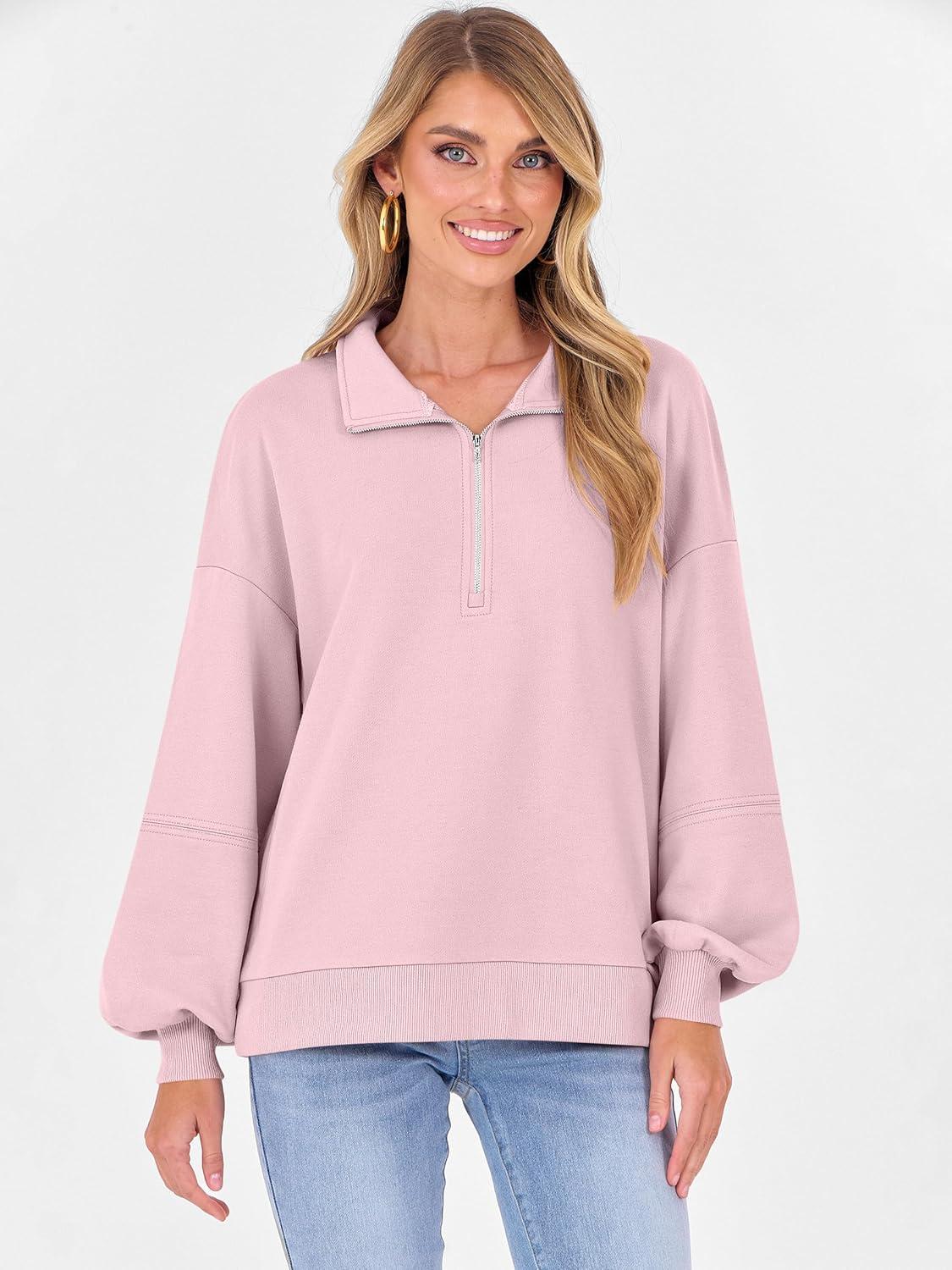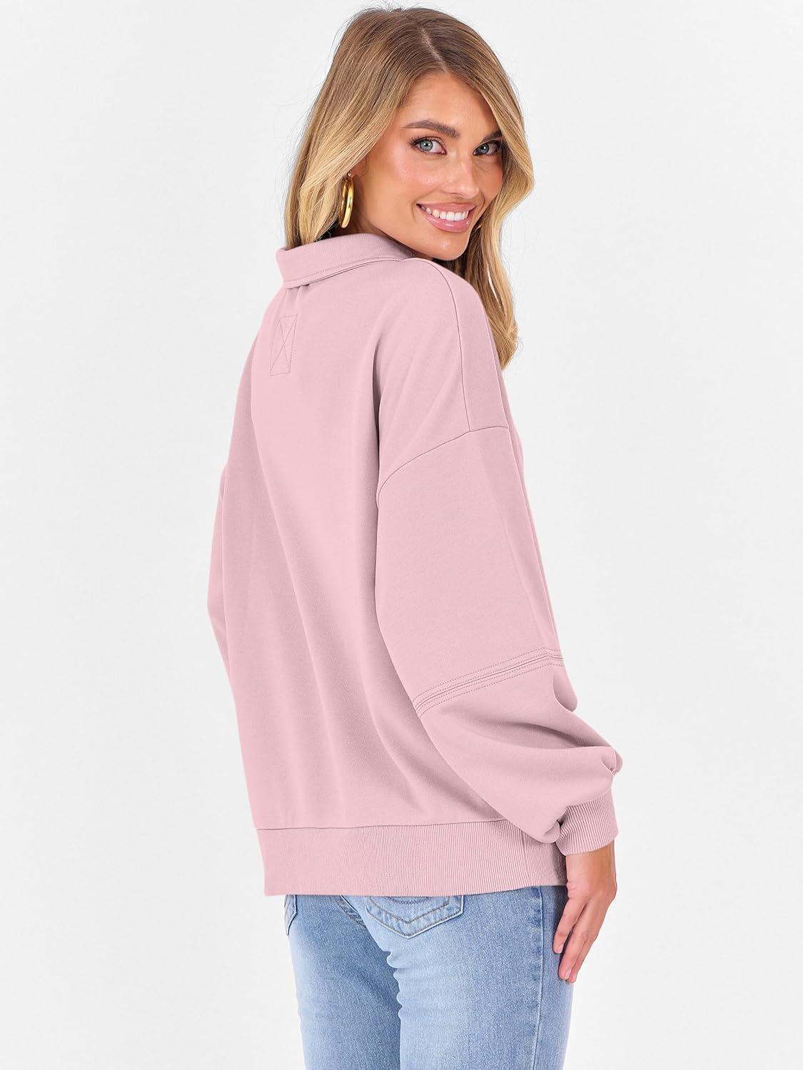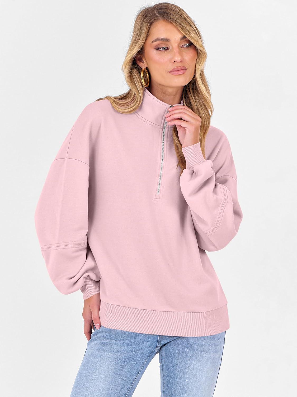 ANRABESS Womens Oversized Sweatshirts Quarter Zip Long Sleeve Comfy Casual Boxy Pullover Tops 2025 Fall Trendy Y2K Outfits(Pink)