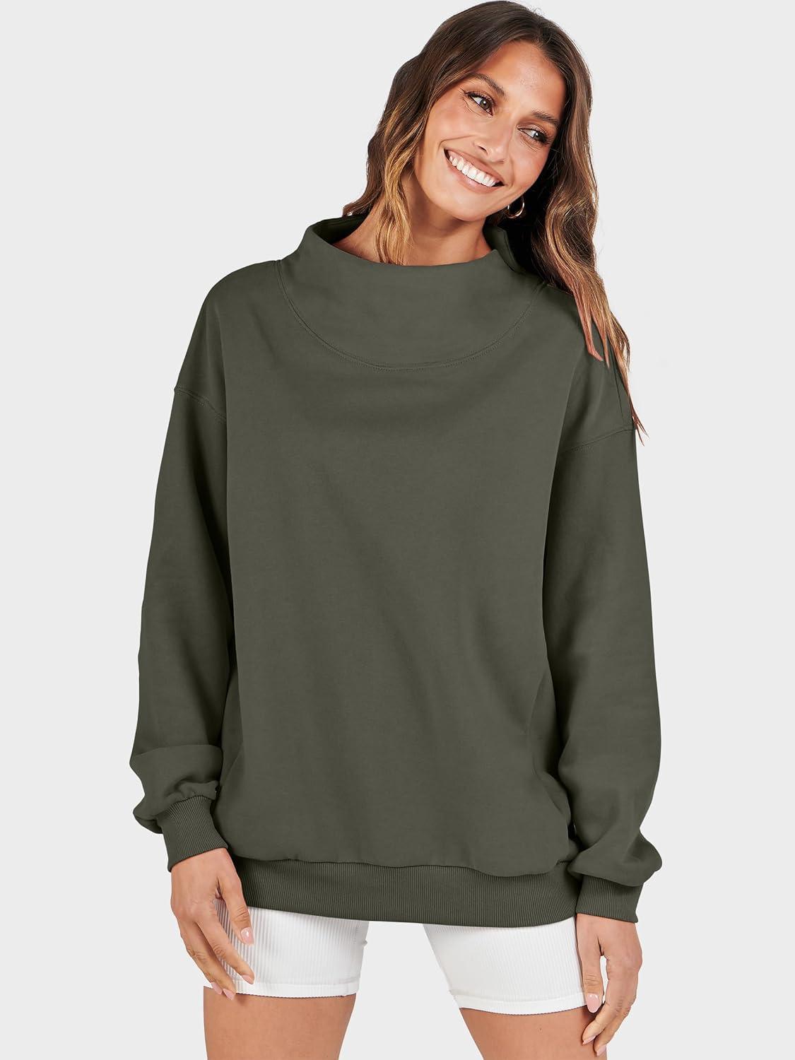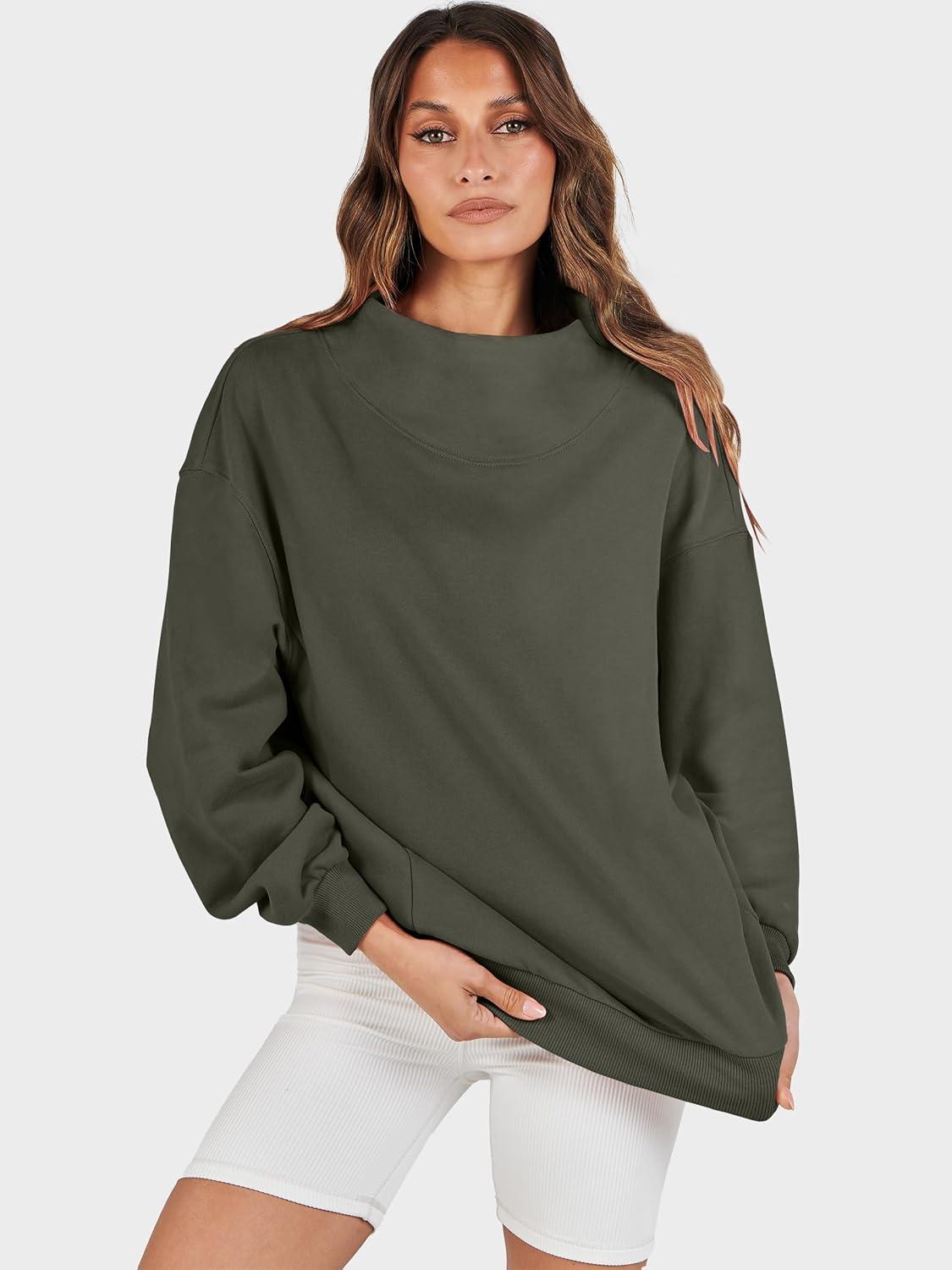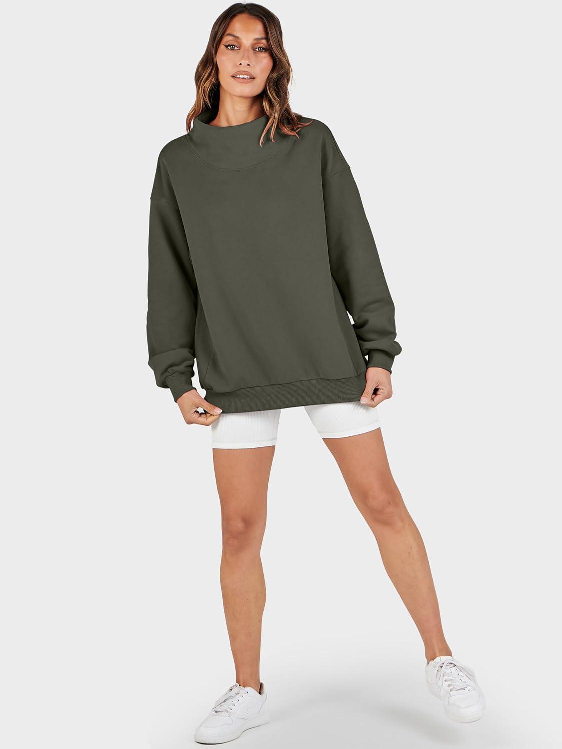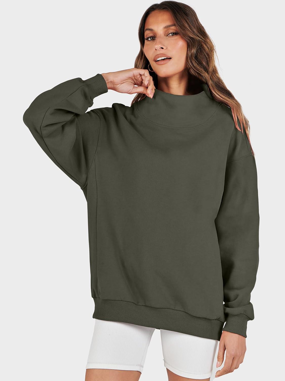 ANRABESS Womens Oversized Sweatshirts Turtleneck Pullover Long Sleeve Hoodies Tops 2025 Fall Fashion Preppy Outfits(Armygreen)