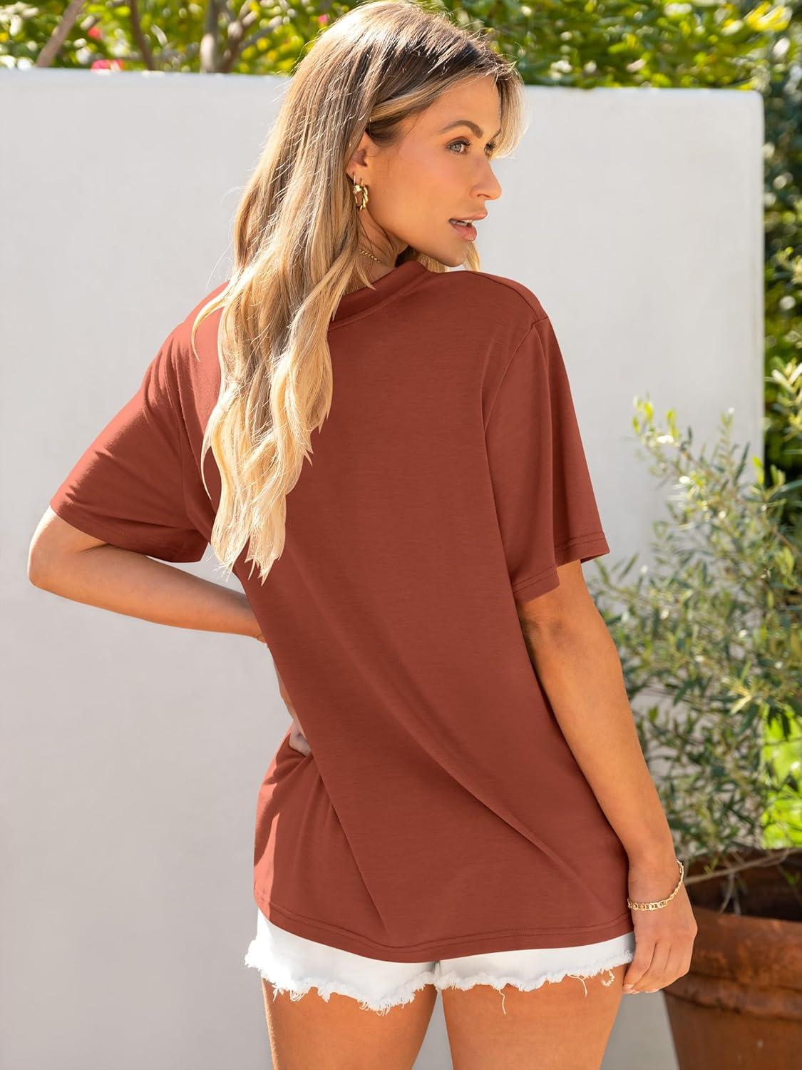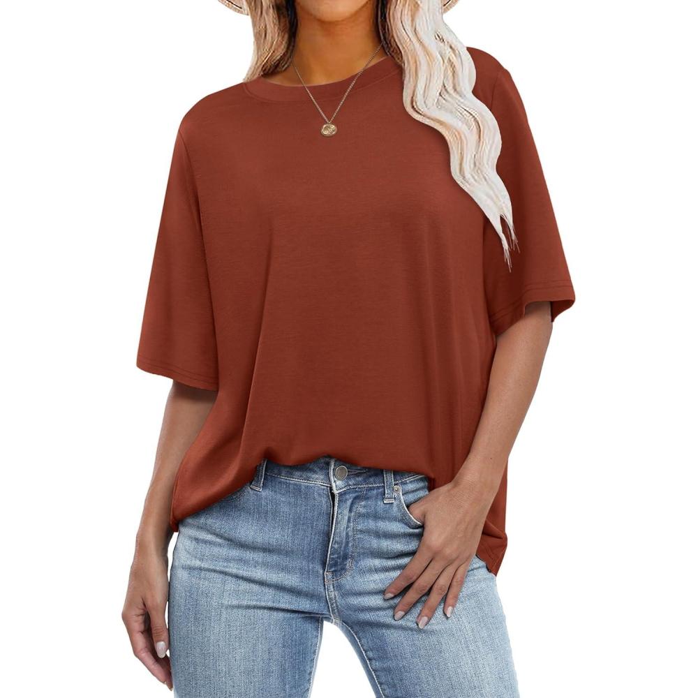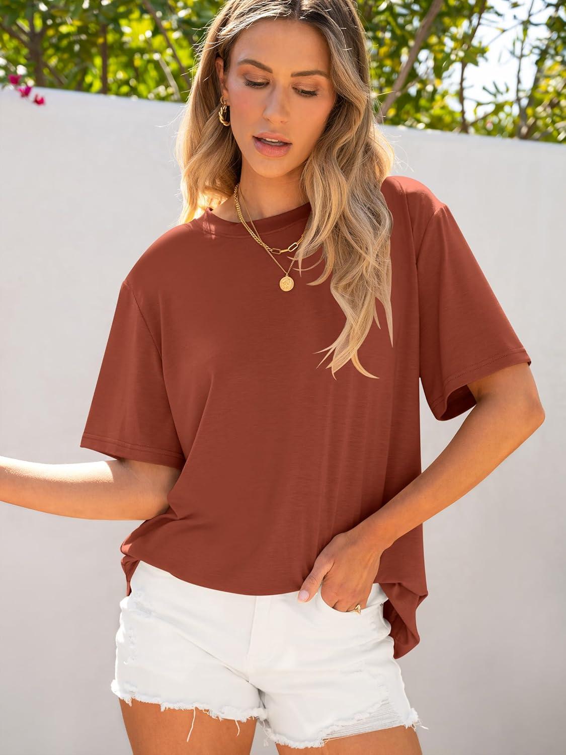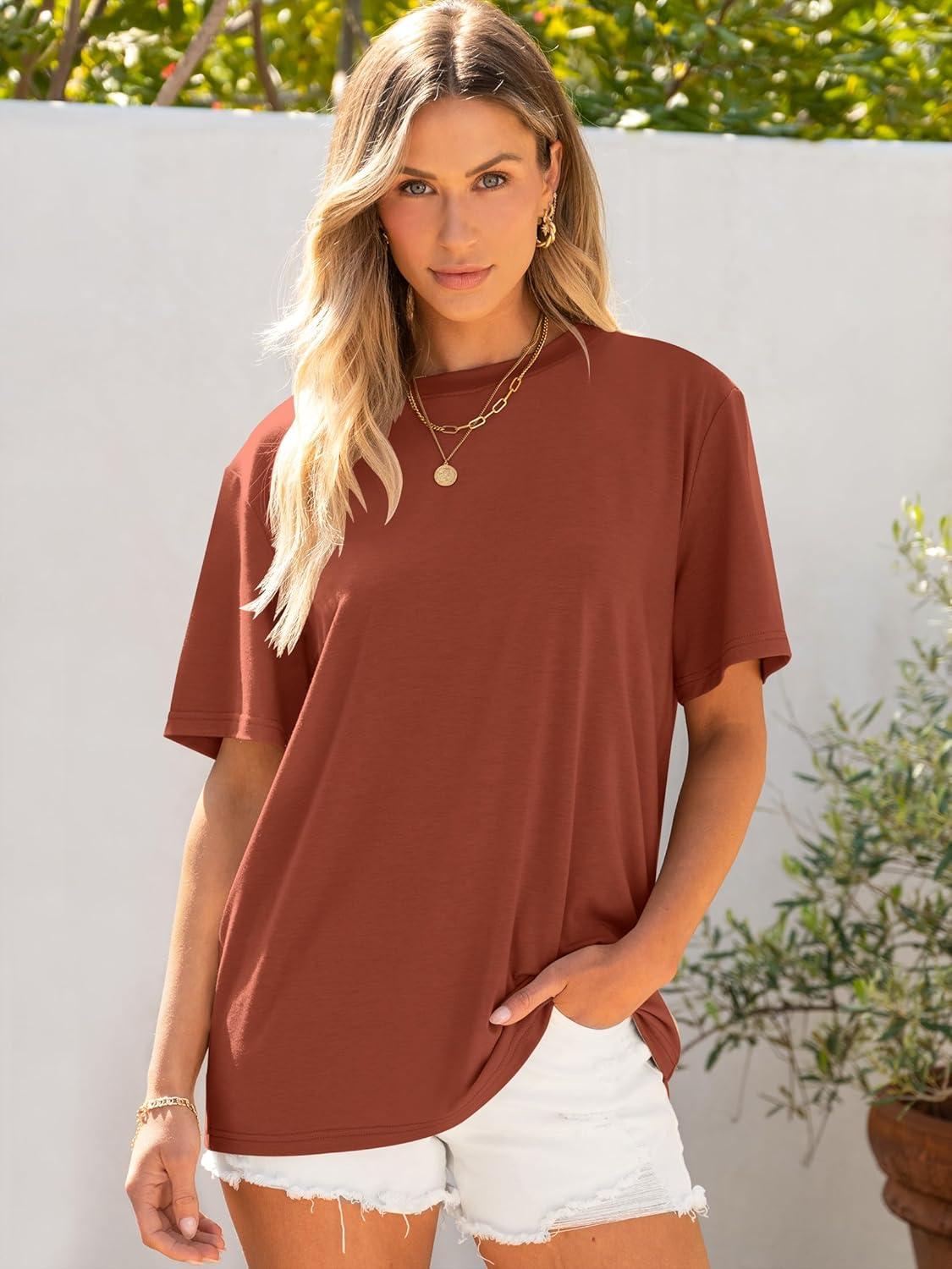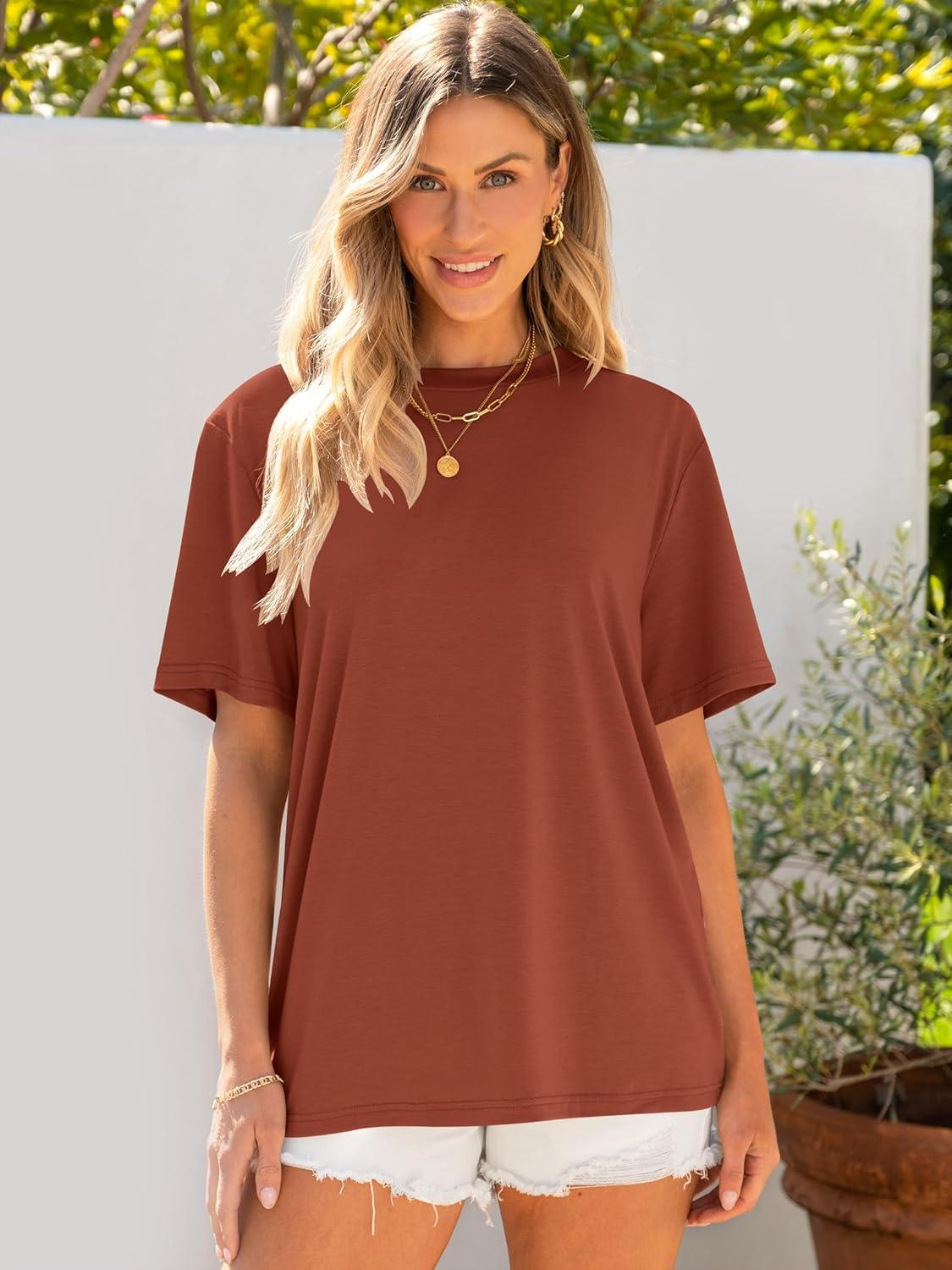 ANRABESS Womens Oversized T Shirts Short Sleeve Crewneck Tops Casual Loose Basic Tee Shirts 2025 Summer Trendy Outfits(Brick Red)