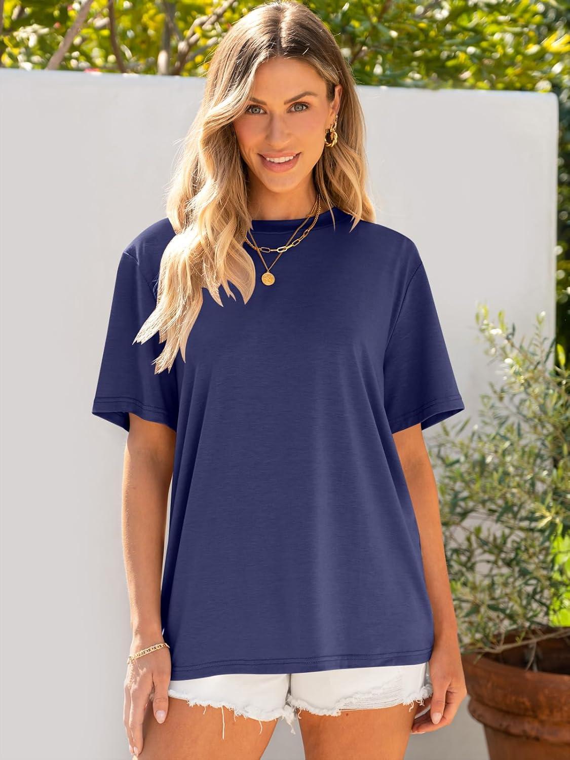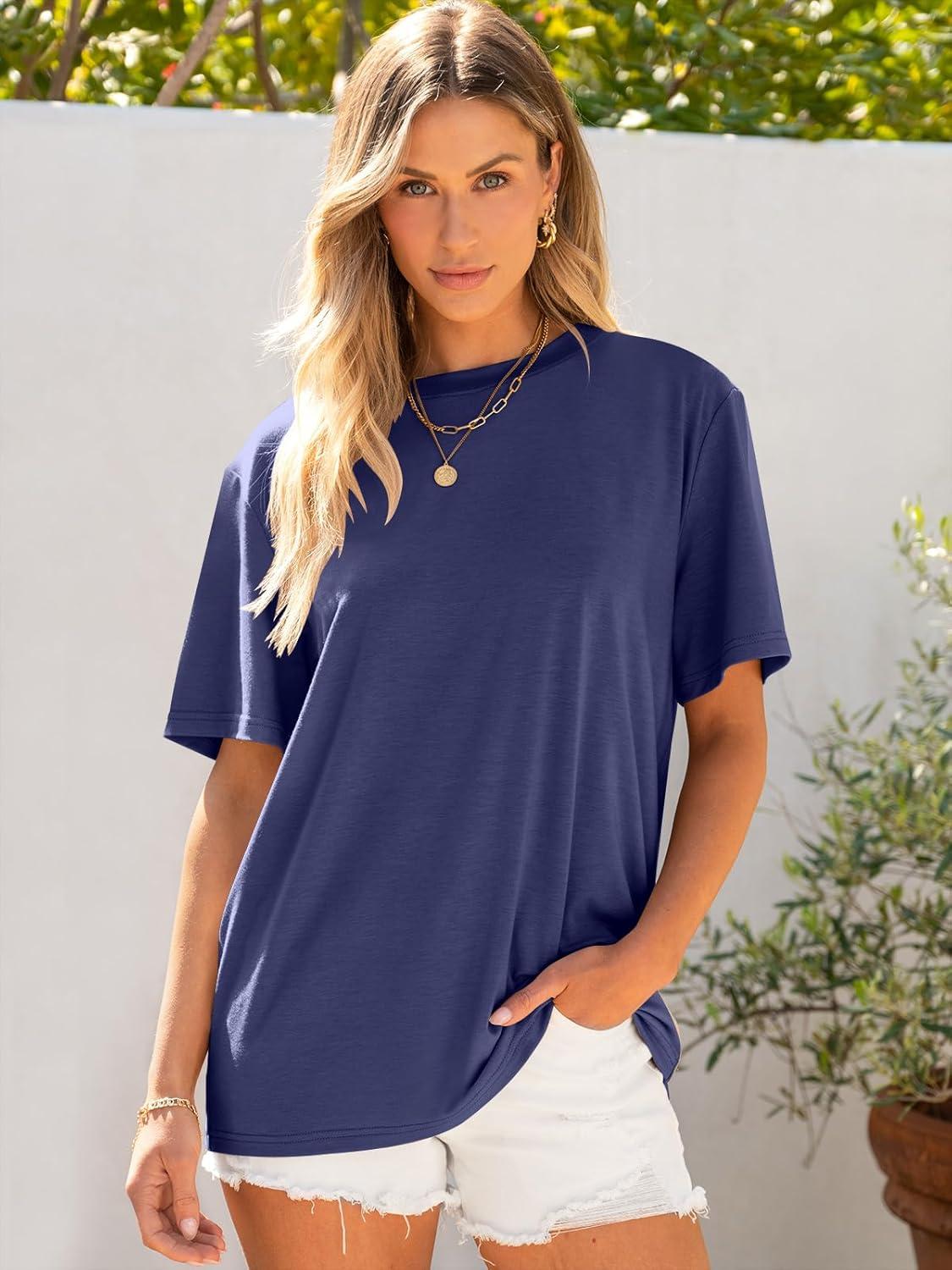 ANRABESS Womens Oversized T Shirts Short Sleeve Crewneck Tops Casual Loose Basic Tee Shirts 2025 Summer Trendy Outfits(Navy Blue)