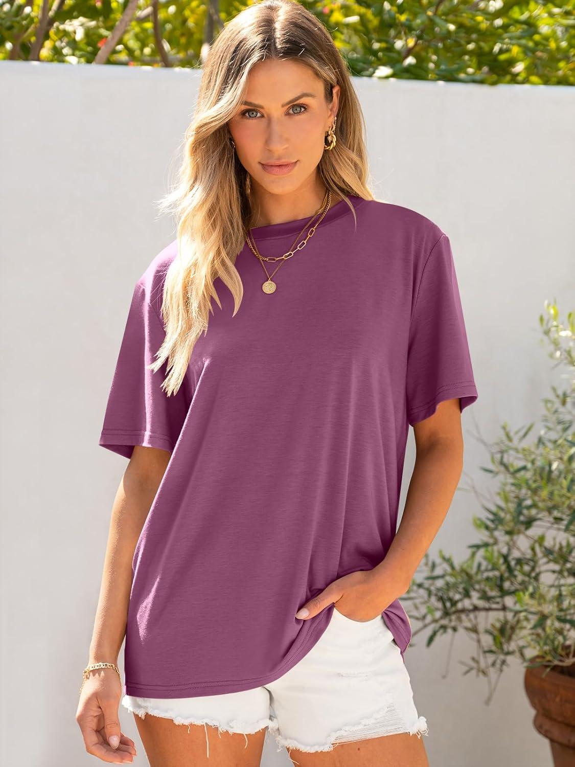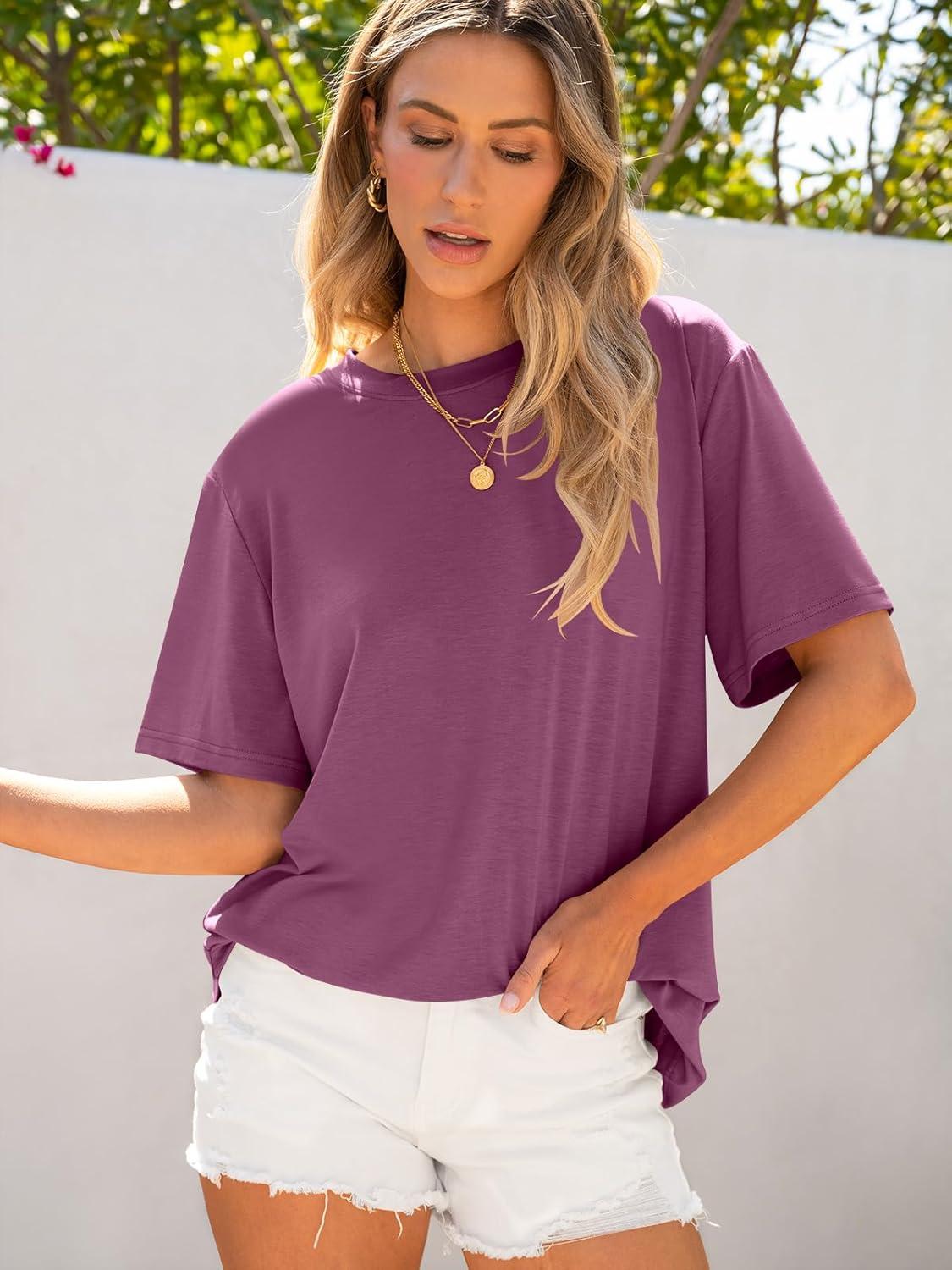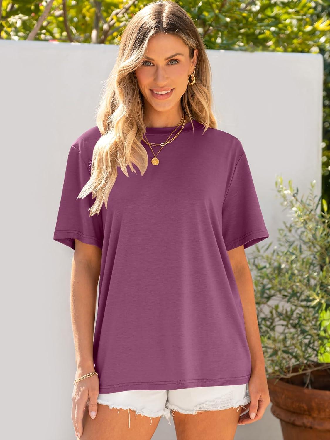 ANRABESS Womens Oversized T Shirts Short Sleeve Crewneck Tops Casual Loose Basic Tee Shirts 2025 Summer Trendy Outfits(Purple)