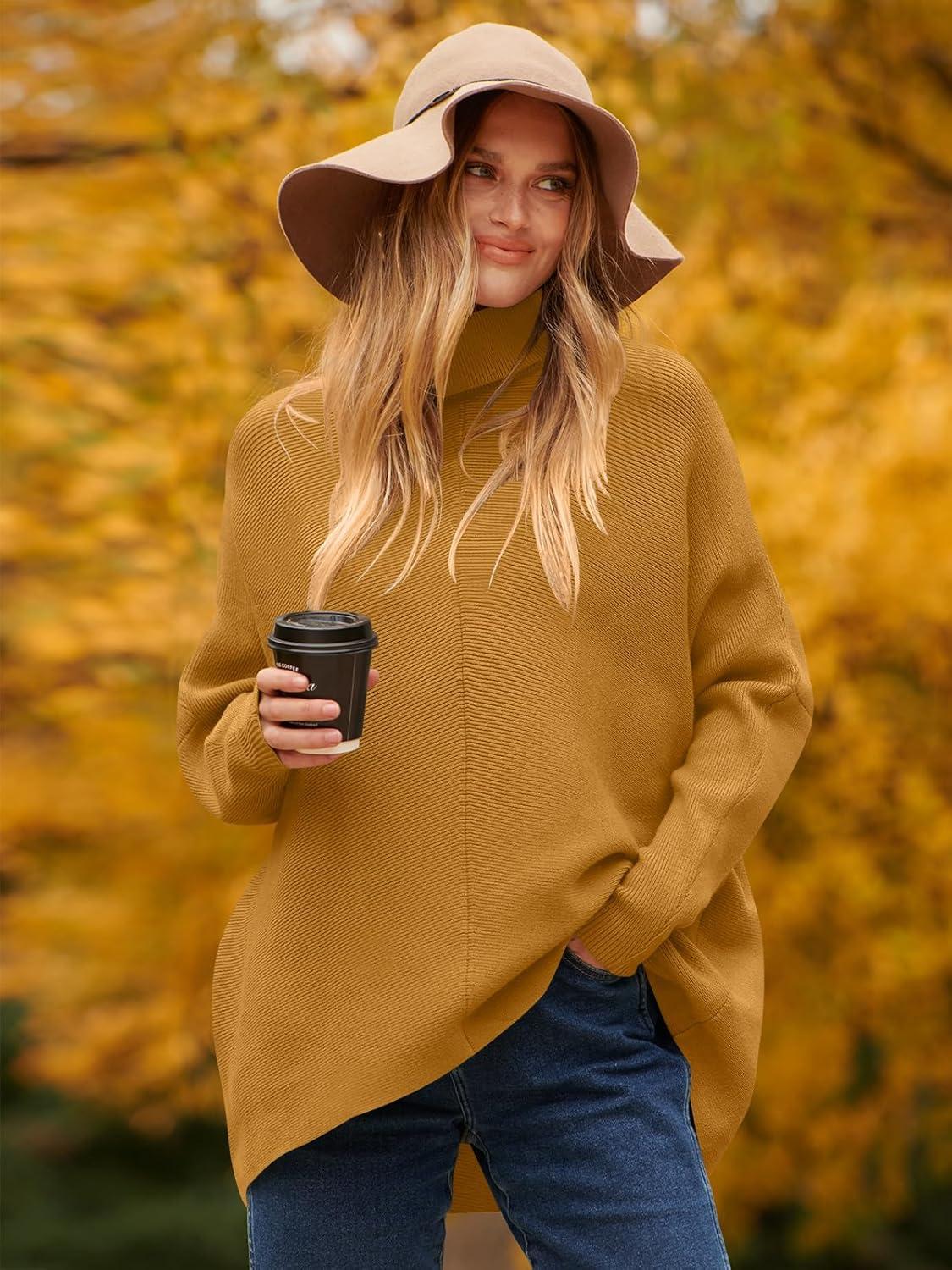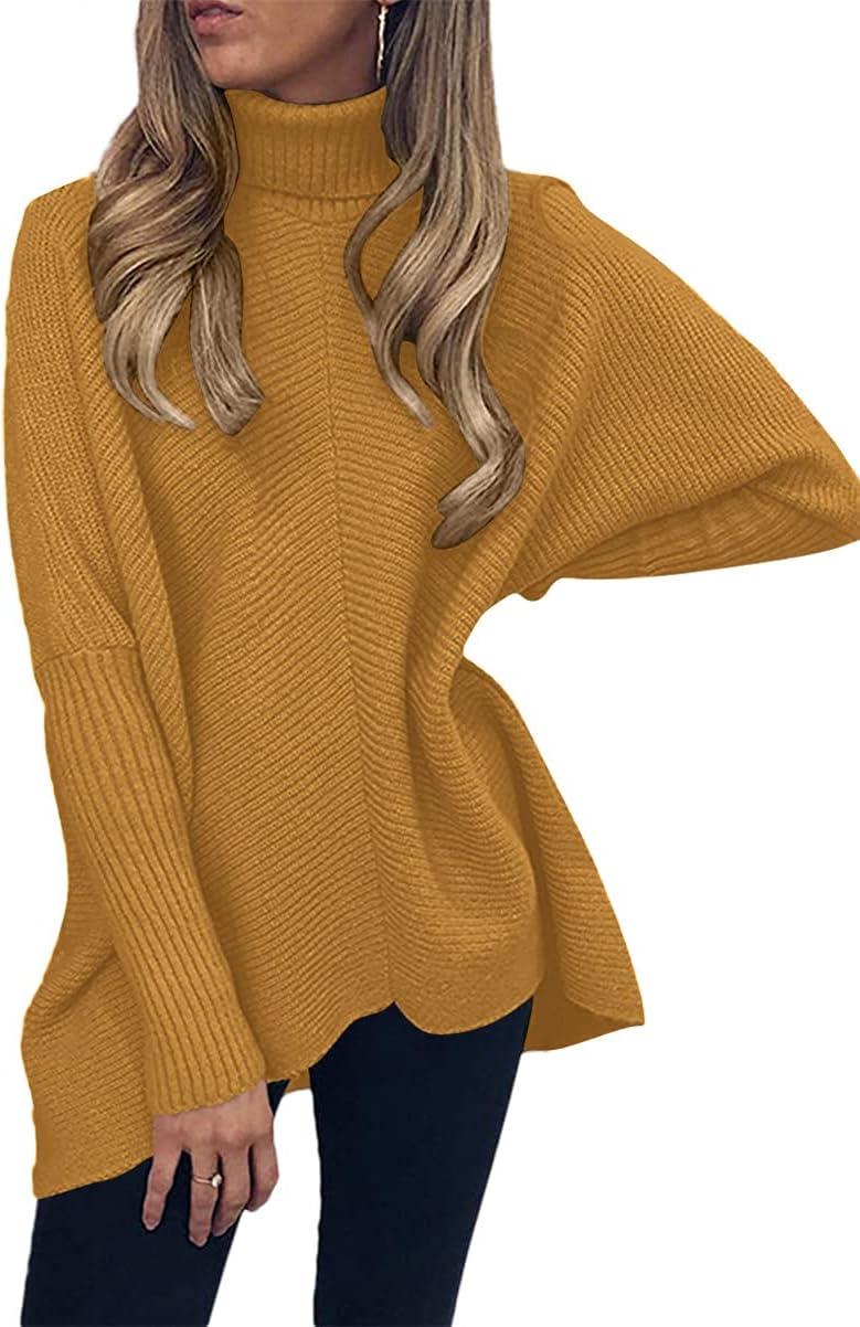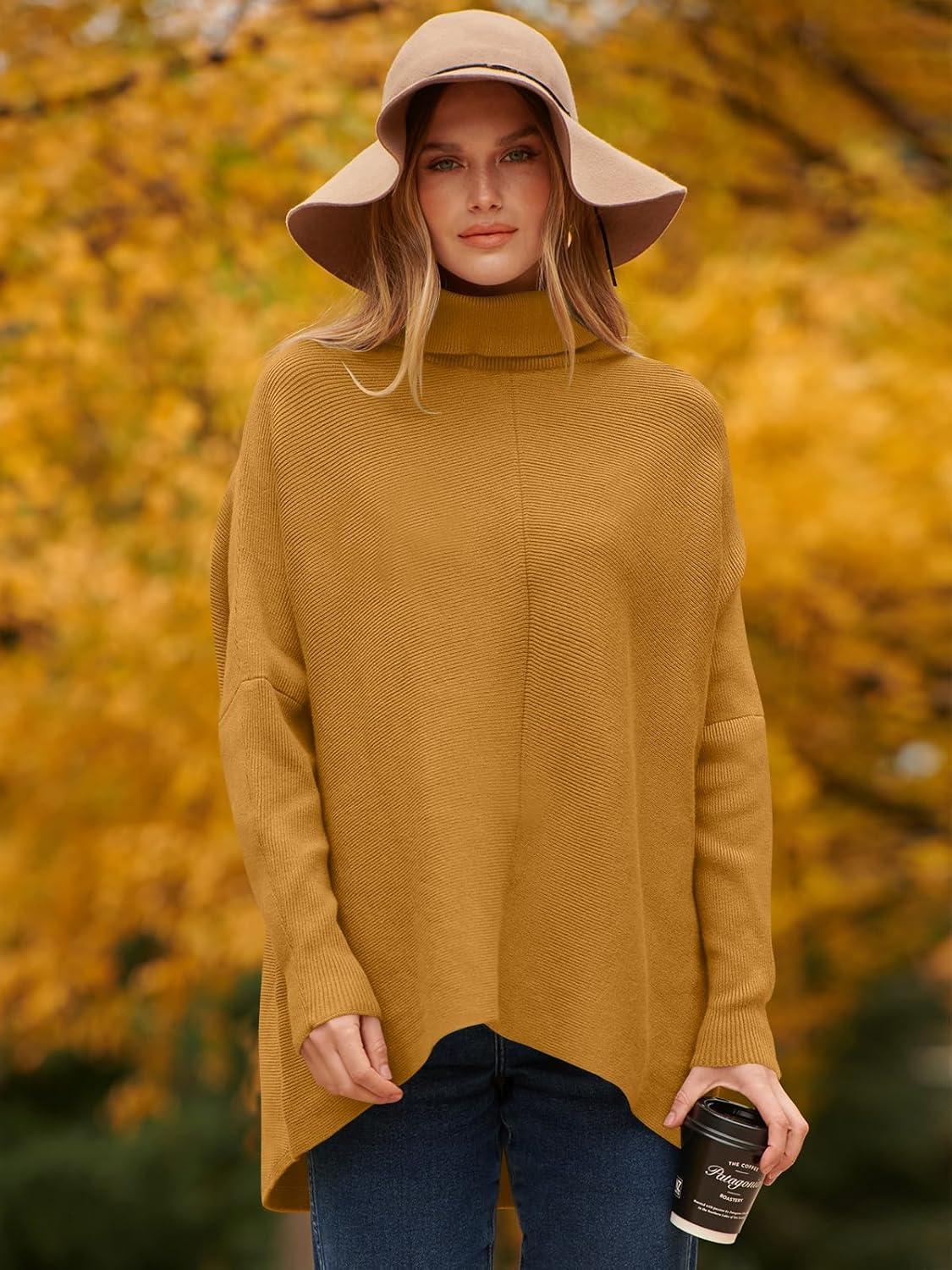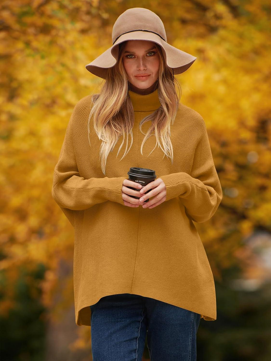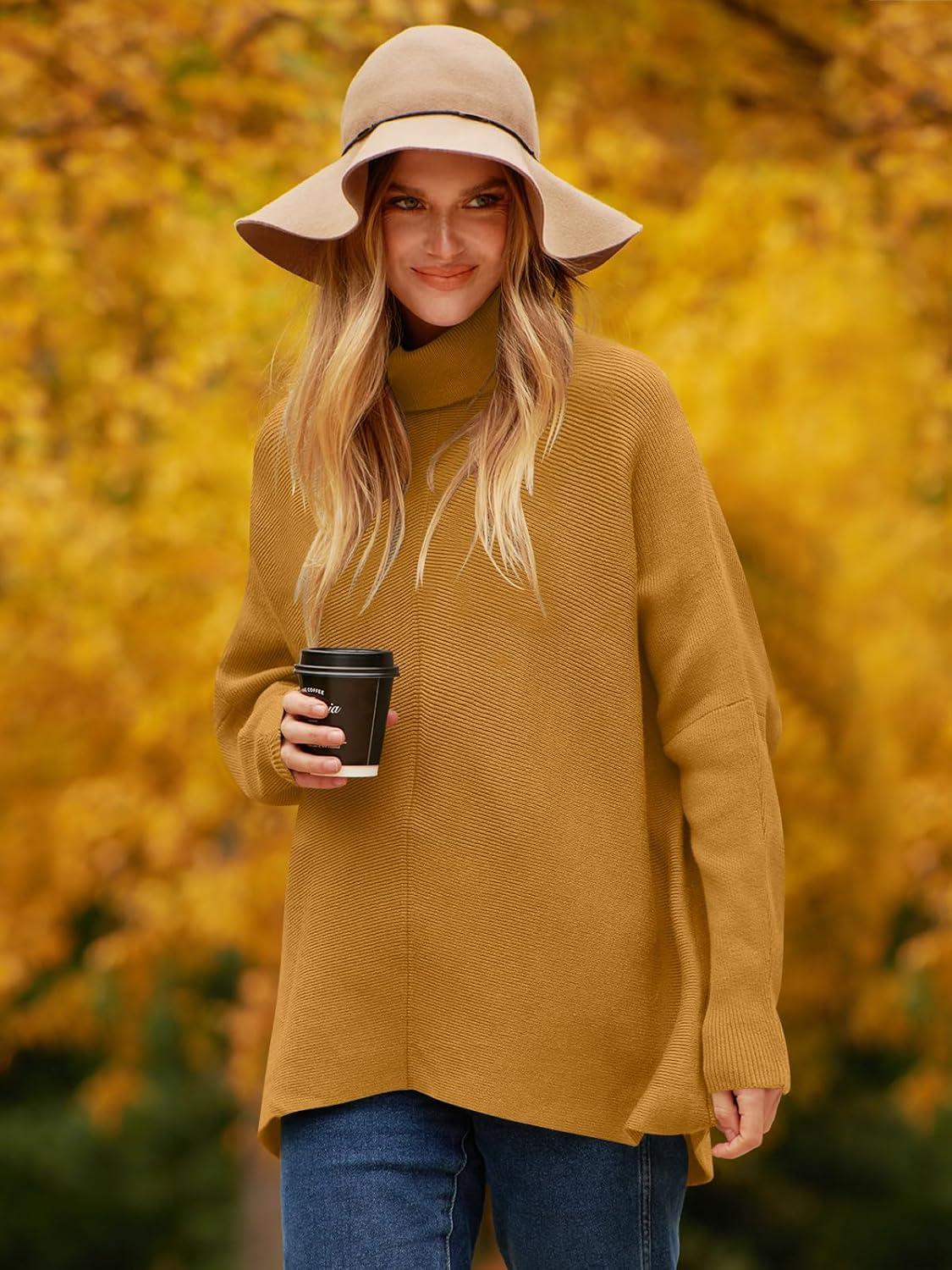 ANRABESS Womens Oversized Turtleneck Batwing Long Sleeve Casual Cozy Baggy Knit Pullover Tunic Sweater 2025 Fall Outfits(Camel)