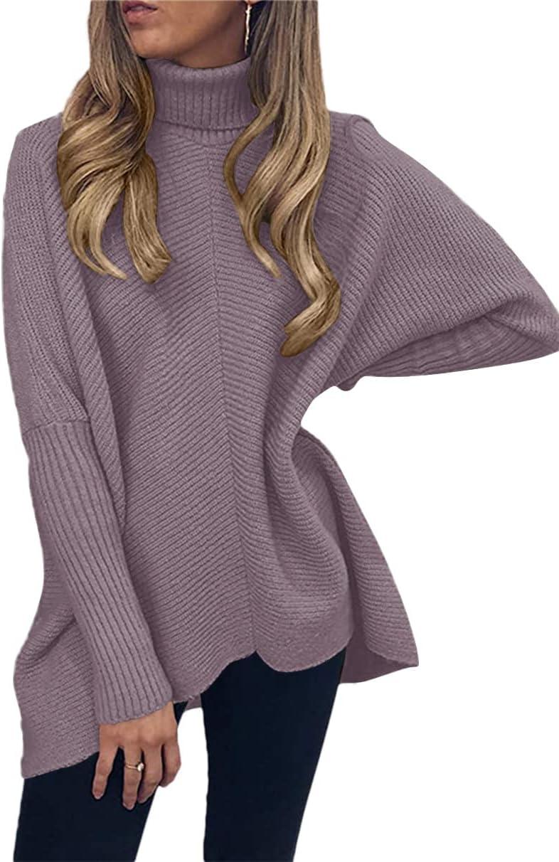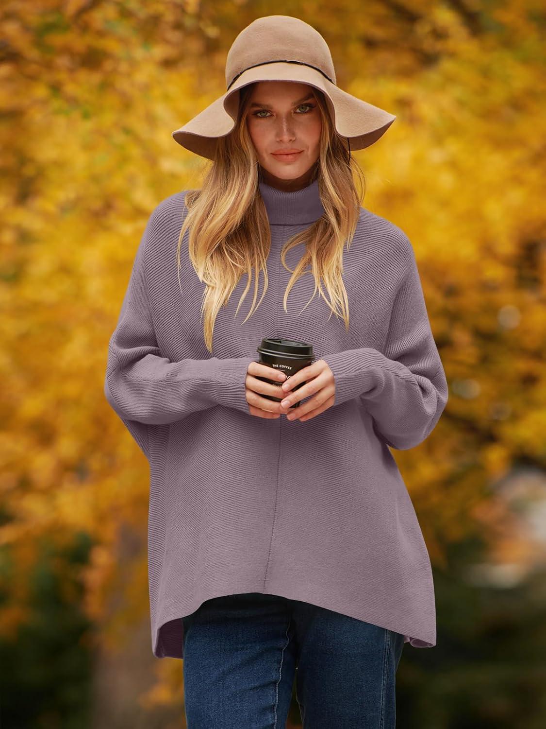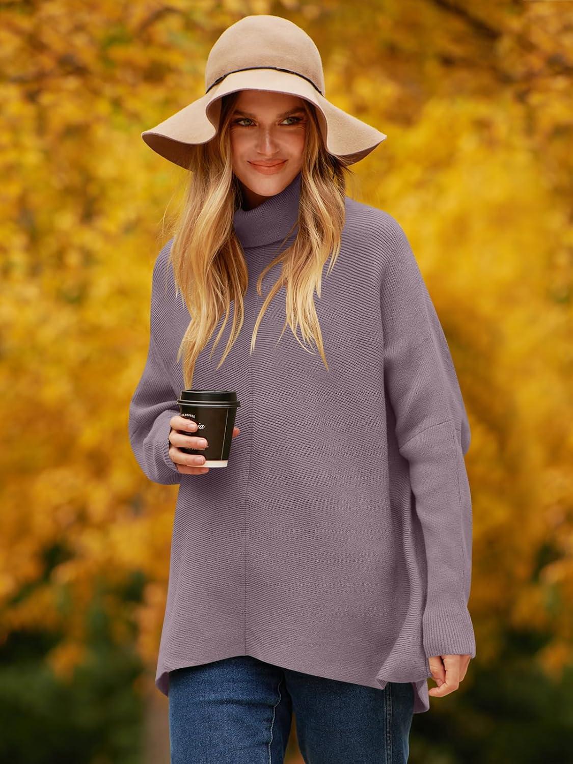 ANRABESS Womens Oversized Turtleneck Batwing Long Sleeve Casual Cozy Baggy Knit Pullover Tunic Sweater 2025 Fall Outfits(Dark Purple)