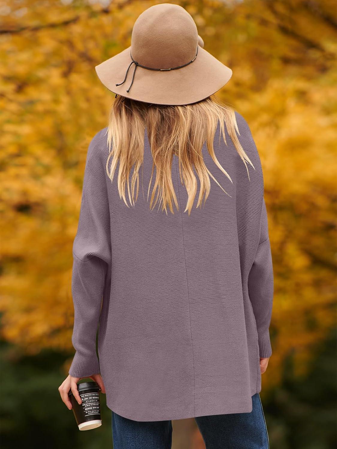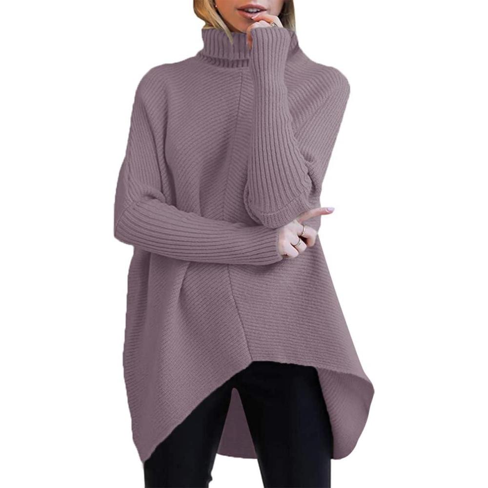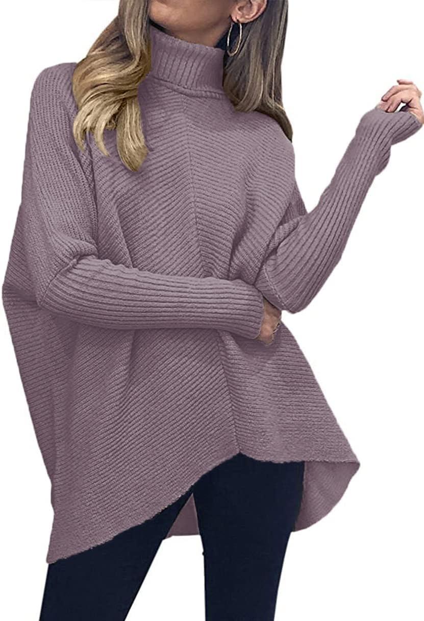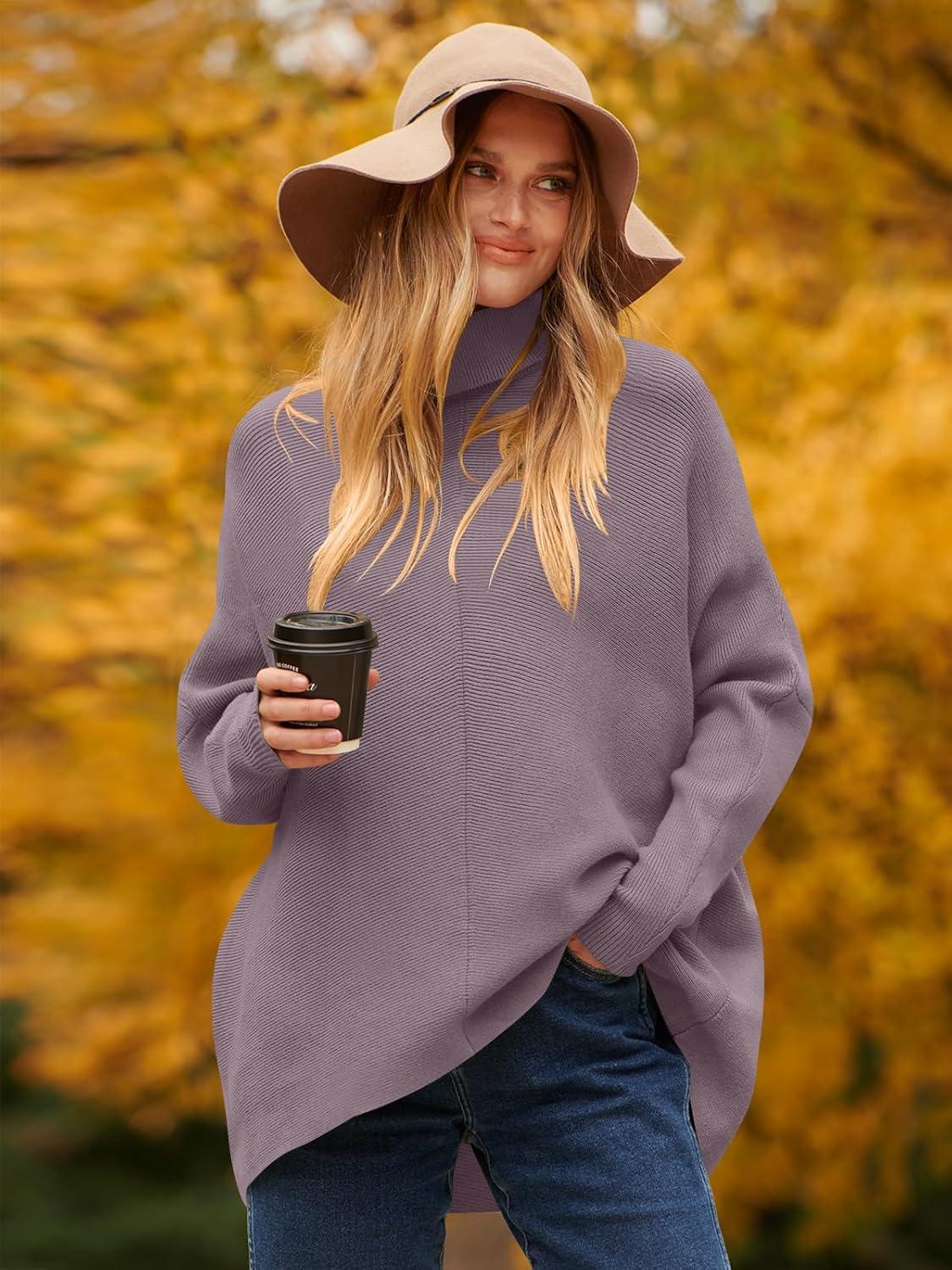 ANRABESS Womens Oversized Turtleneck Batwing Long Sleeve Casual Cozy Baggy Knit Pullover Tunic Sweater 2025 Fall Outfits(Dark Purple)
