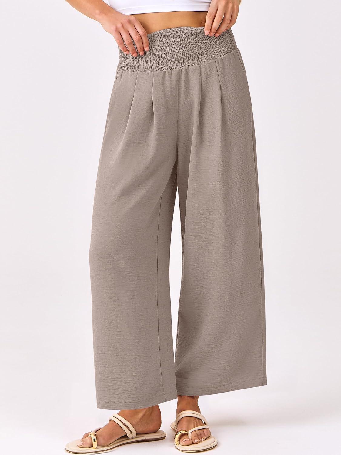 ANRABESS Womens Pants Wide Leg High Waisted Palazzo Pants Summer Flowy Beach Lounge Casual Trousers with Pockets(Wheet)