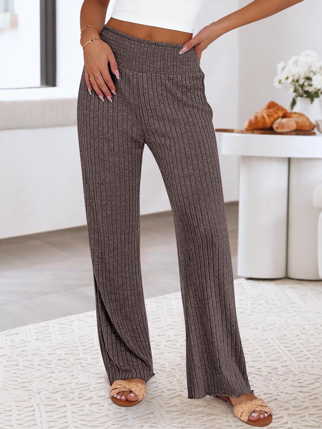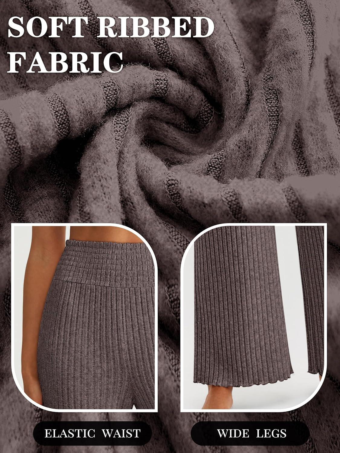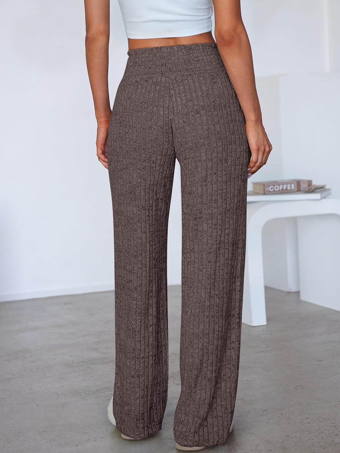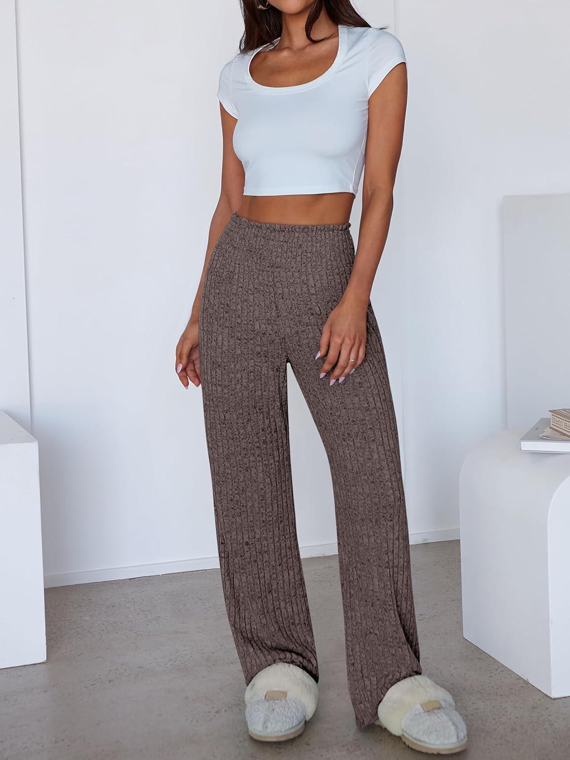 ANRABESS Womens Ribbed Knit Lounge Pajama Pants Casual Elastic High Waist Loose Wide Leg Pants 2025 Fall Comfy PJ Bottoms(Deep Brown)