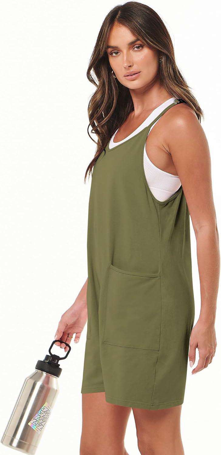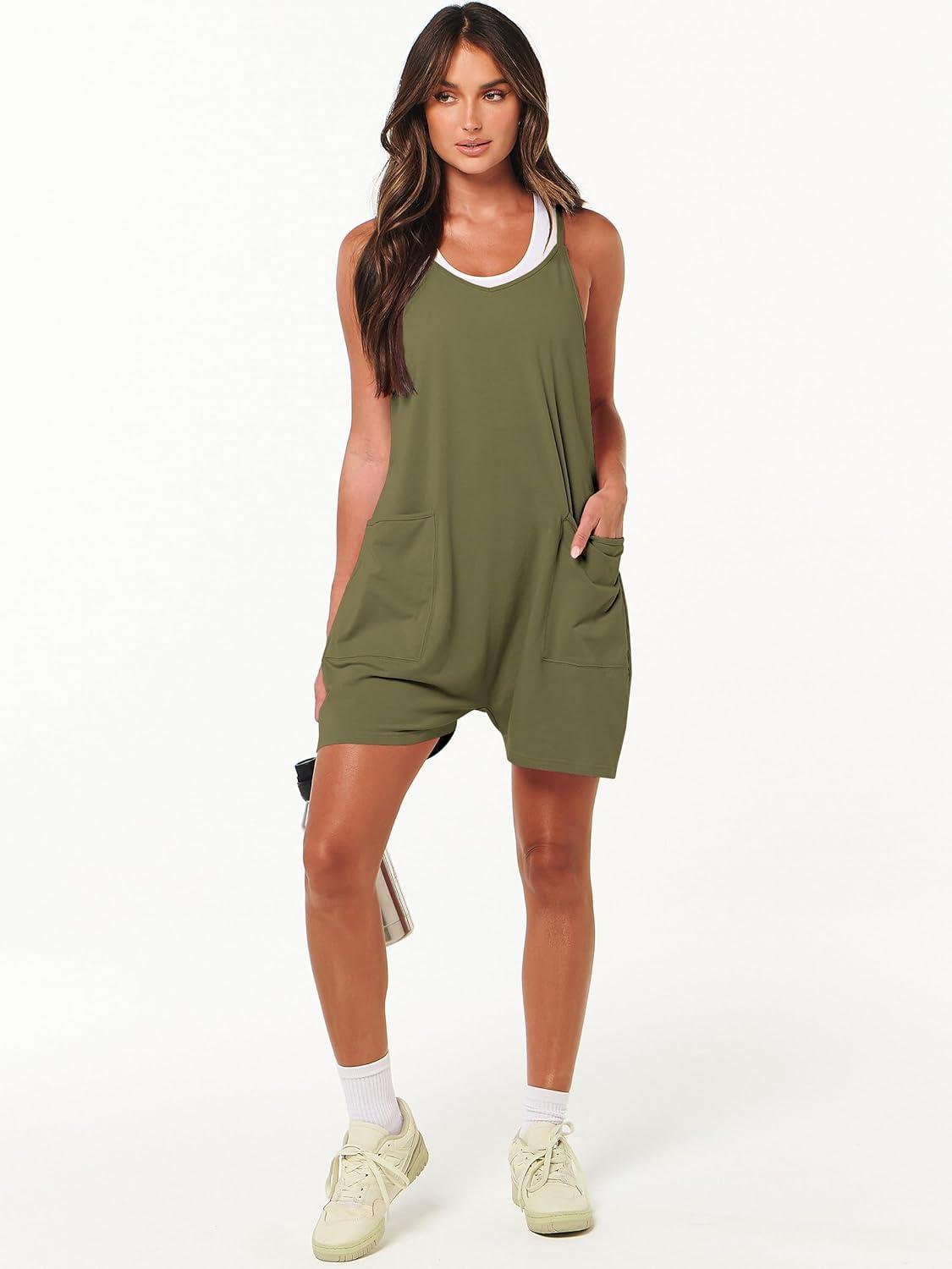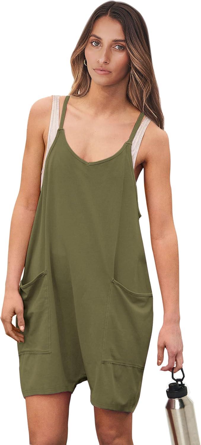 ANRABESS Womens Rompers Summer Casual Loose Sleeveless Overalls Spaghetti Strap Shorts Jumpsuit 2025 Beach Vacation Outfits(Army Green)