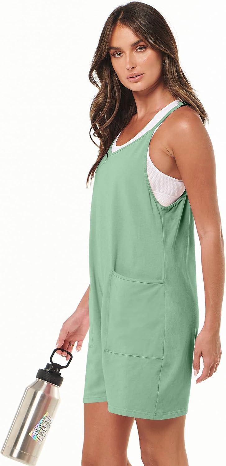 ANRABESS Womens Rompers Summer Casual Loose Sleeveless Overalls Spaghetti Strap Shorts Jumpsuit 2025 Beach Vacation Outfits(Light Green)
