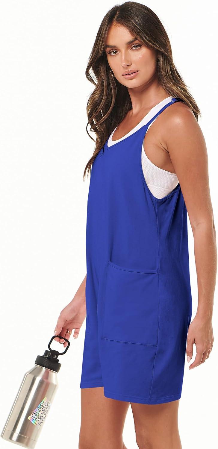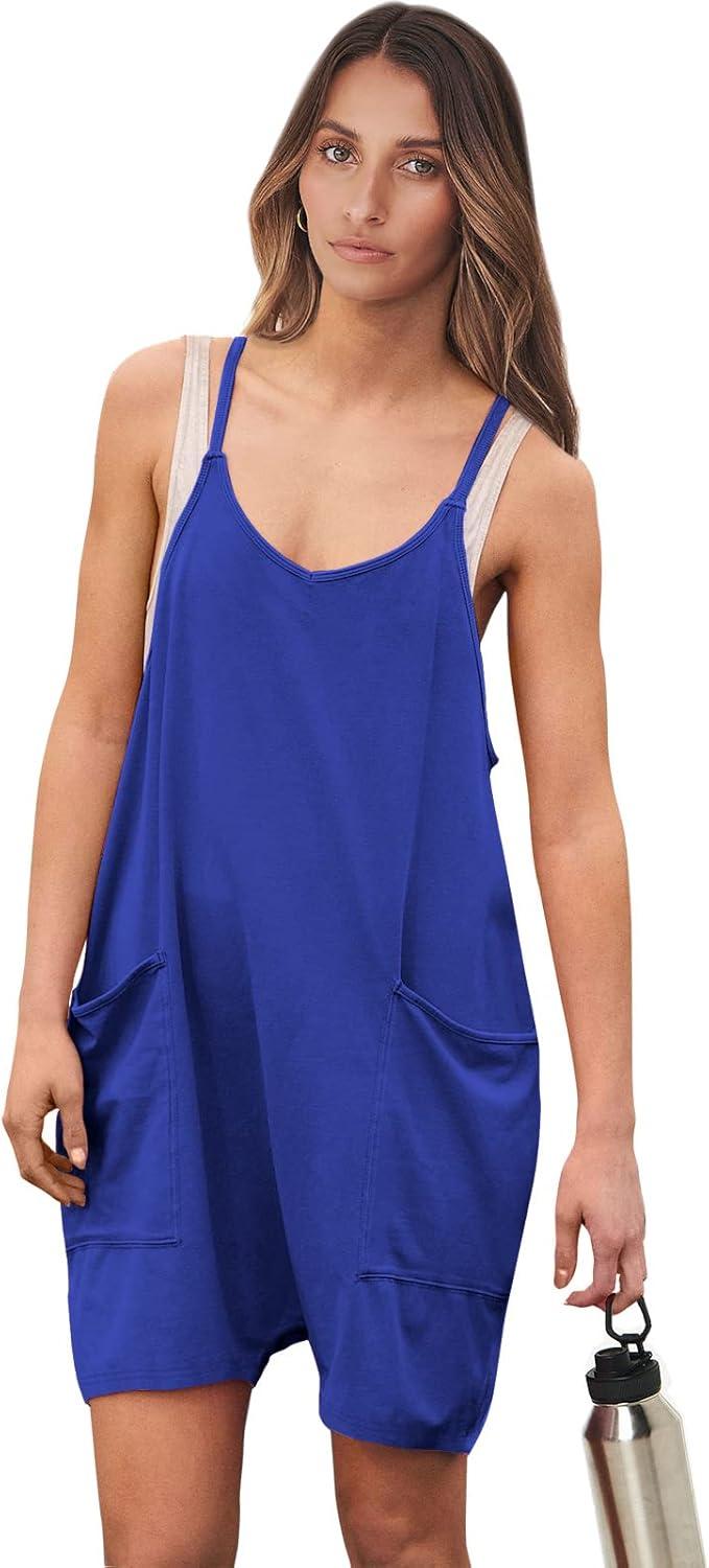 ANRABESS Womens Rompers Summer Casual Loose Sleeveless Overalls Spaghetti Strap Shorts Jumpsuit 2025 Beach Vacation Outfits(Royal Blue)