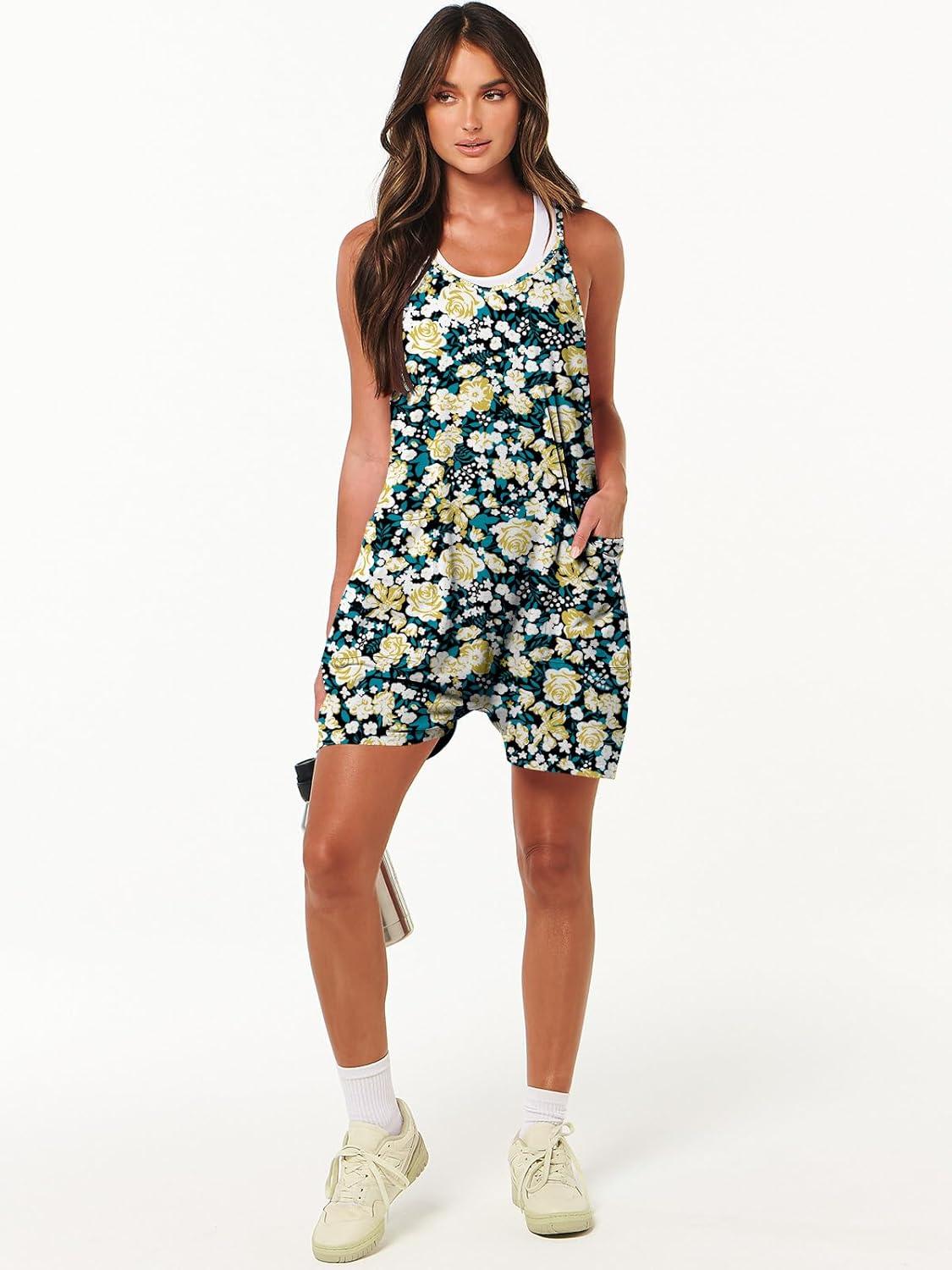 ANRABESS Womens Rompers Summer Casual Loose Sleeveless Overalls Spaghetti Strap Shorts Jumpsuit 2025 Beach Vacation Outfits(Yellow Rose)