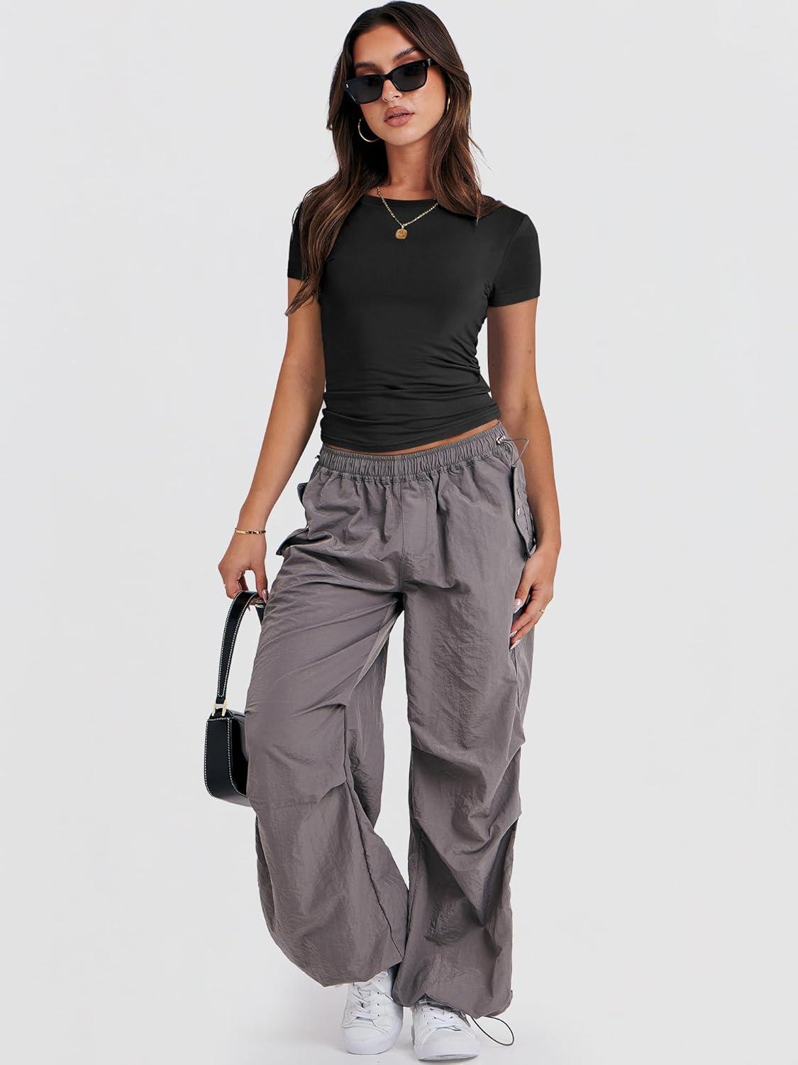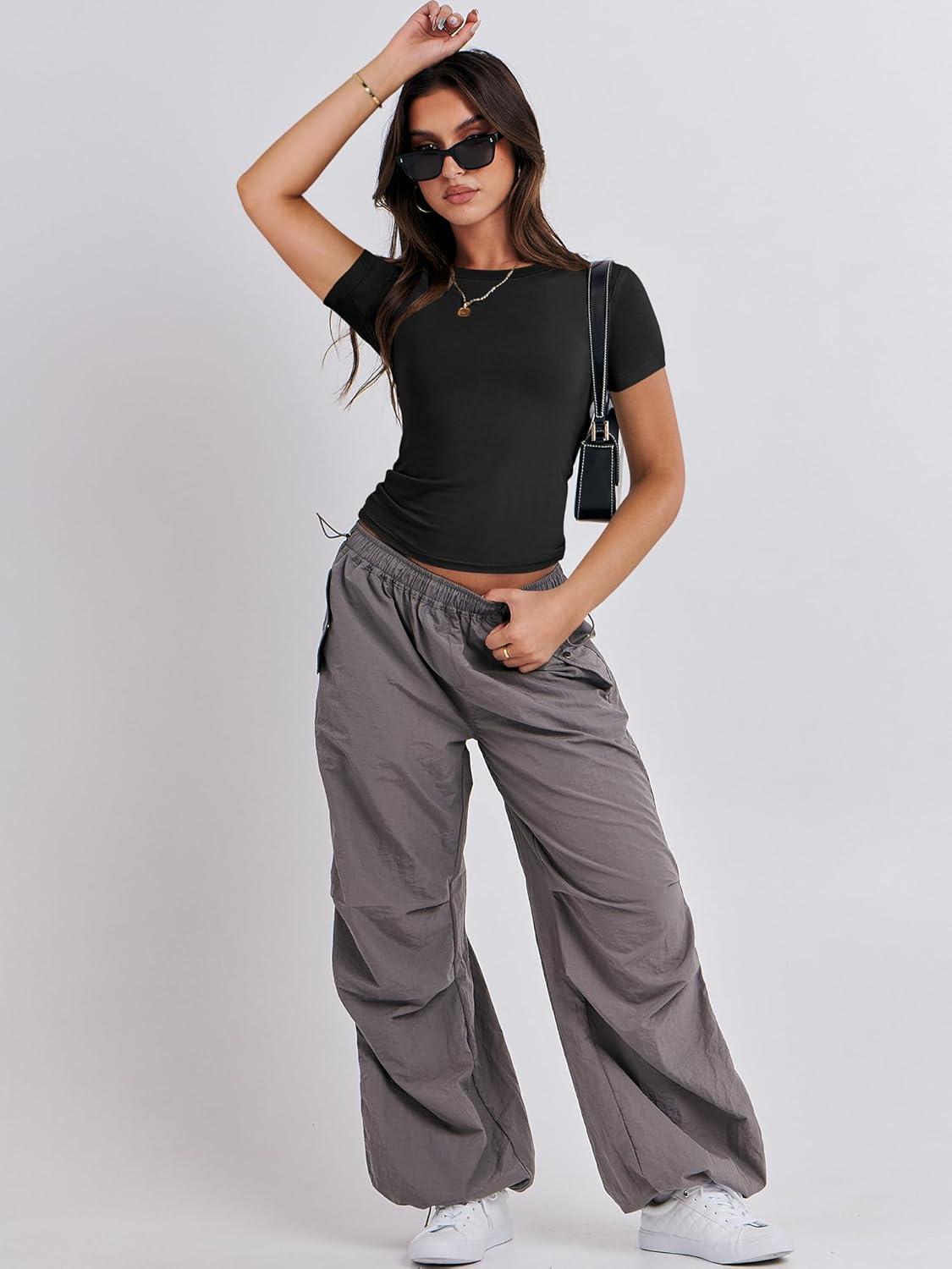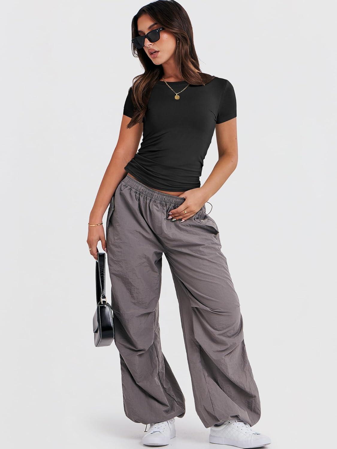 ANRABESS Women’s Short Sleeve Summer T Shirts Crew Neck Slim Fit Basic Tees 2026 Crop Tops Y2k Clothes Outfits(Black)