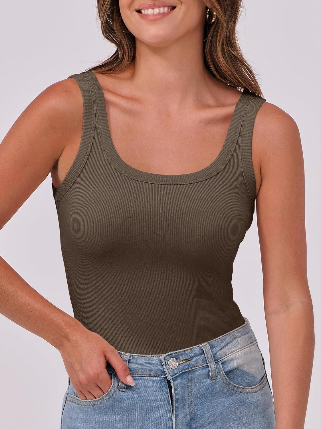 ANRABESS Womens Sleeveless Scoop Neck Tank Top Ribbed Fitted Summer Basic Slim Cute Tops 2025(Brown)