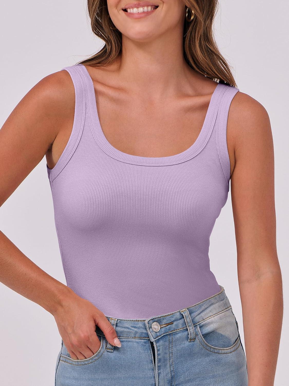 ANRABESS Womens Sleeveless Scoop Neck Tank Top Ribbed Fitted Summer Basic Slim Cute Tops 2025(Light Purple)