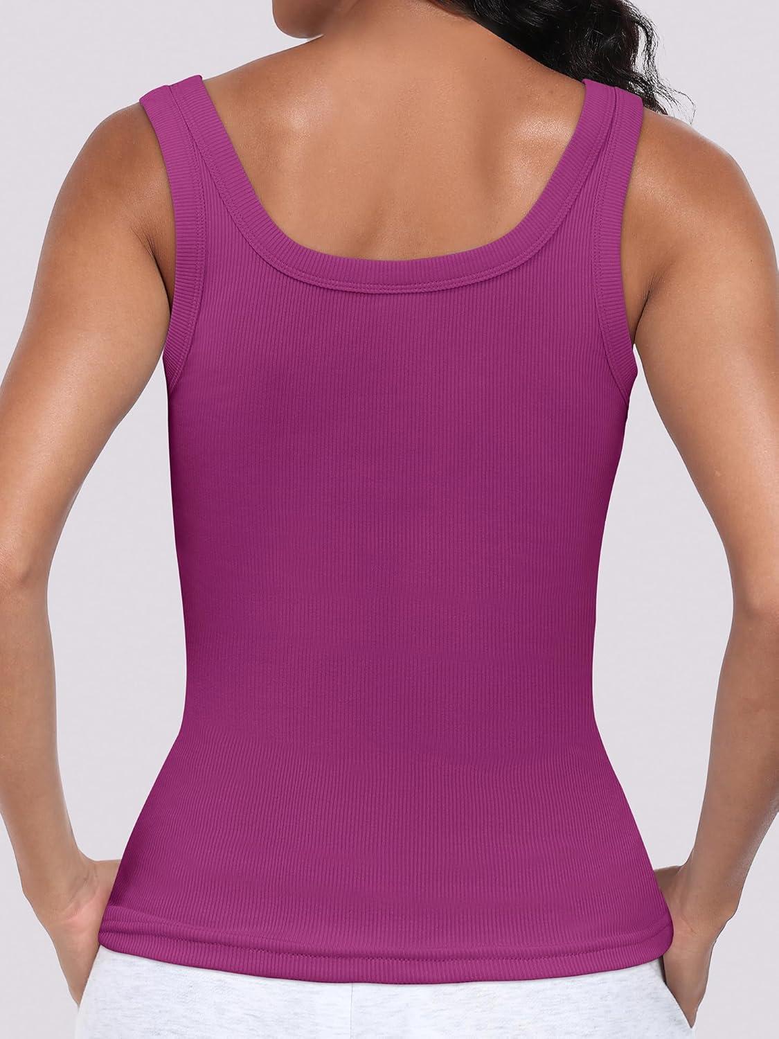 ANRABESS Womens Sleeveless Scoop Neck Tank Top Ribbed Fitted Summer Basic Slim Cute Tops 2025(Purple)