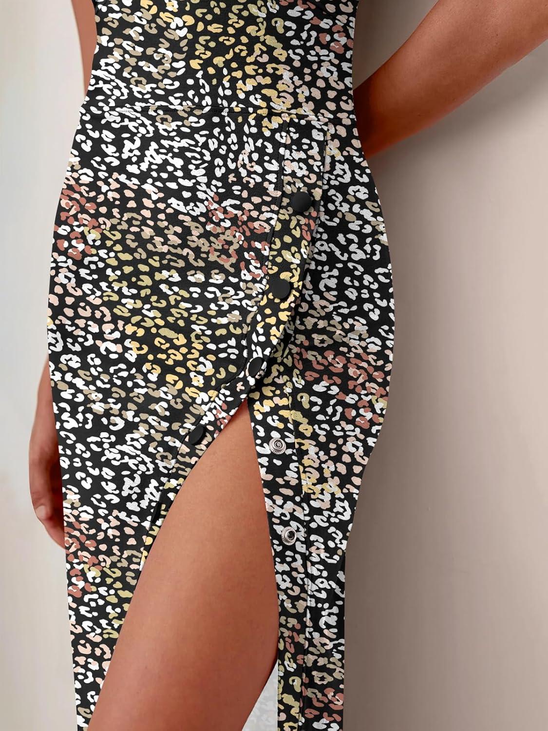 ANRABESS Womens Slim Fit Tank Dresses Sexy Button Slit Bodycon Business Work Sundresses 2025 Summer Trendy Club Midi Dress(Multicolored Printed)