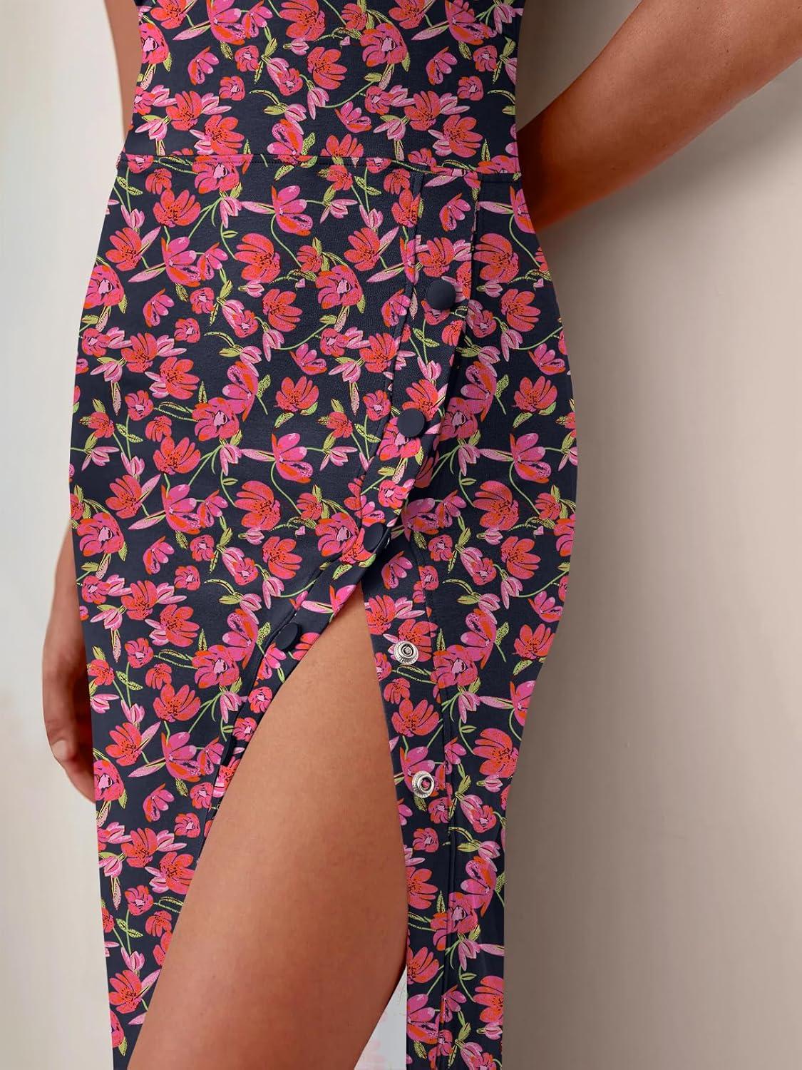 ANRABESS Womens Slim Fit Tank Dresses Sexy Button Slit Bodycon Business Work Sundresses 2025 Summer Trendy Club Midi Dress(Rose Red Flower)