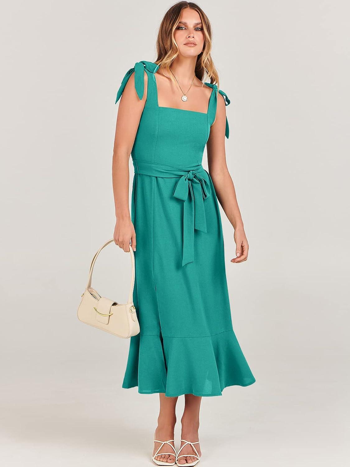 ANRABESS Women’s Square Neck Ruffle Split Midi Elegant Formal Wedding Guest Cocktail Bridesmaid Graduation Party Dresses(Lake Green)