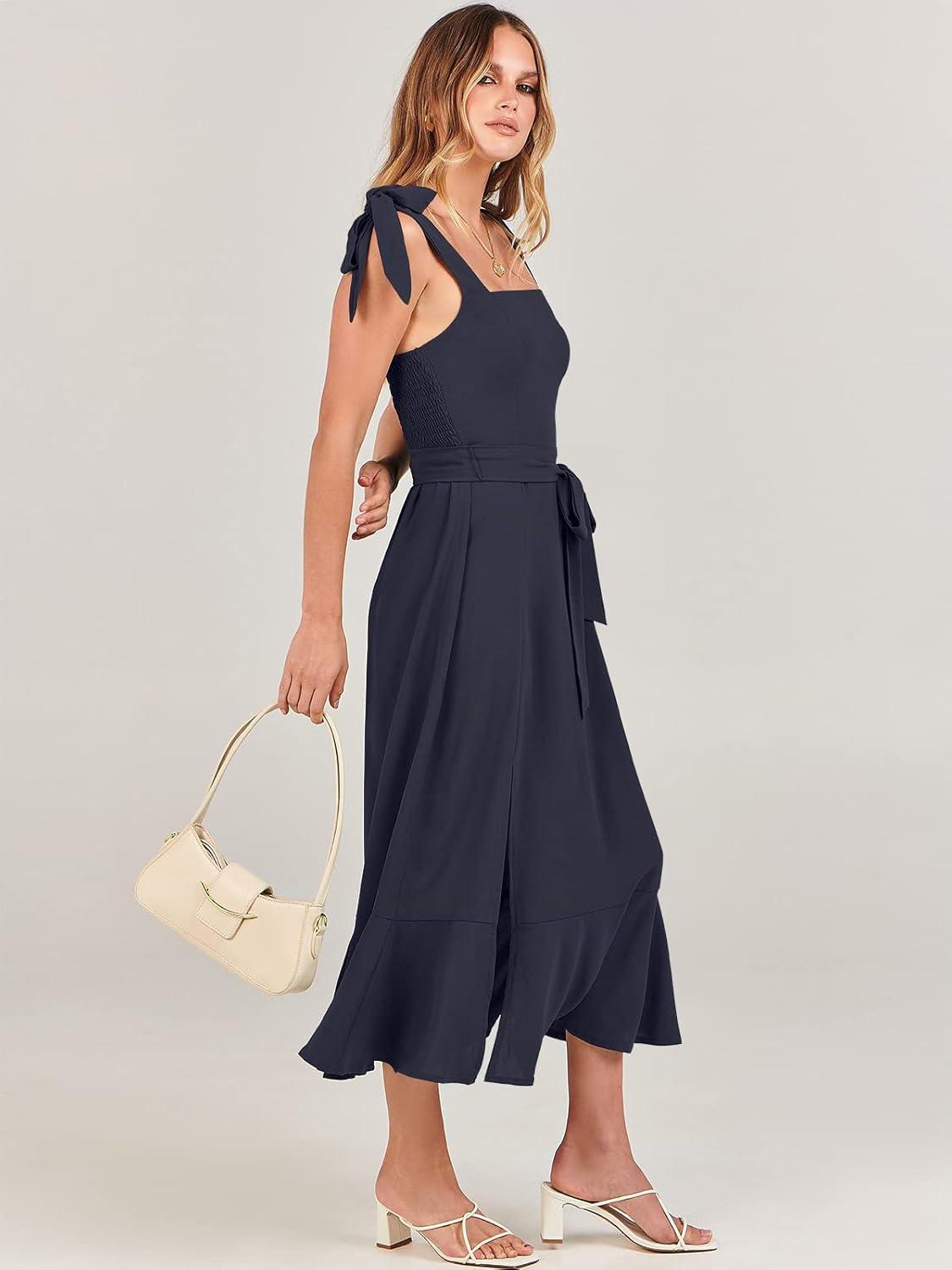 ANRABESS Women’s Square Neck Ruffle Split Midi Elegant Formal Wedding Guest Cocktail Bridesmaid Graduation Party Dresses(Navy Blue)