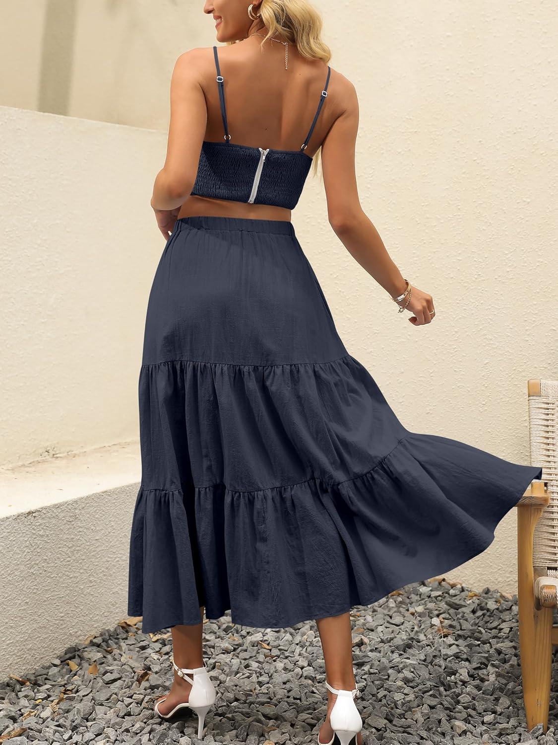 Be the first to review “ANRABESS Women’s Summer Boho Flowy Swing Tiered A-Line Maxi Skirt 2025 Fashion Trendy Elastic Waist Pleated Long Beach Dress(Dark Navy Blue)”