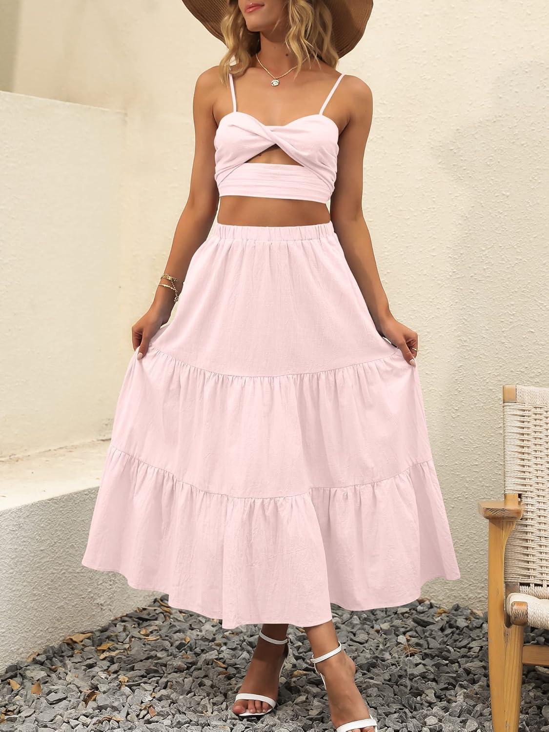 Be the first to review “ANRABESS Women’s Summer Boho Flowy Swing Tiered A-Line Maxi Skirt 2025 Fashion Trendy Elastic Waist Pleated Long Beach Dress(Light Pink)”