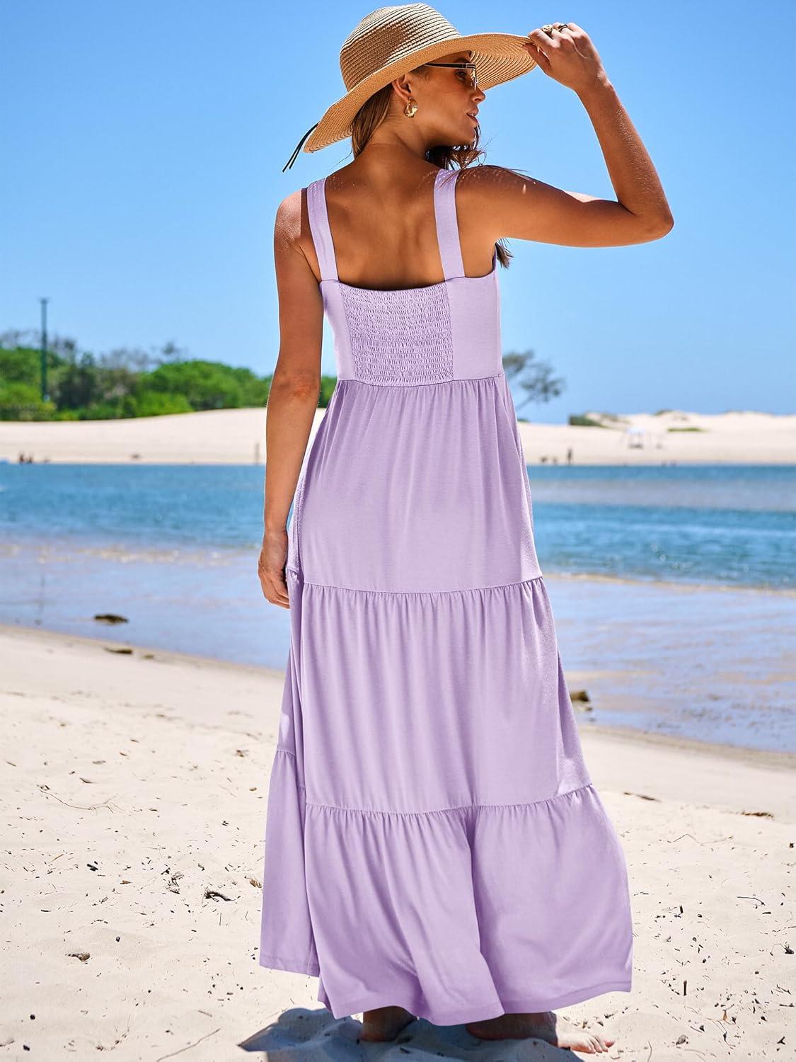 ANRABESS Women’s Summer Casual Long Maxi Beach Vacation Dresses Sleeveless Square Neck Flowy Tiered Sun Dress with Pockets(Purple)