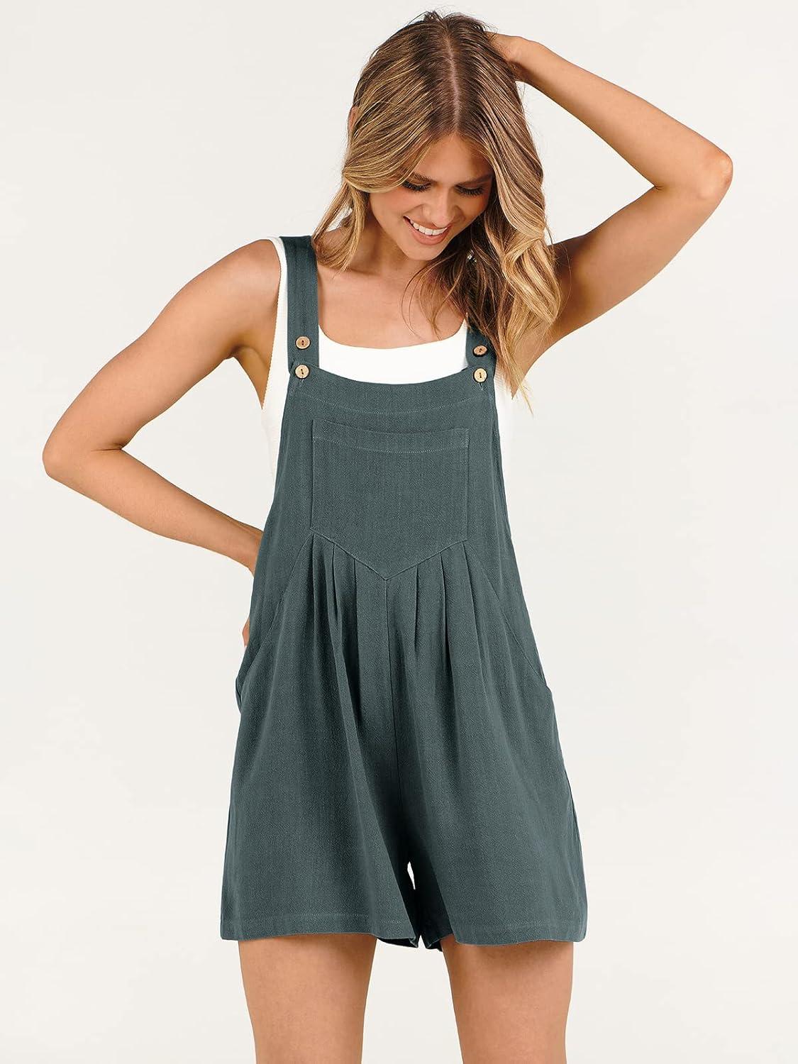 ANRABESS Women’s Summer Casual Rompers Bib Short Overalls Loose Linen Jumpsuit Beach Outfits Travel Vacation Clothes(Gray Blue)