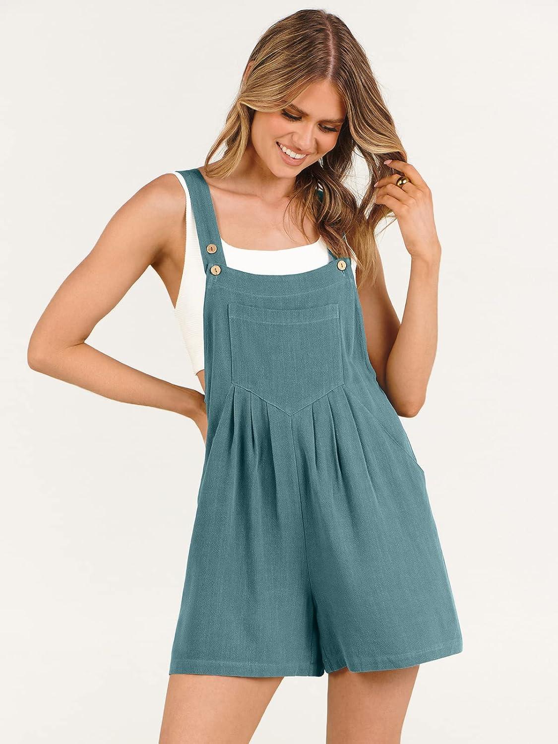 ANRABESS Women’s Summer Casual Rompers Bib Short Overalls Loose Linen Jumpsuit Beach Outfits Travel Vacation Clothes(Lake Blue)
