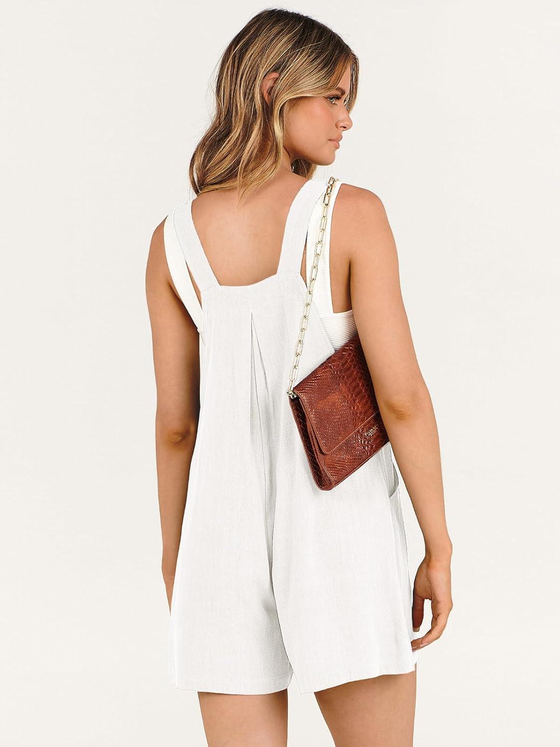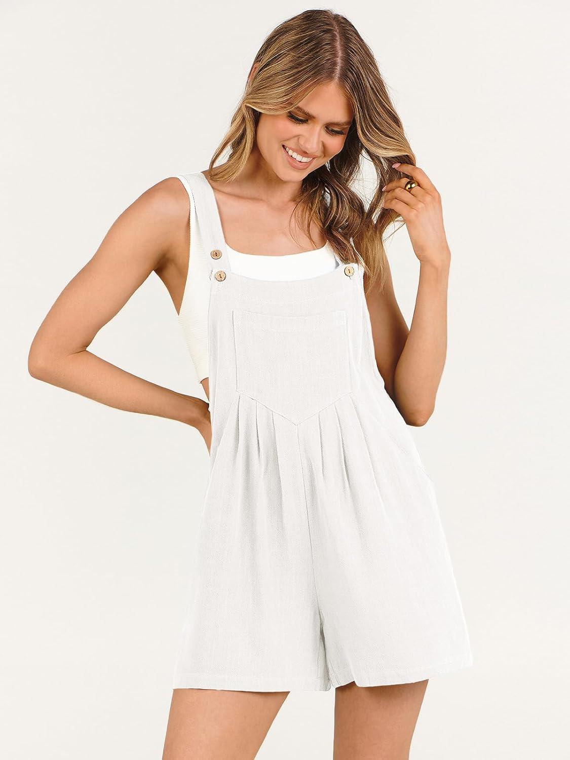 ANRABESS Women’s Summer Casual Rompers Bib Short Overalls Loose Linen Jumpsuit Beach Outfits Travel Vacation Clothes(White)