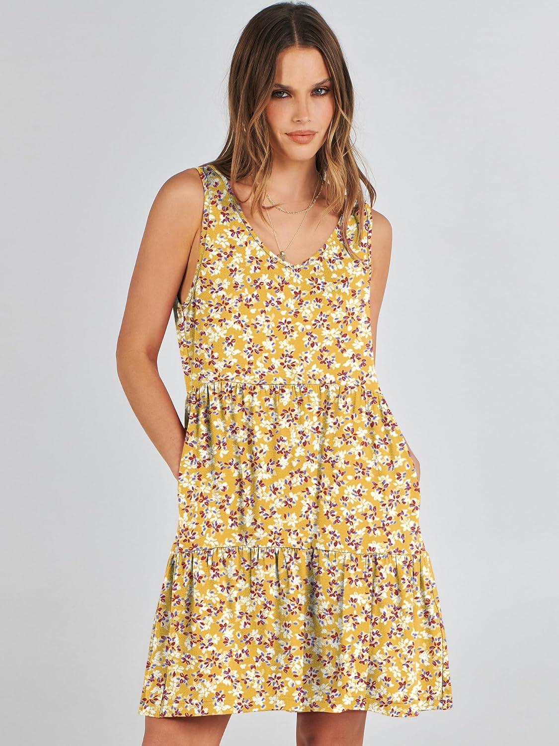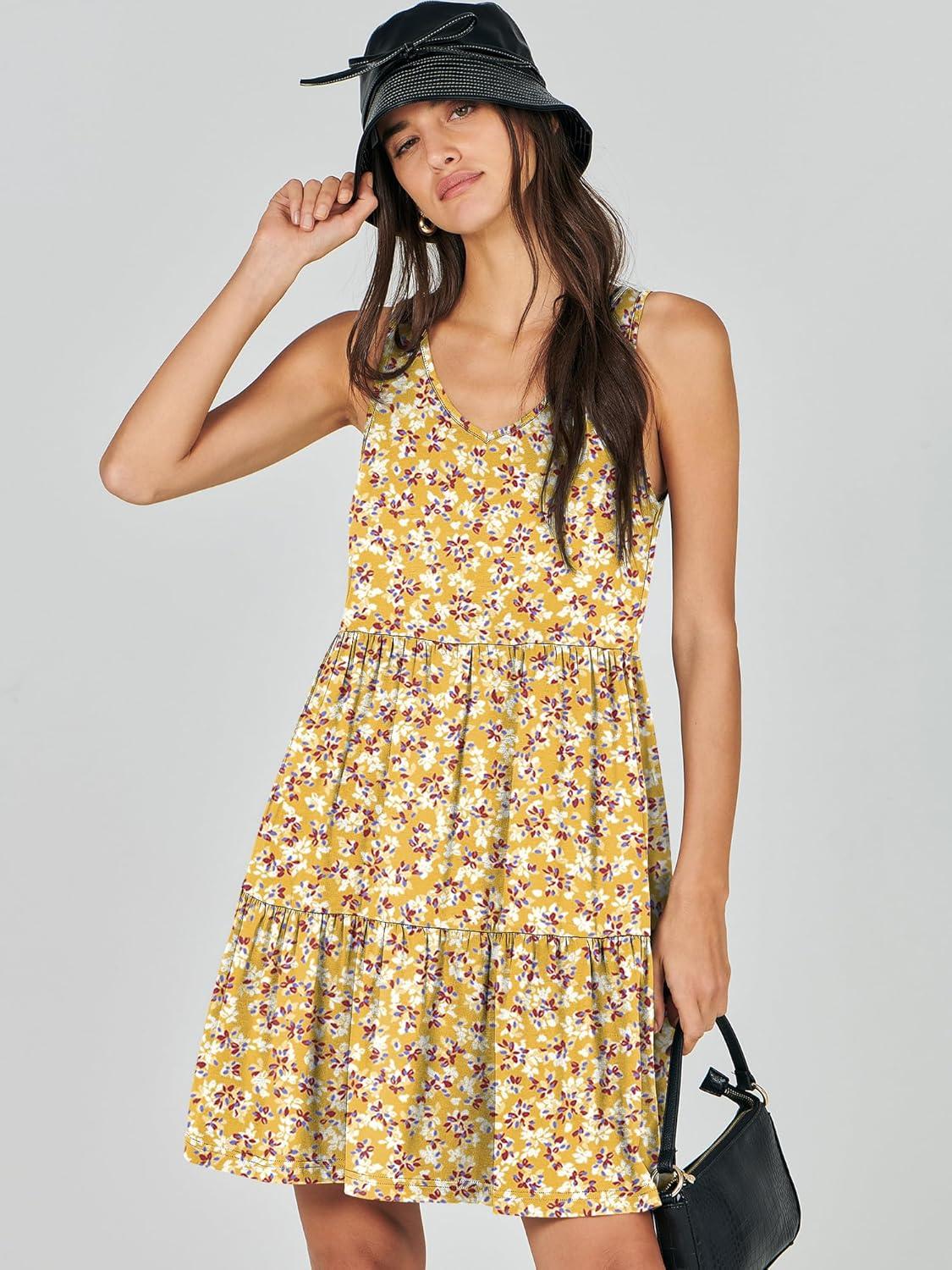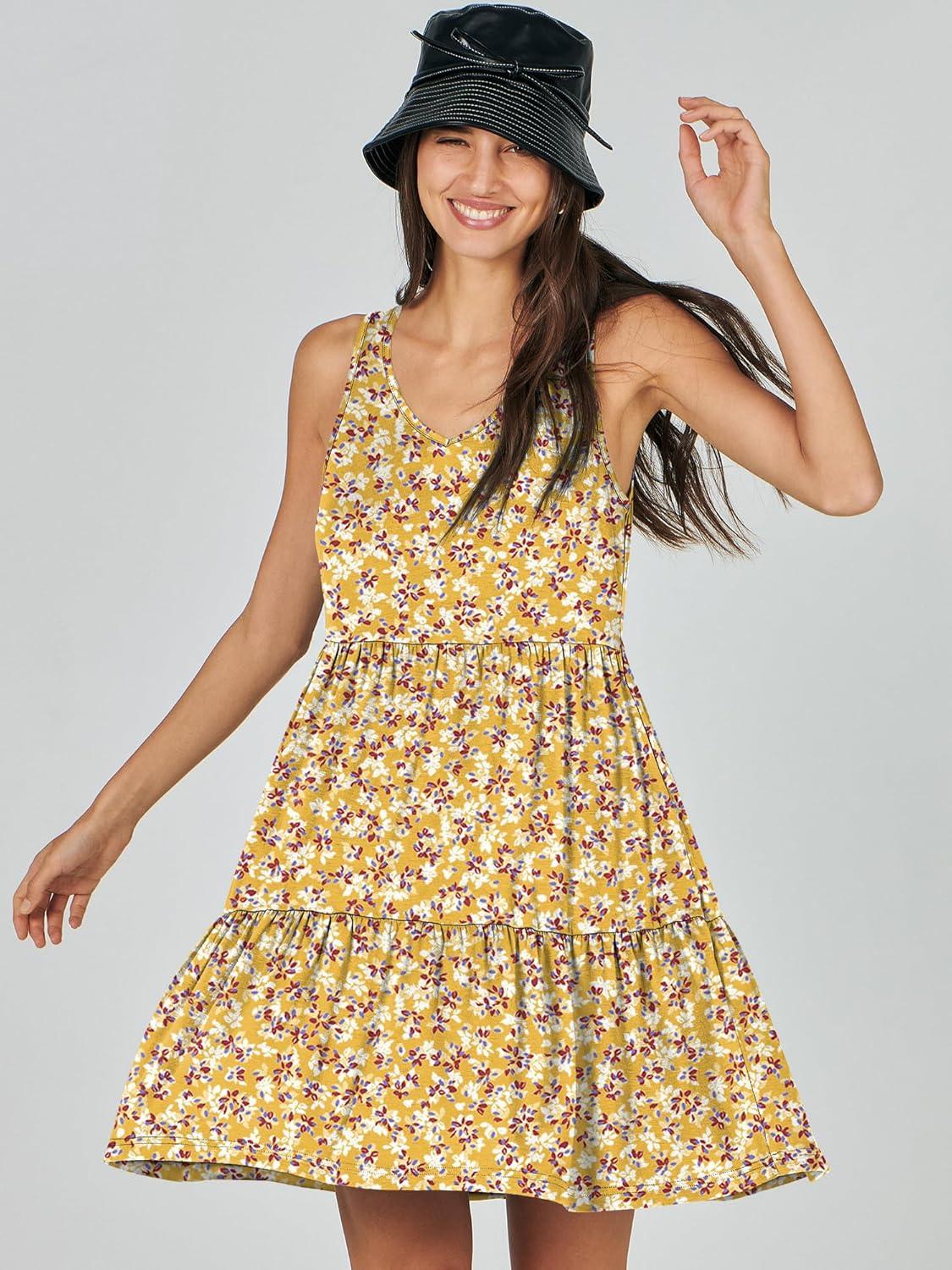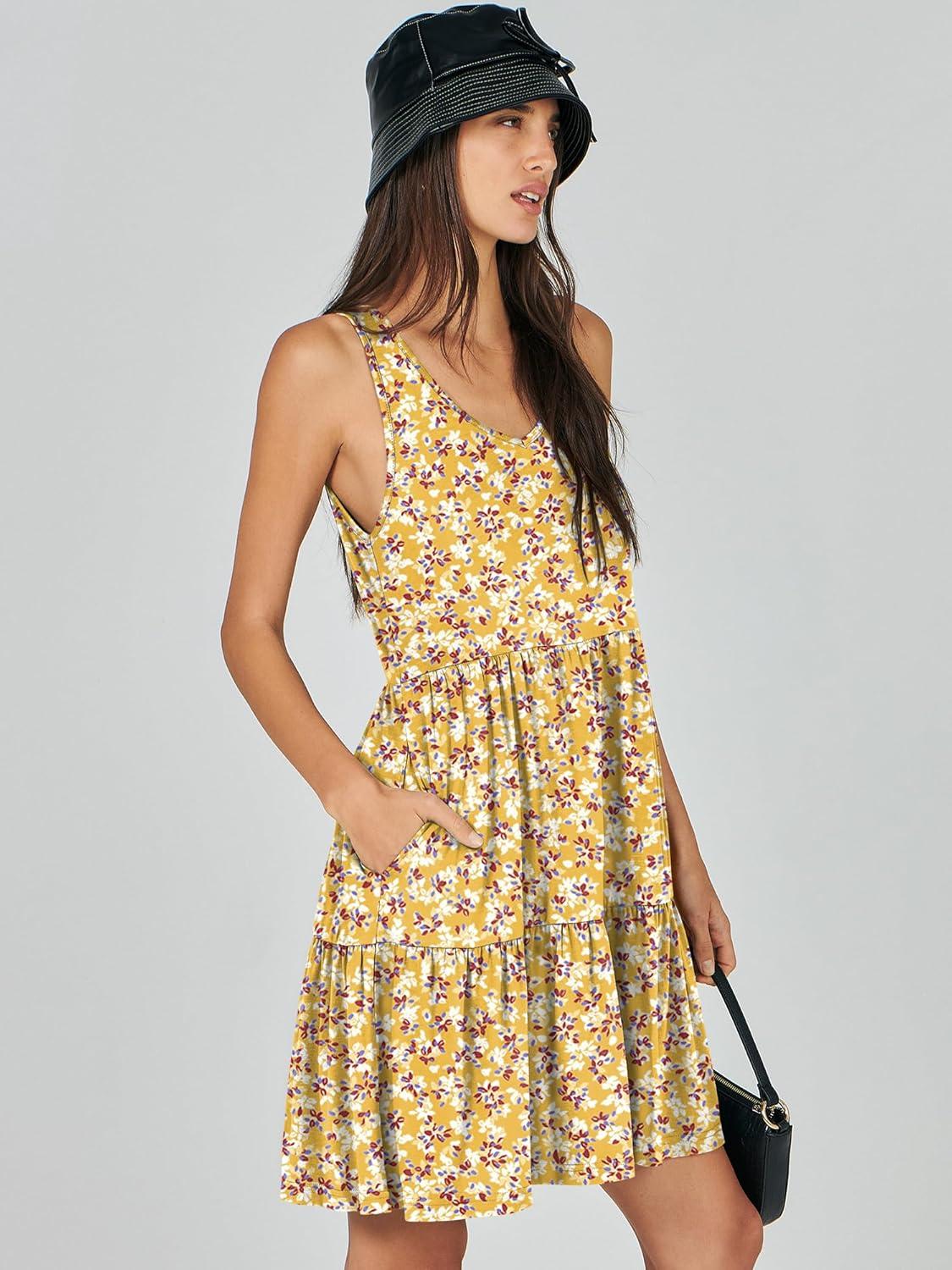 ANRABESS Womens Summer Casual Tank Dress Sleeveless V Neck T Shirt Sundress Flowy Tiered Swing Mini Beach Vacation Dresses(Yellow Floral)