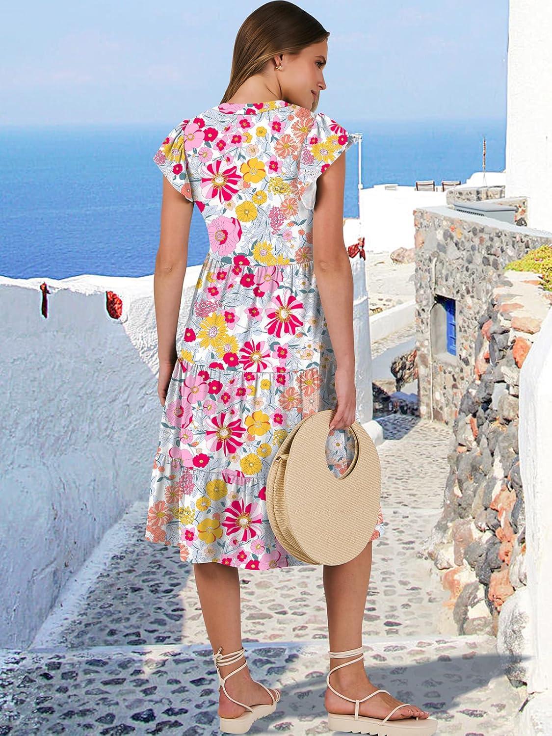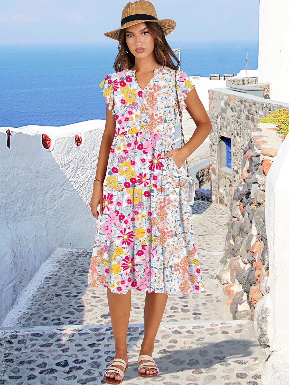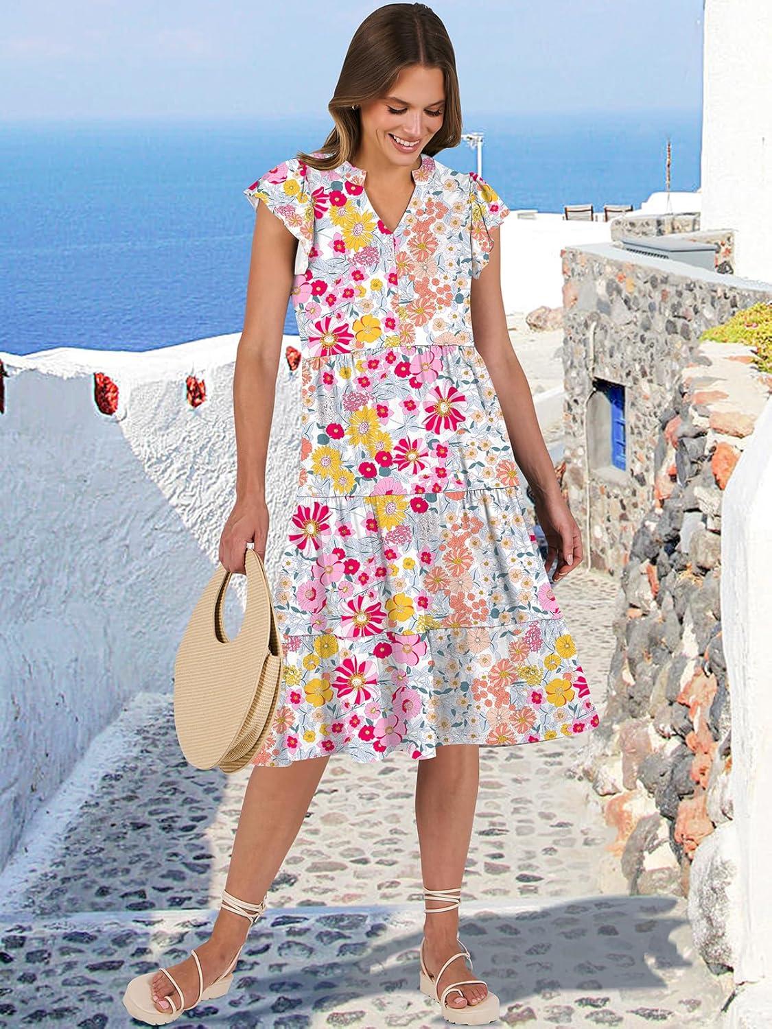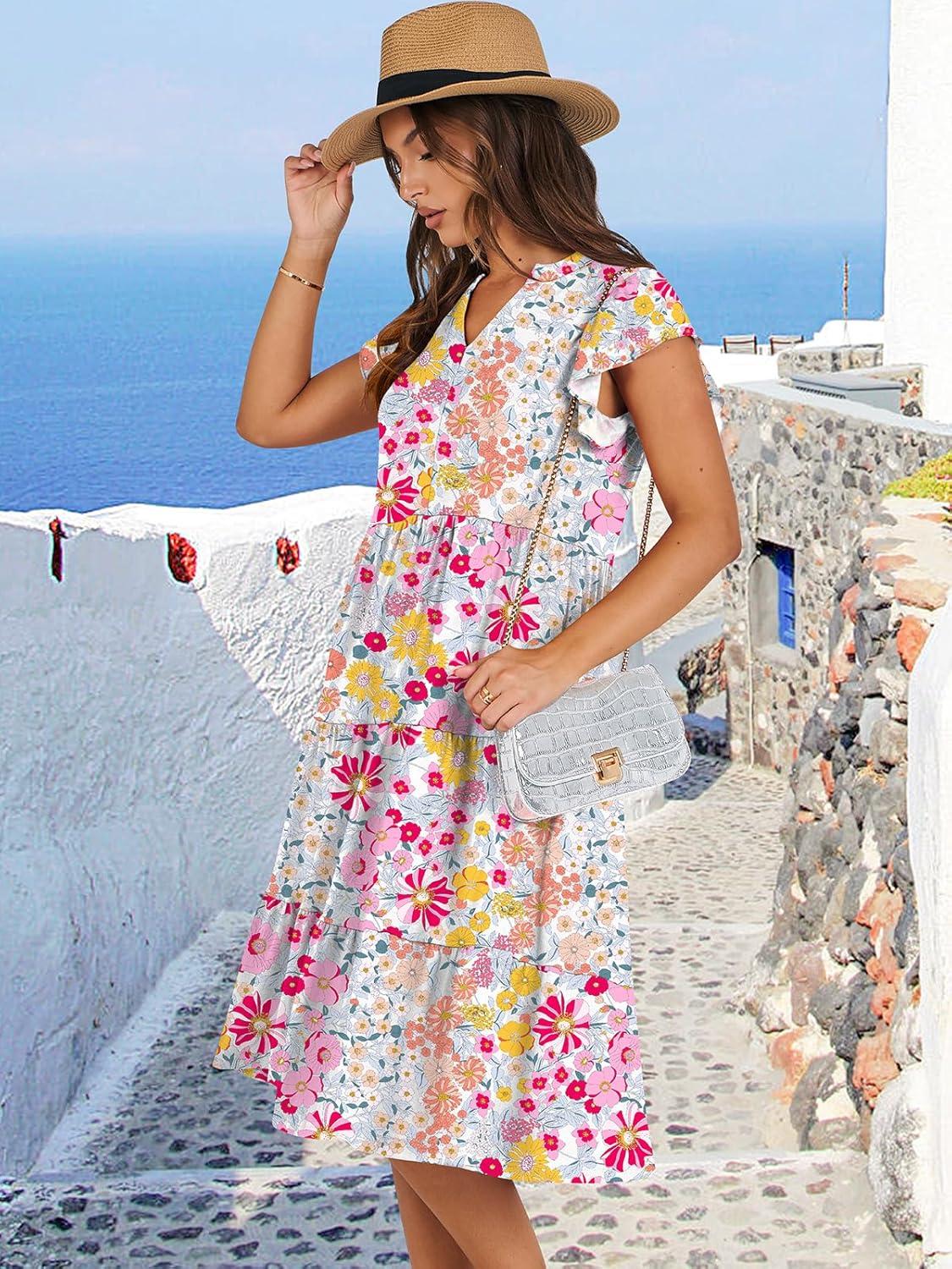 ANRABESS Womens Summer Dress Ruffle Sleeve V Neck Midi Dresses Fashion Casual Fit Flowy Tiered Boho Beach Vacation Sundress(Multicolour Floral)