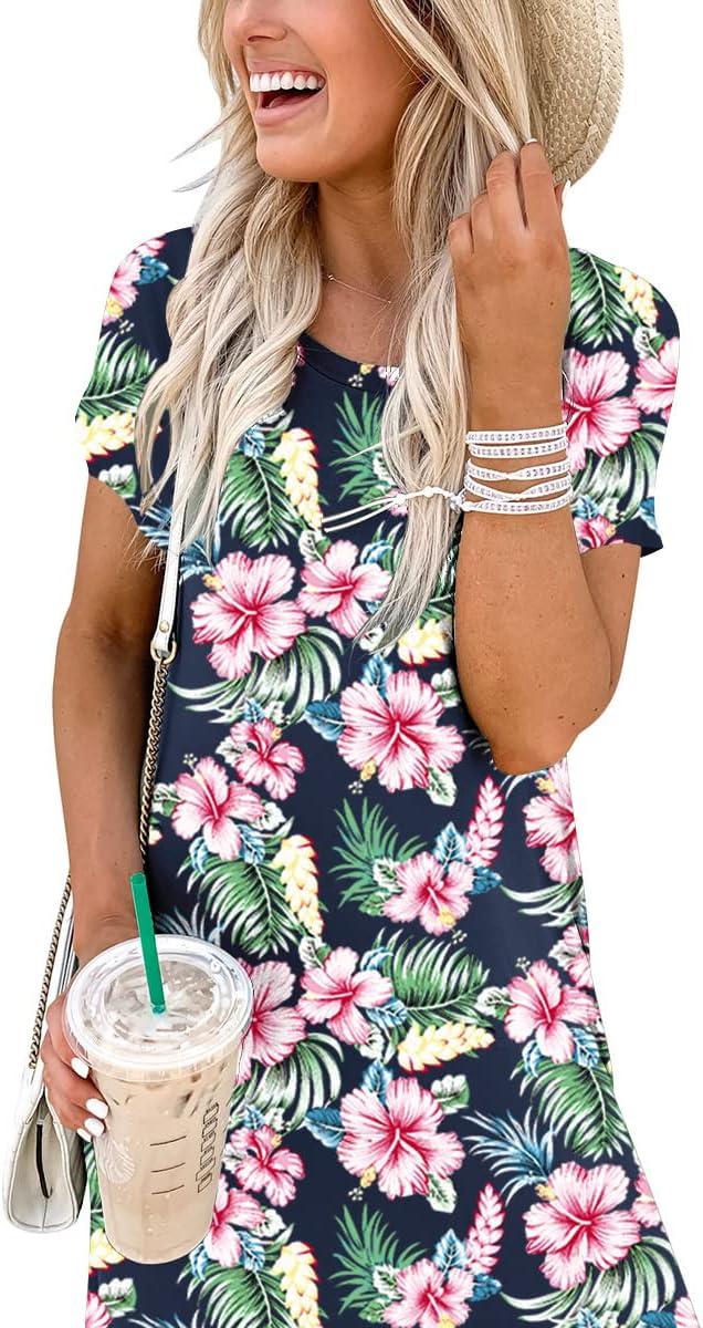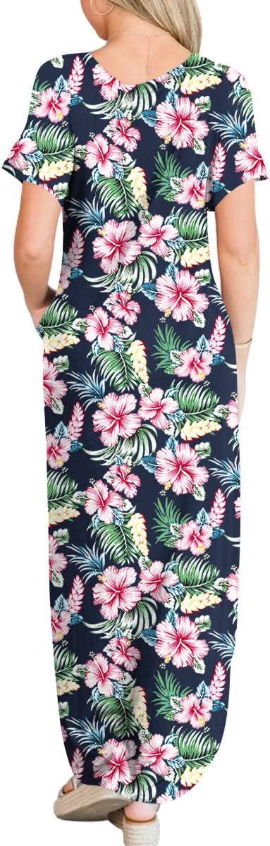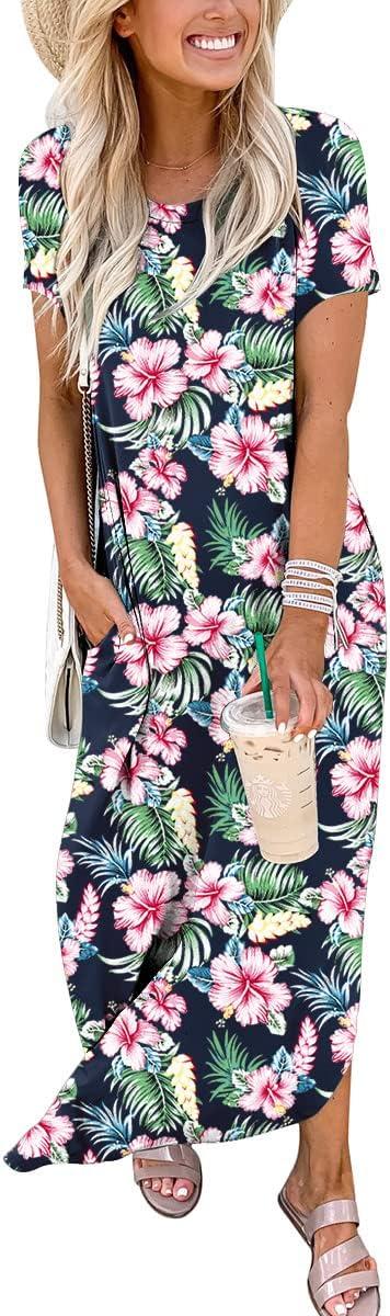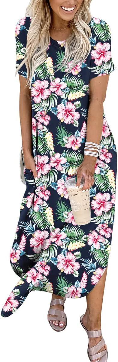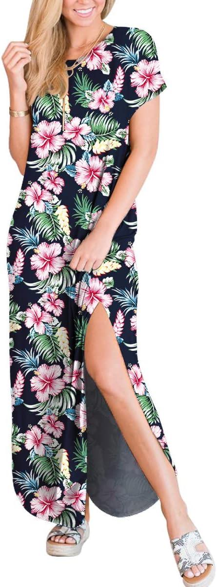 ANRABESS Womens Summer Maxi Dress Short Sleeve Casual Loose Long T Shirt Dresses Split Vacation Beach Sundress Travel Outfits(Floral Green Pink)