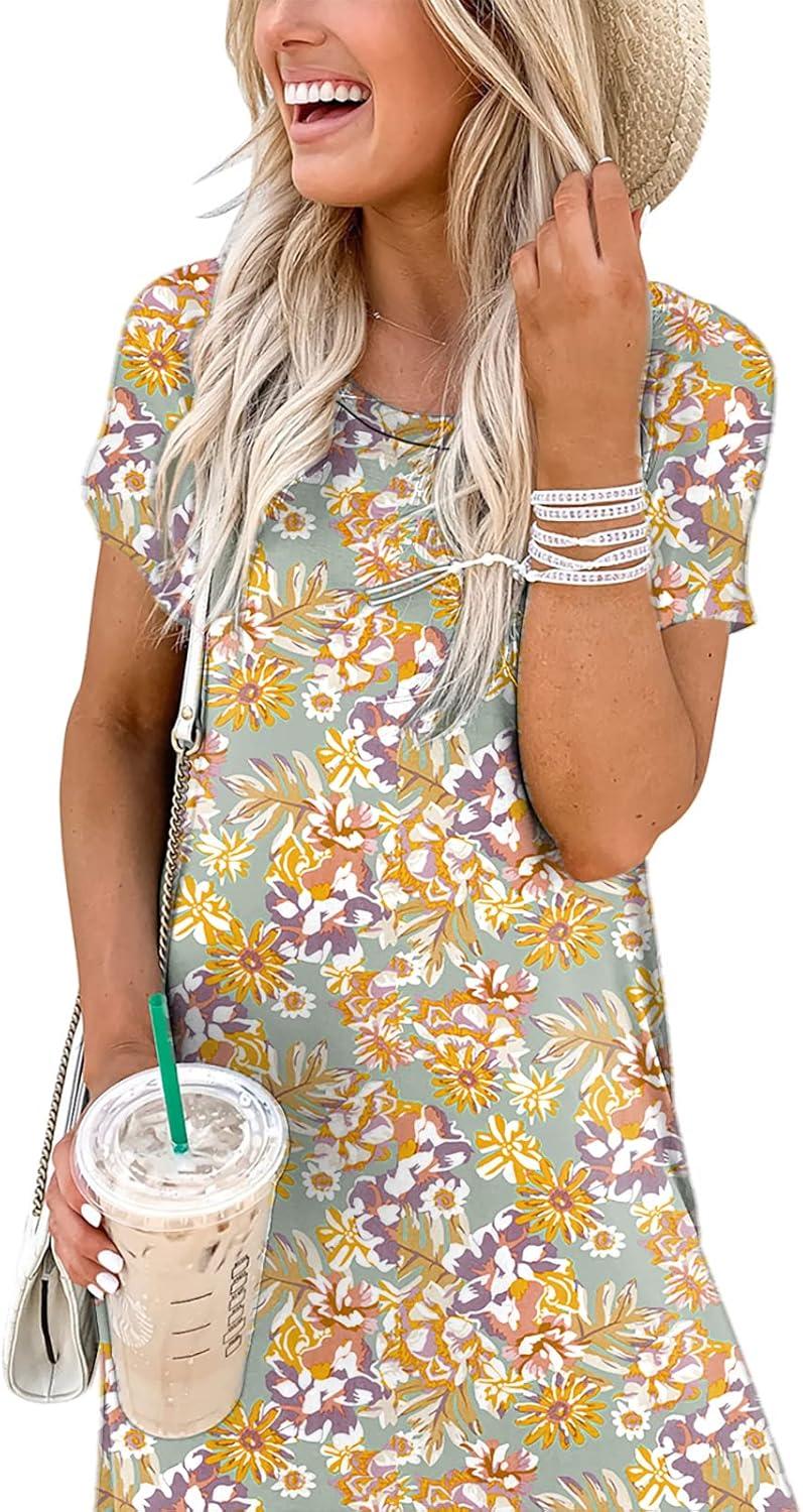 ANRABESS Womens Summer Maxi Dress Short Sleeve Casual Loose Long T Shirt Dresses Split Vacation Beach Sundress Travel Outfits(Floral Yellow)