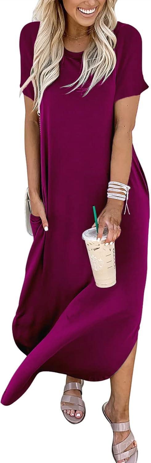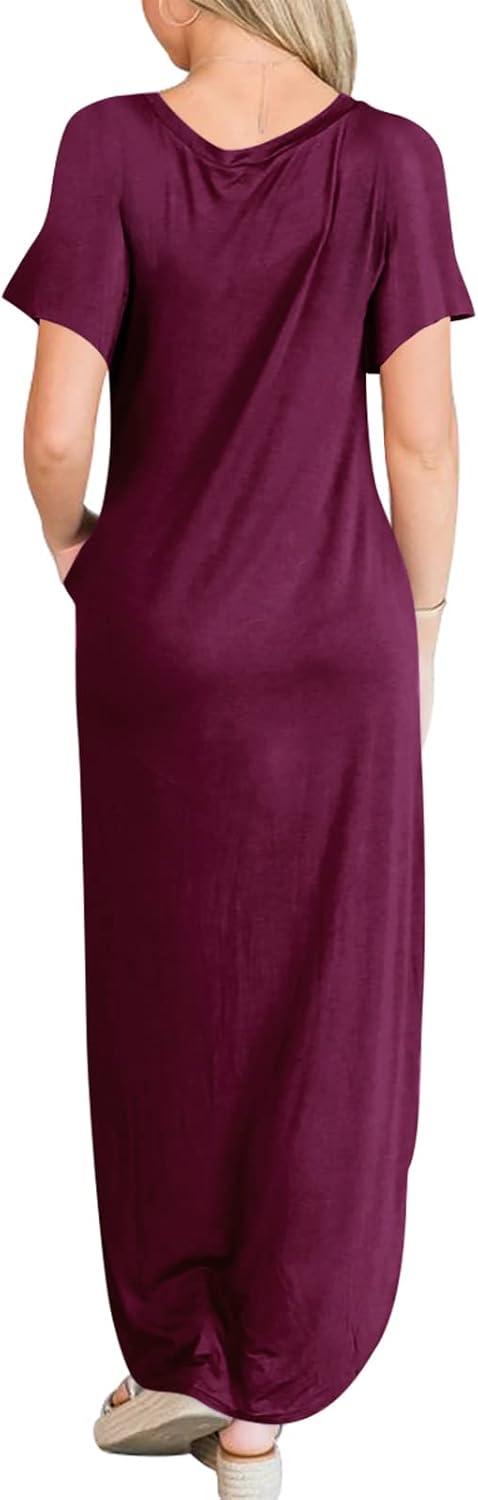 ANRABESS Womens Summer Maxi Dress Short Sleeve Casual Loose Long T Shirt Dresses Split Vacation Beach Sundress Travel Outfits(Purple)