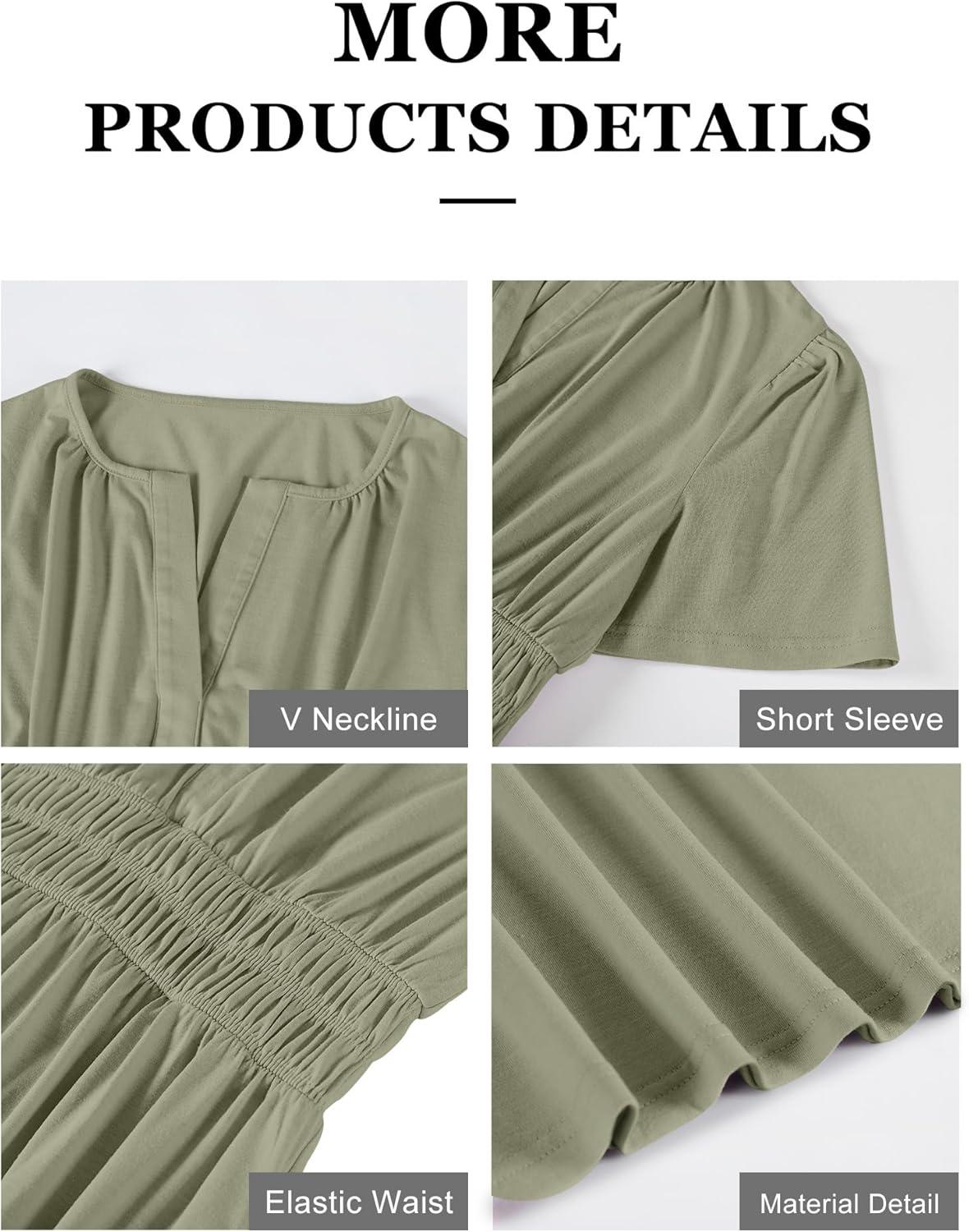 ANRABESS Women’s Summer Short Sleeve Maxi Dress 2025 Casual V Neck High Waist A-Line Flowy Loose Tiered Boho Long Dresses(Olive Green)